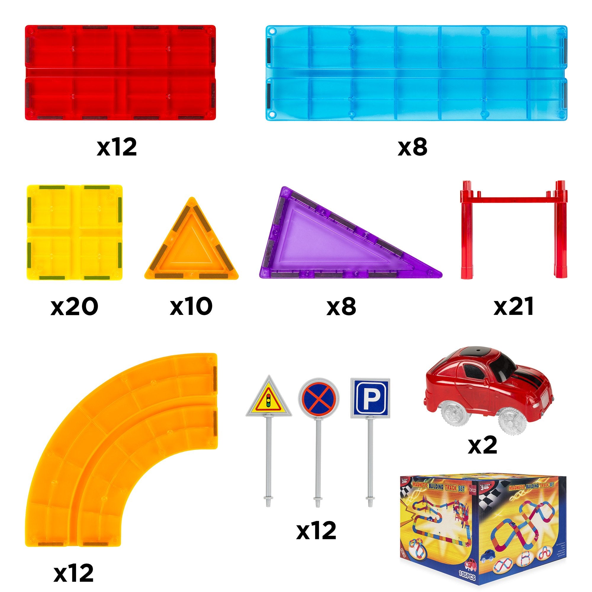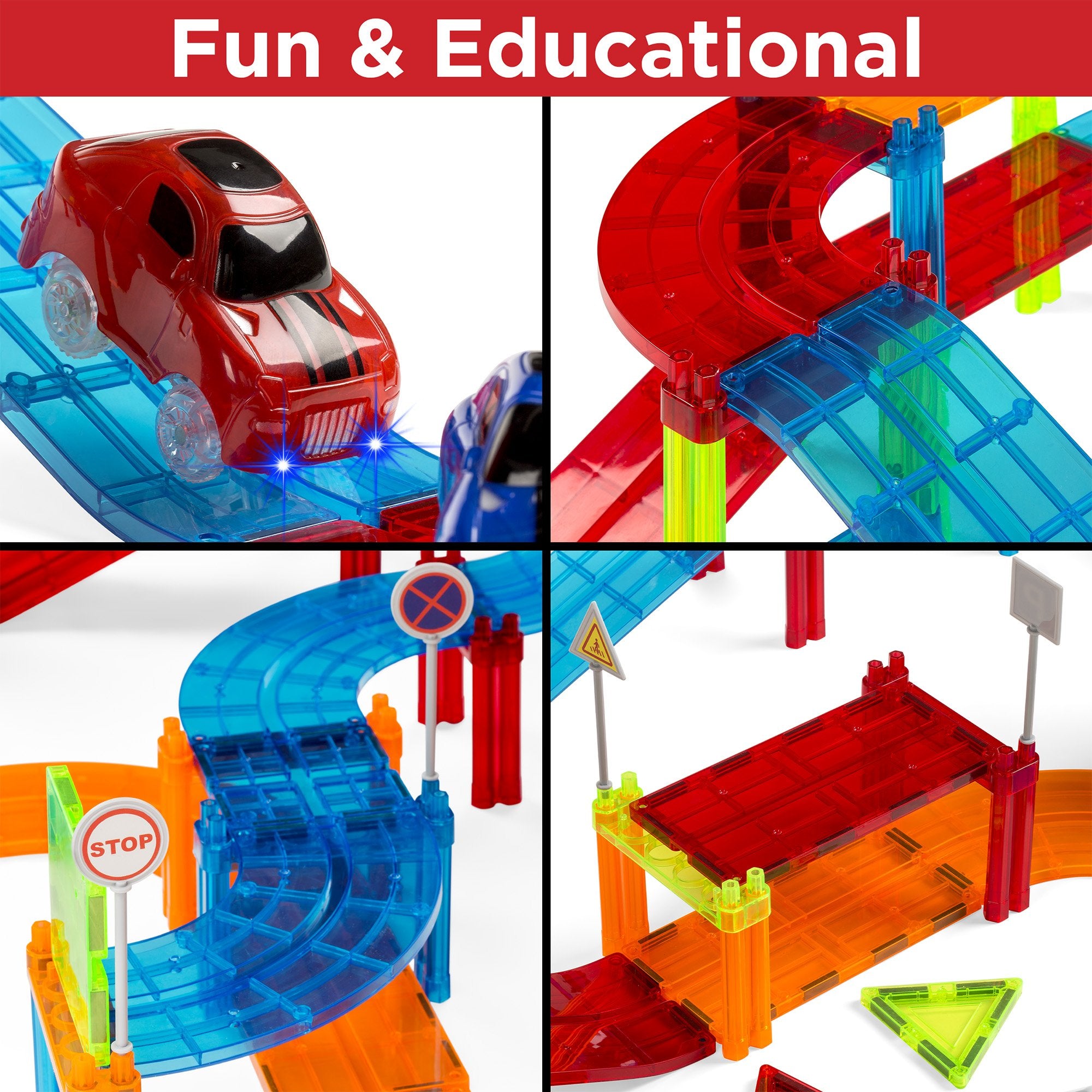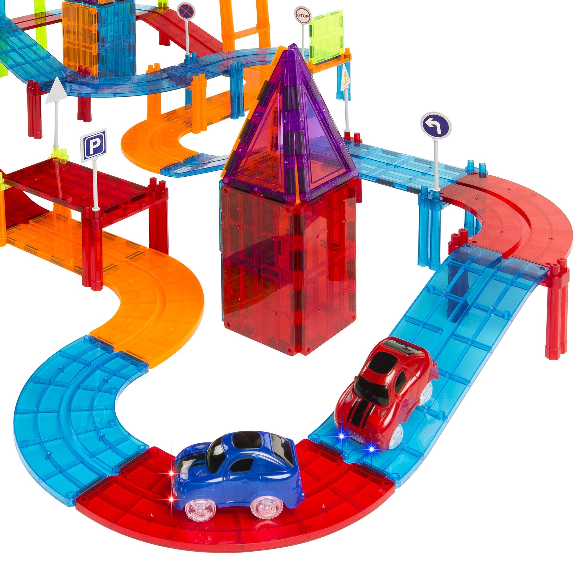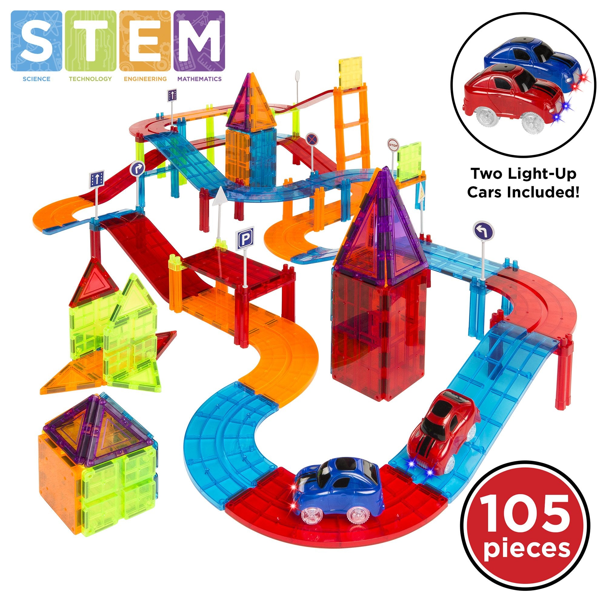 105-Piece Kids Magnetic Tile Car Race Track STEM Building Toy Set w/ 2 Cars