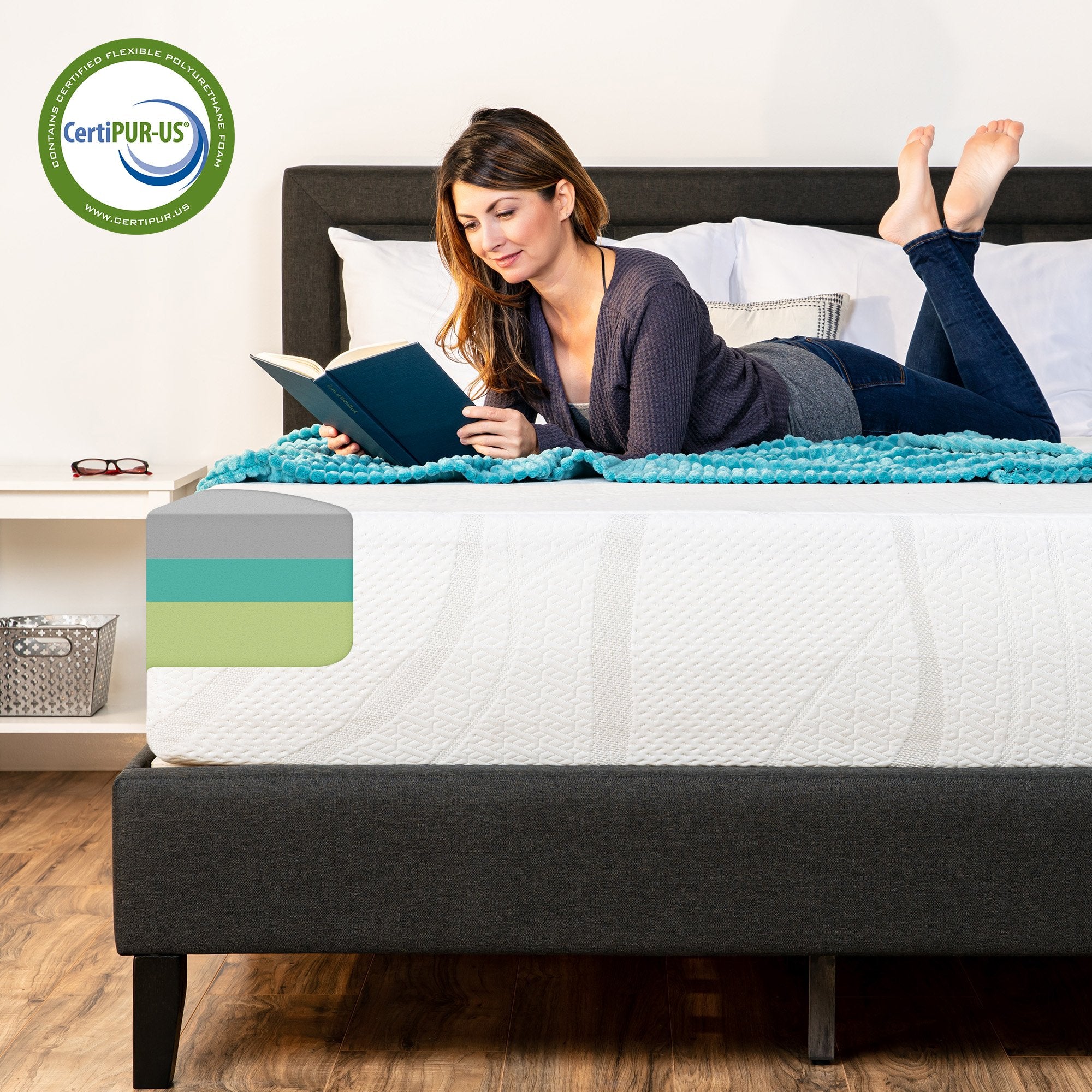 MEDIUM-PLUSH COMFORT: High quality support foam acts as transition between the green tea and charcoal gel layers to create a soft sleeping space that distributes your weight away from your pressure points for a more restful sleep