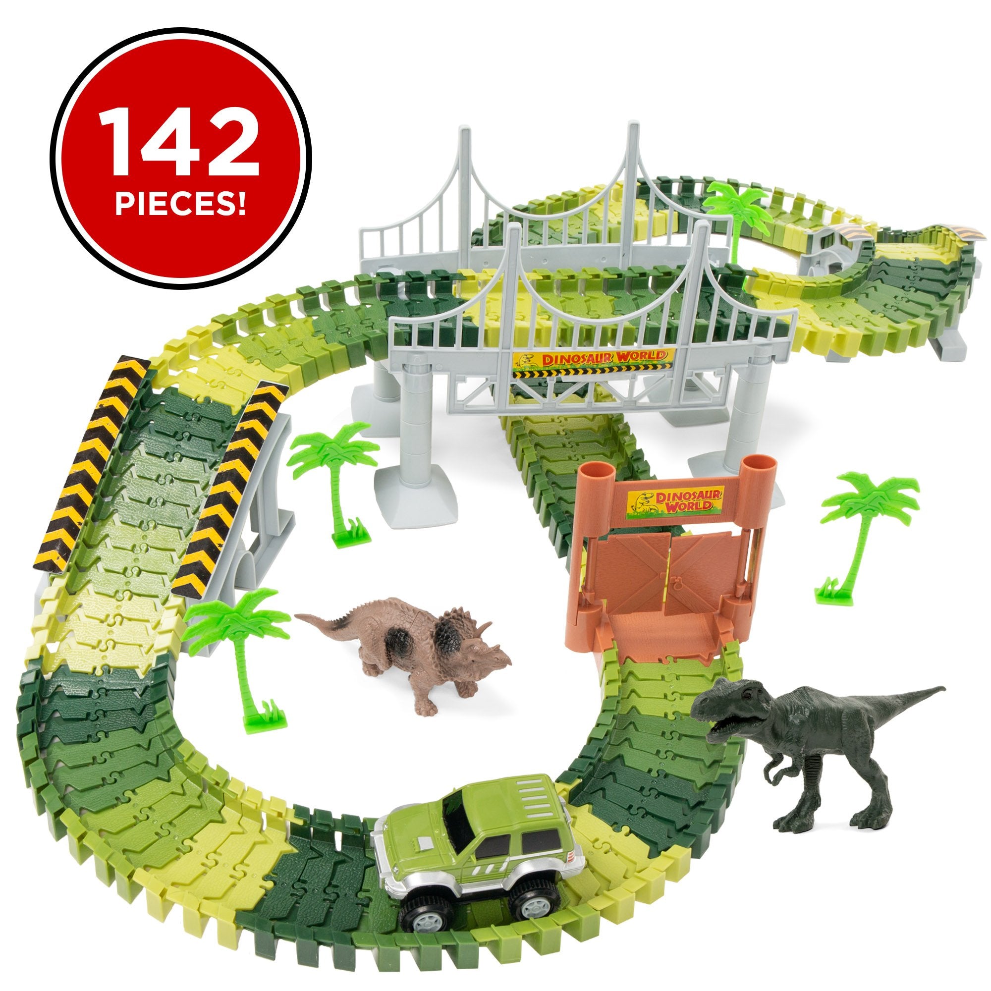142-Piece Big Dinosaur Figure Racetrack Toy Play Set w/ Battery Operated Car