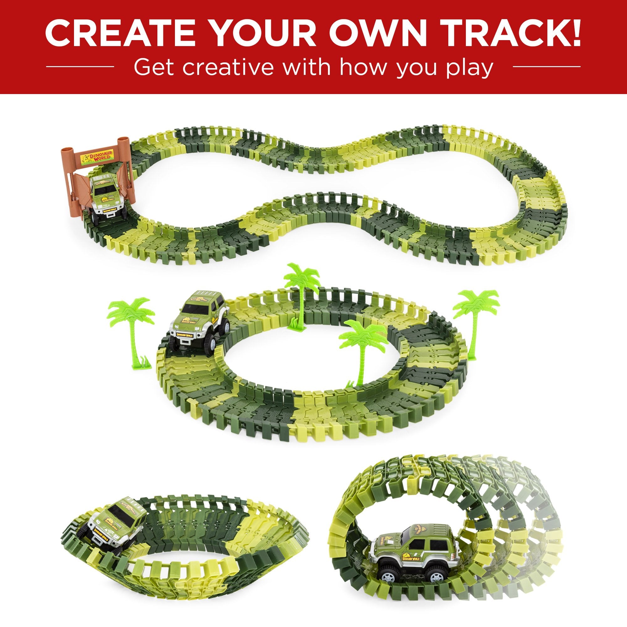 AWESOME, VERSATILE DESIGN: Race track is made with a fun reptile-scale-like design and can be twisted and turned to form a variety of different track shapes