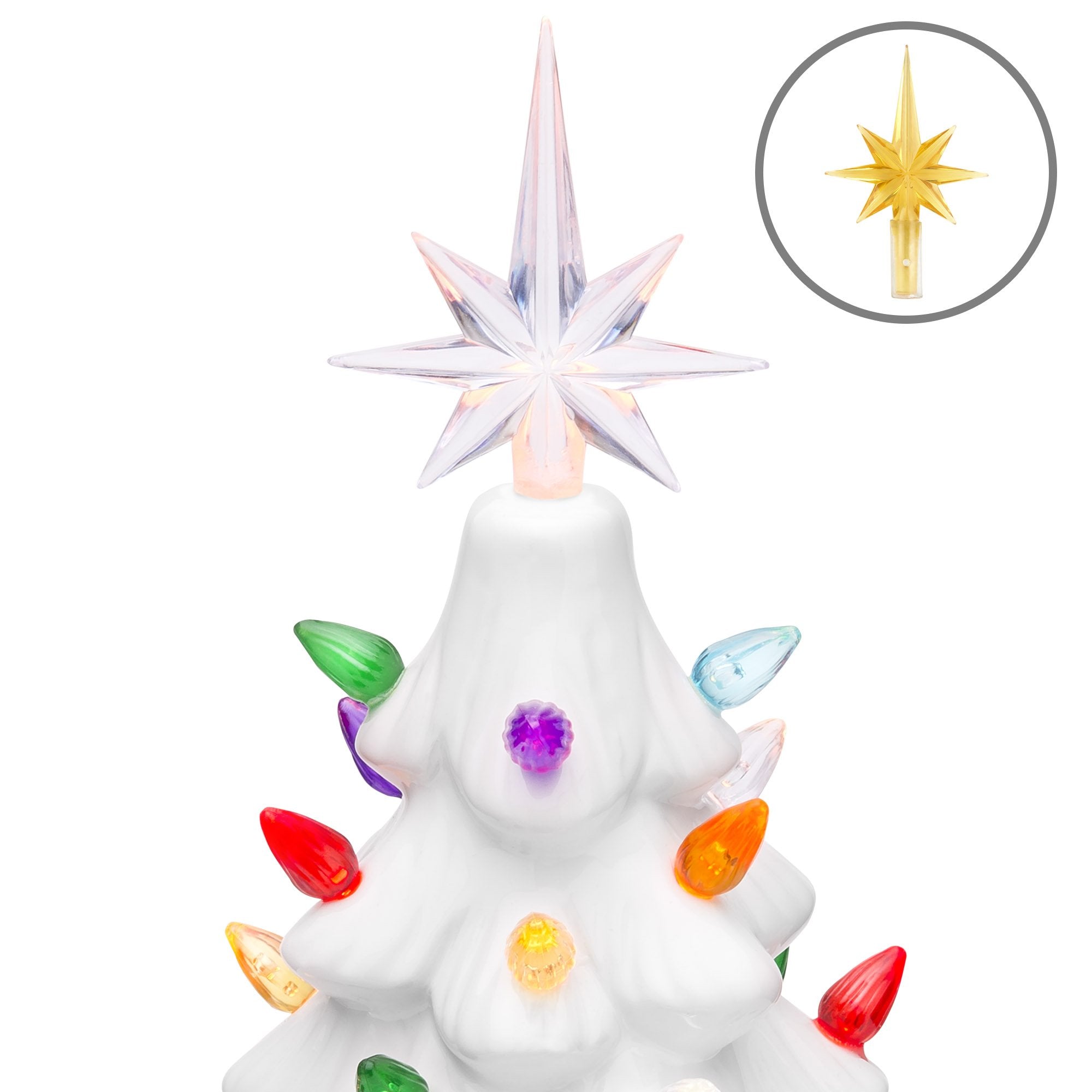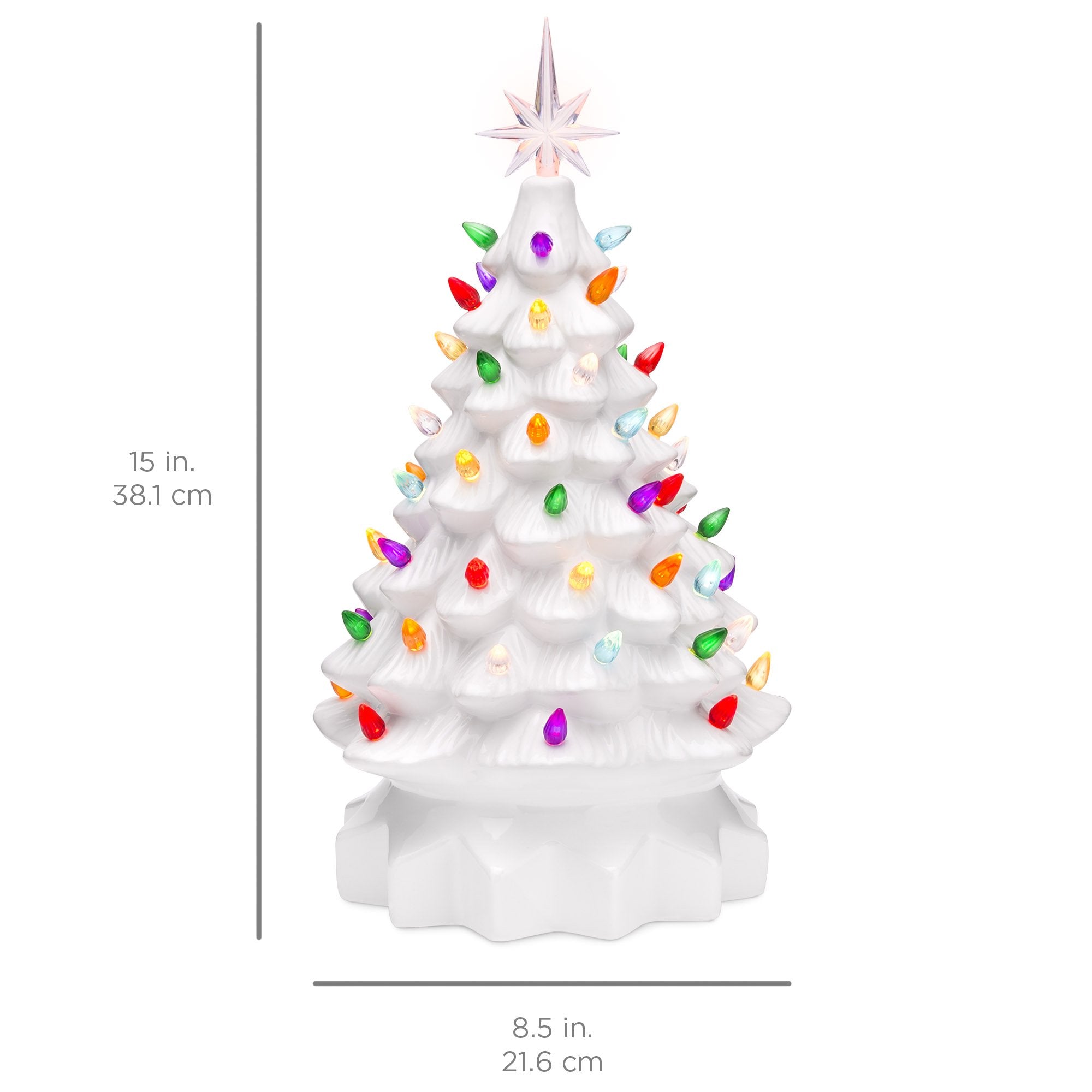 • MULTICOLOR LIGHTS & STAR: Decorated with 64 festive, multicolored bulbs and a 7-pointed star topper to brighten up your holidays