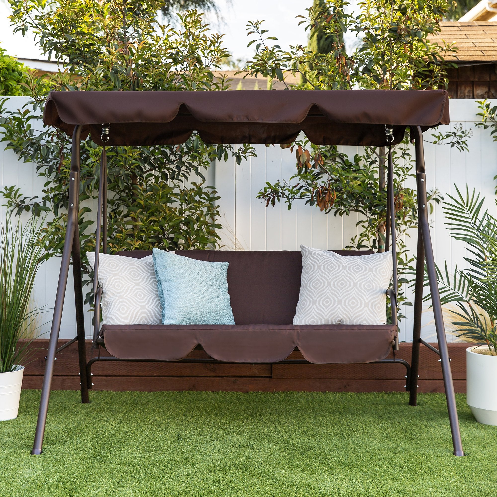 2-Person Outdoor Canopy Swing Glider Furniture w/ Cushions, Steel Frame