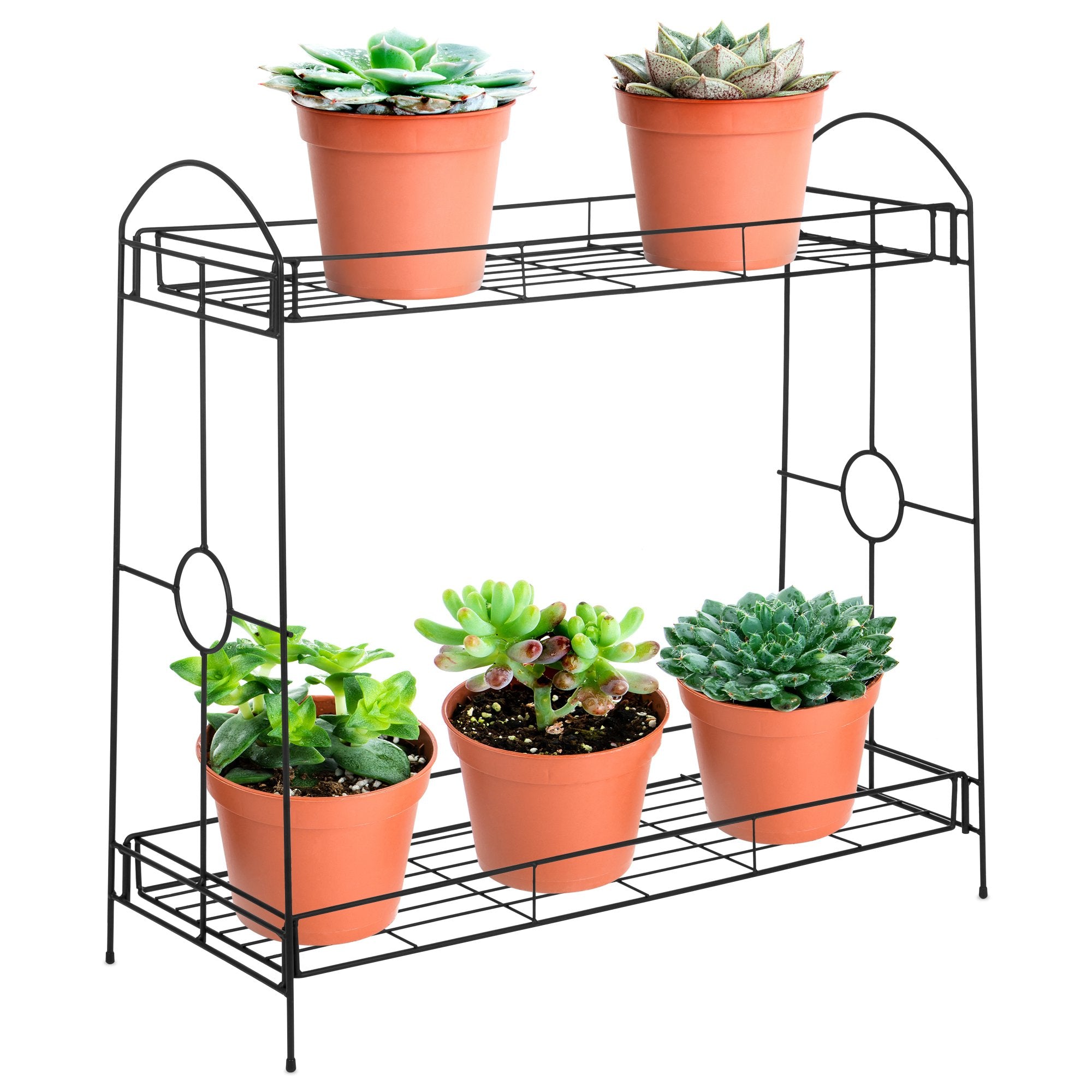 • 2-TIER STAND: Two wide shelves elegantly display and hold your plants, flowers, herbs, succulents, and more