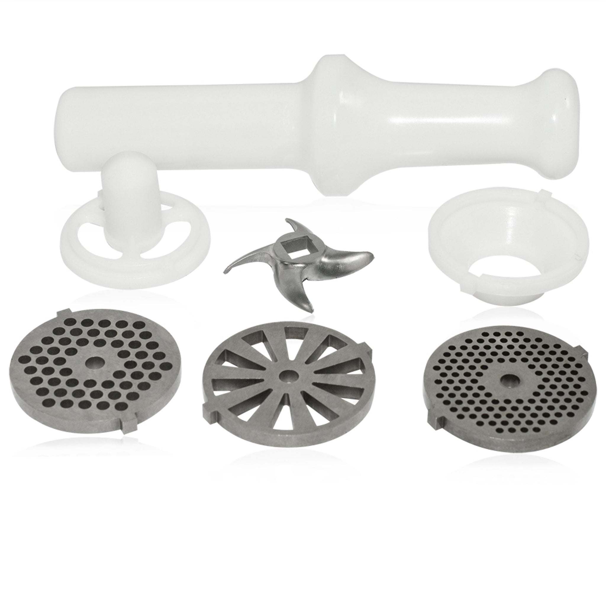 3 GRINDER PLATES: Comes with separate plates for coarse, medium, and fine grinds of meat, perfect for creating patties, meat loaves, sausages, and more