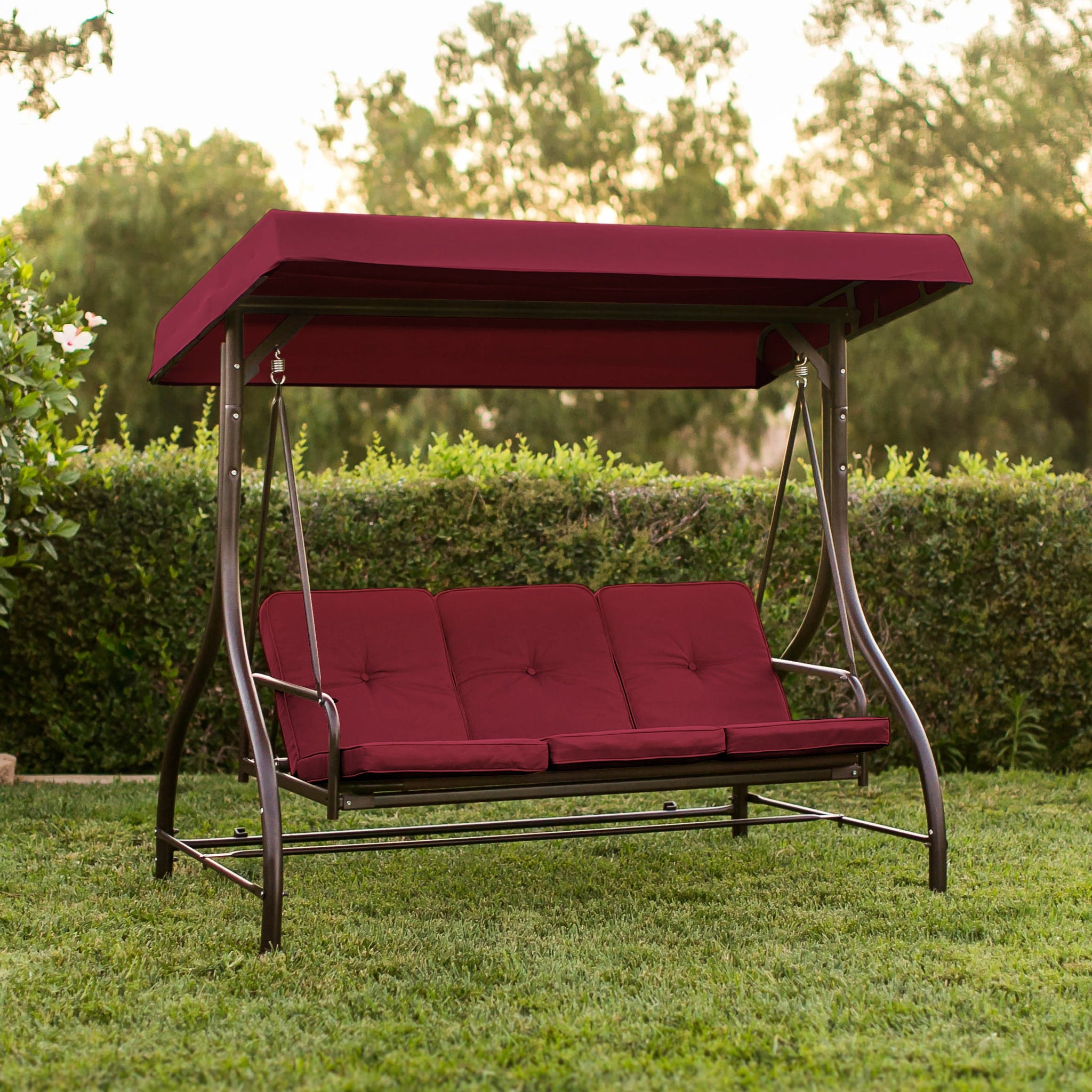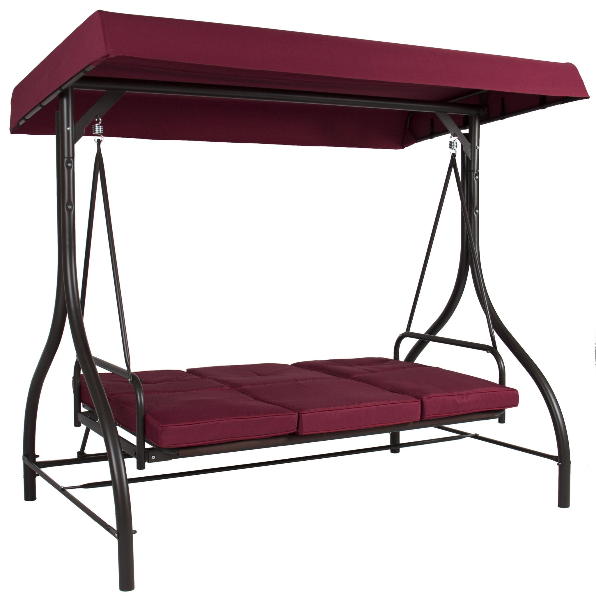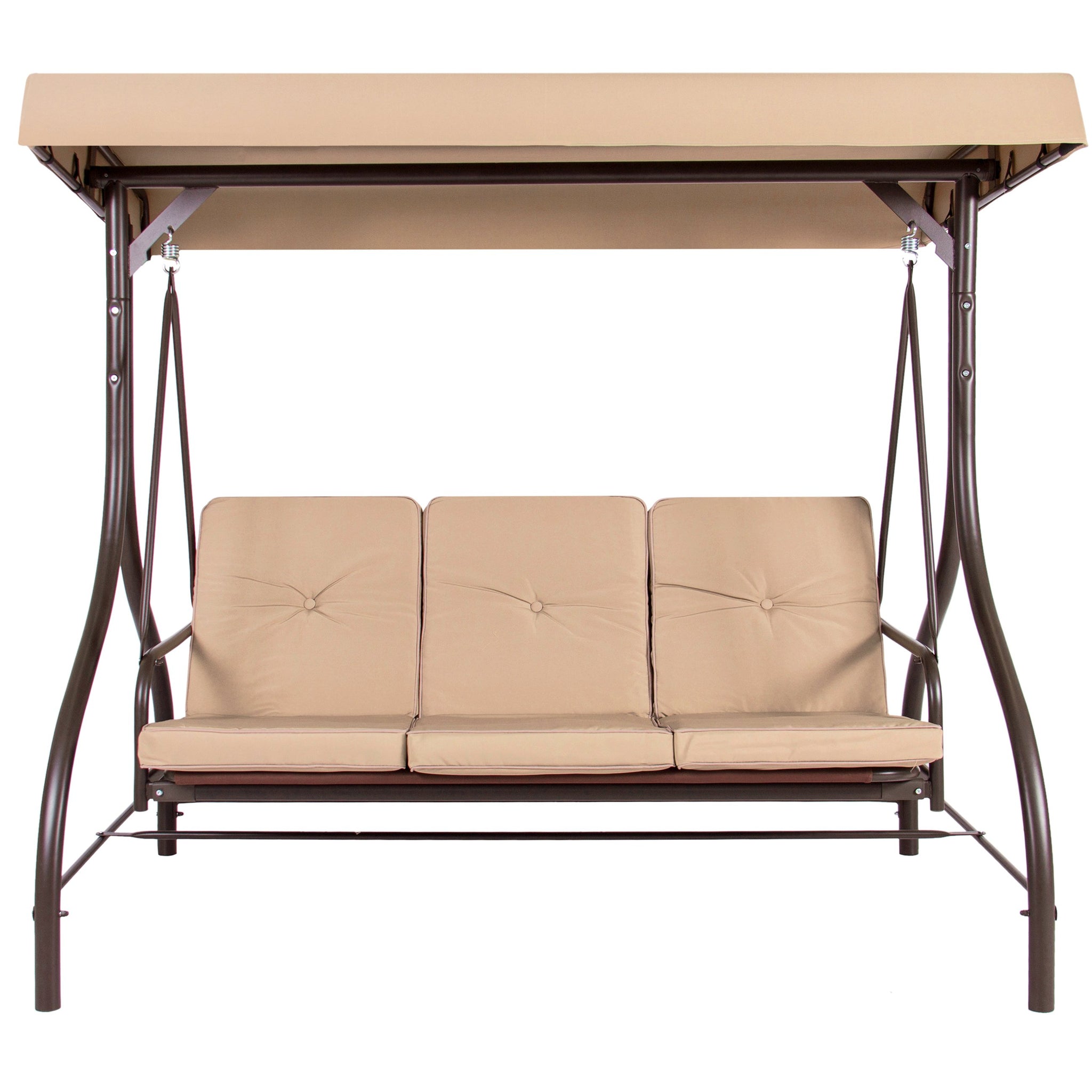3-Seat Outdoor Canopy Swing Glider Furniture w/ Convertible Flatbed Backrest