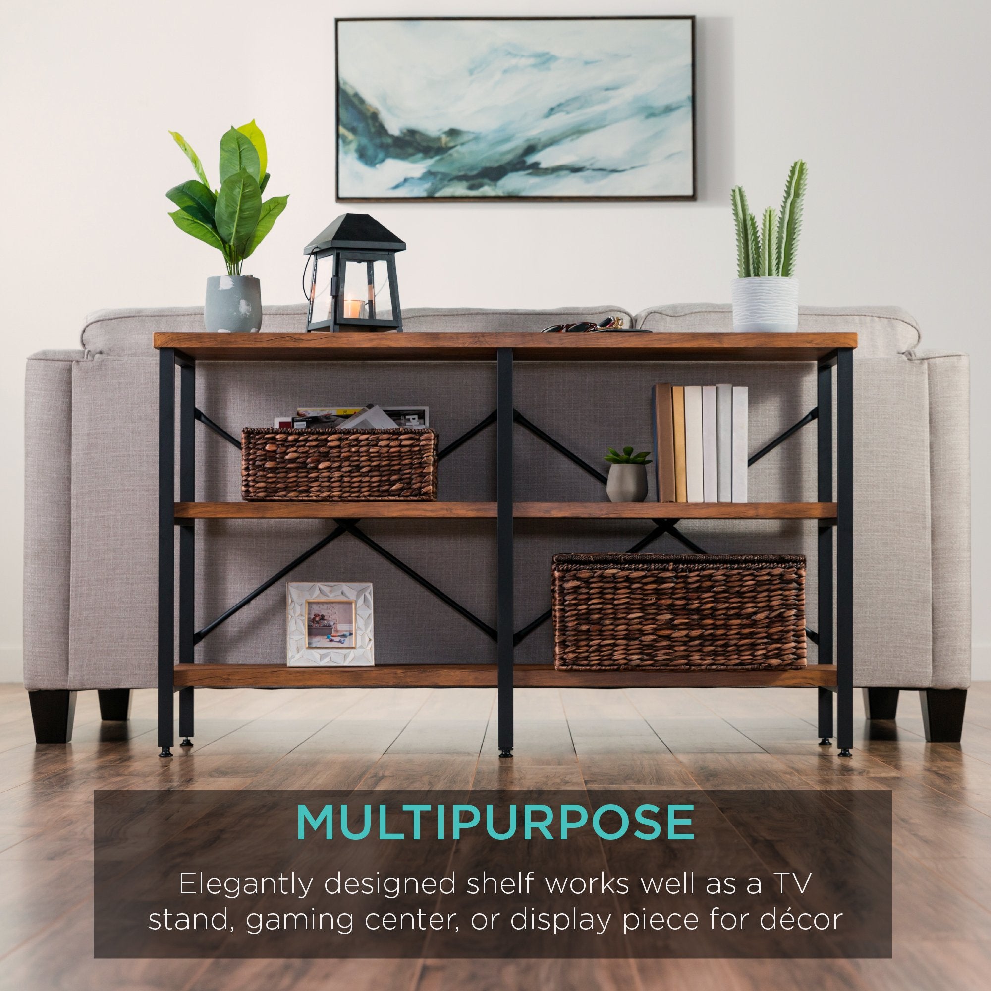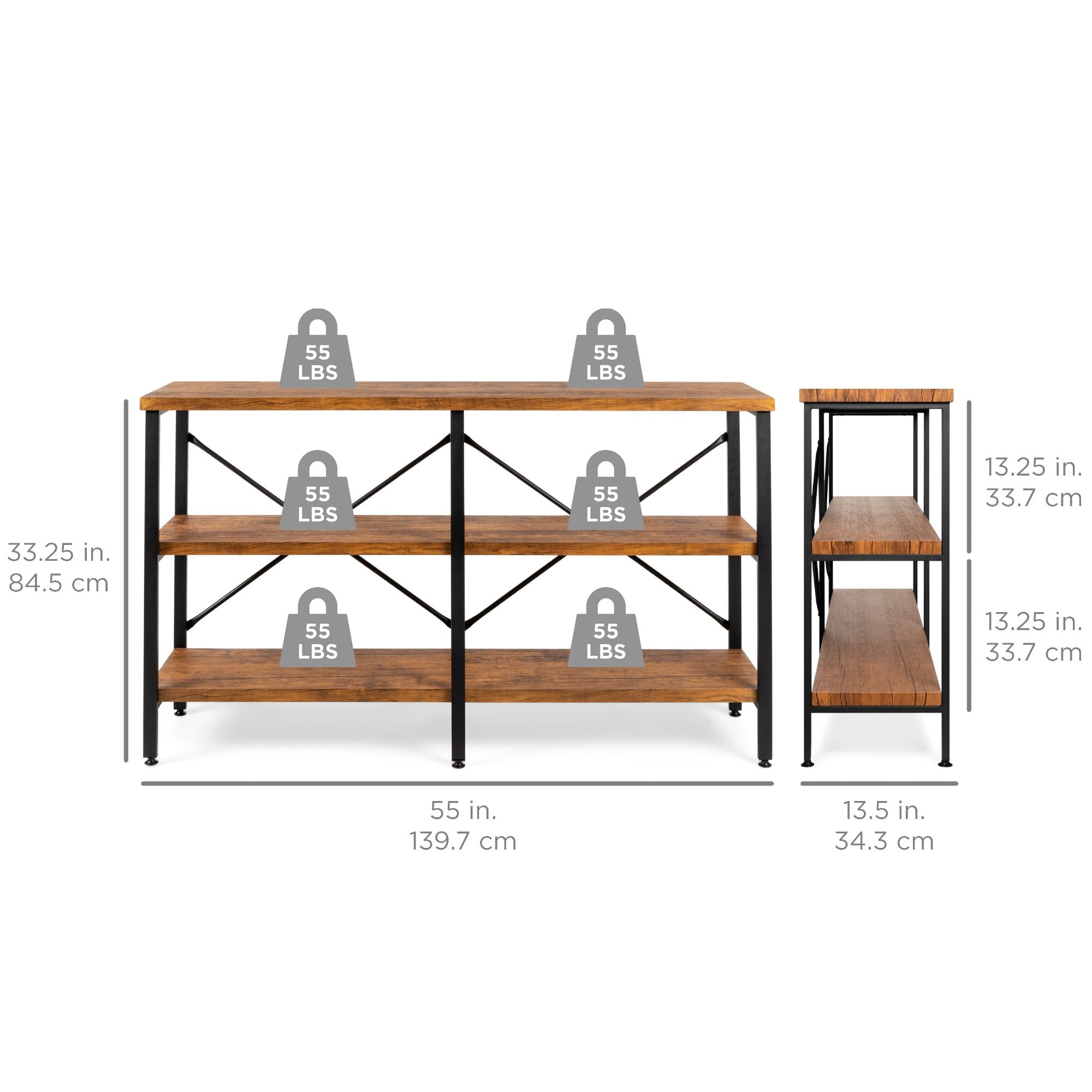 3-Tier Industrial Hallway Console Table for Living Room, Entry Way - 55"