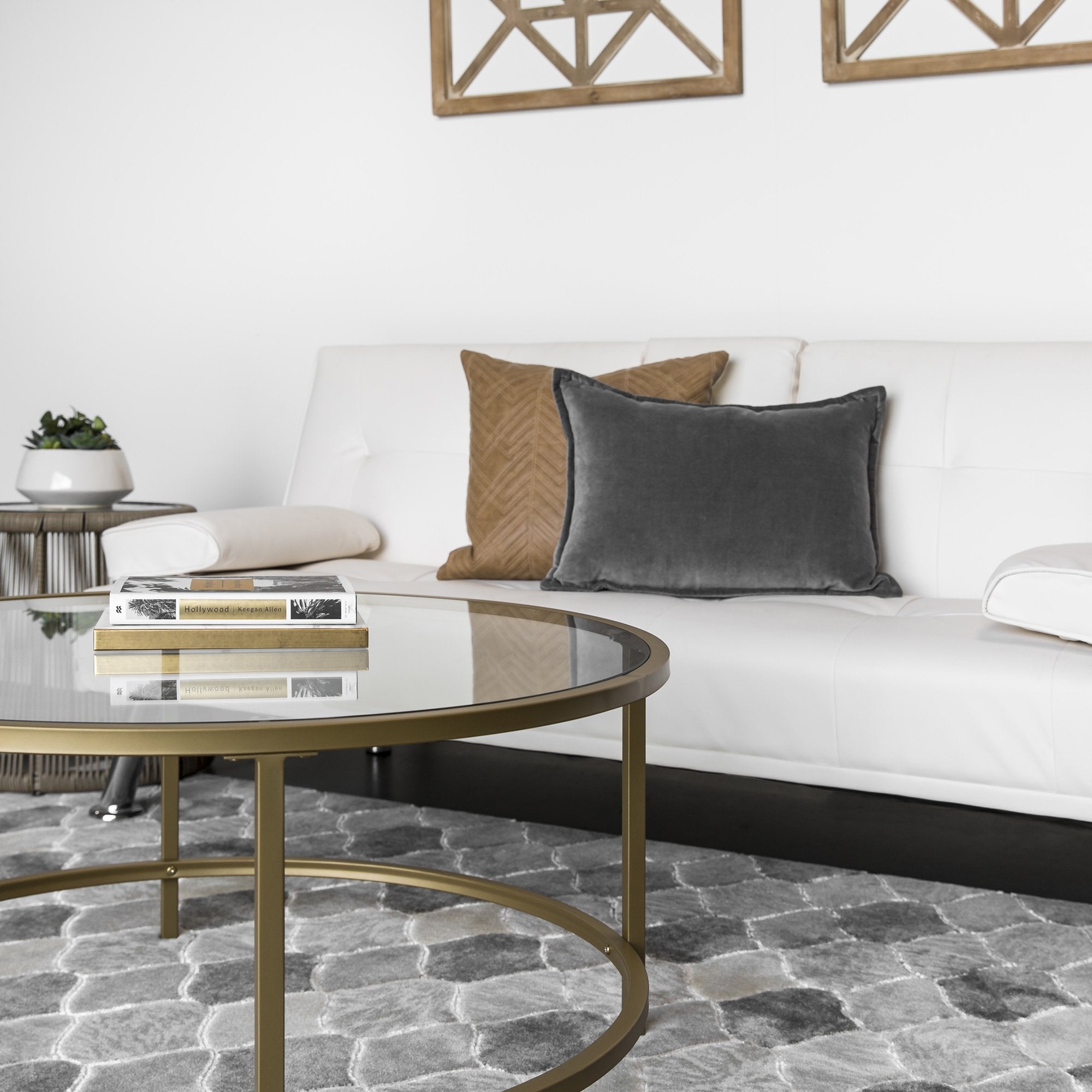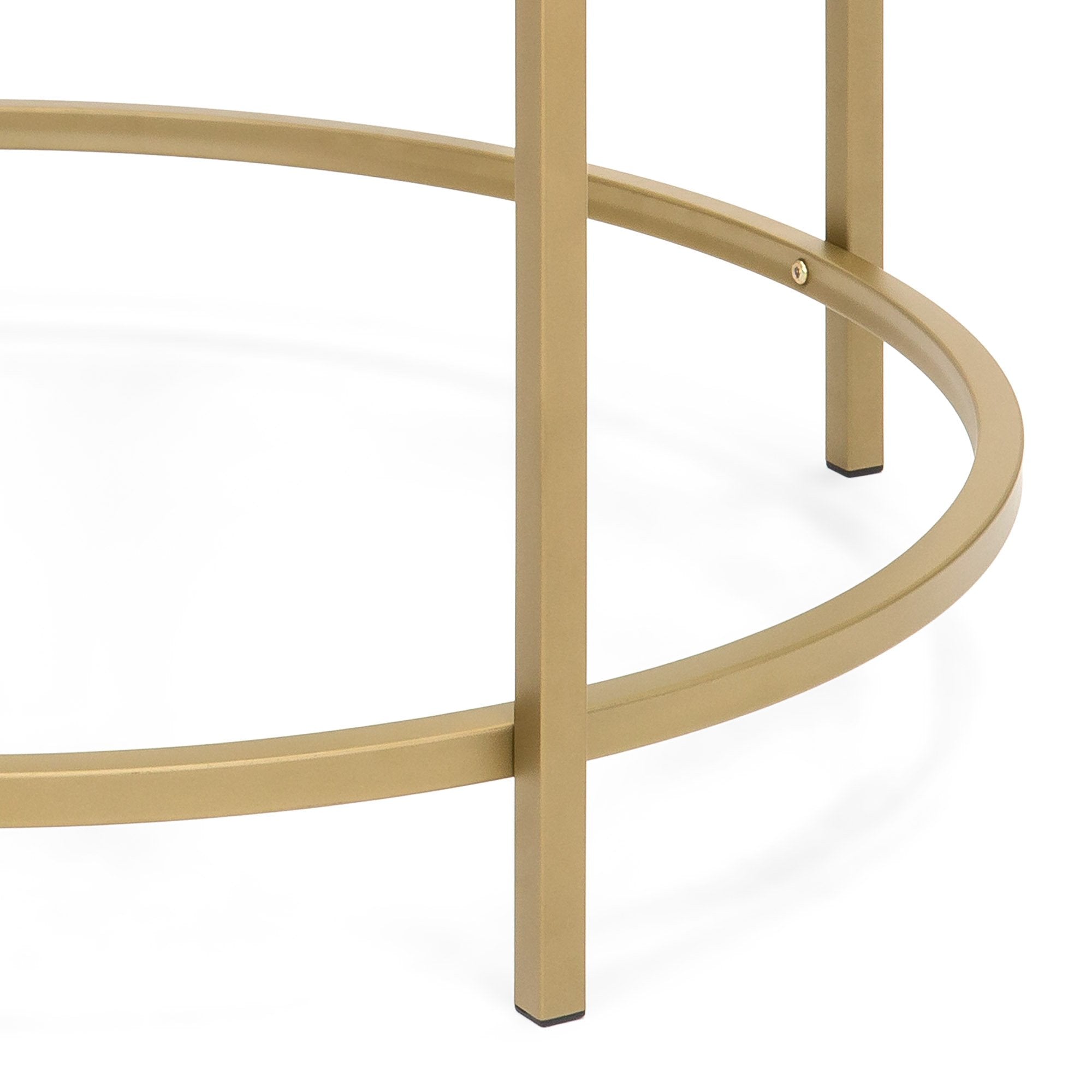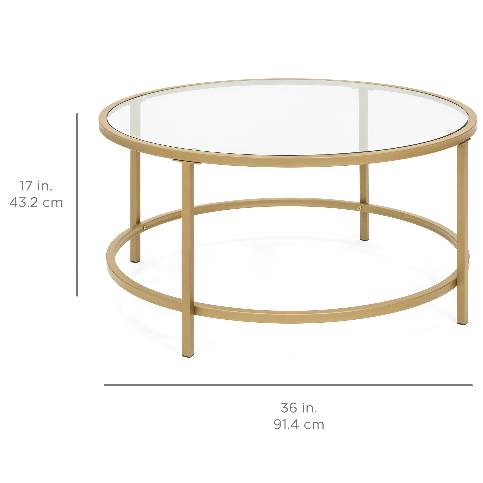 MODERN DESIGN: This glass coffee table is designed with an elegant gold trim and an open, round shape to add a modern feel to any space