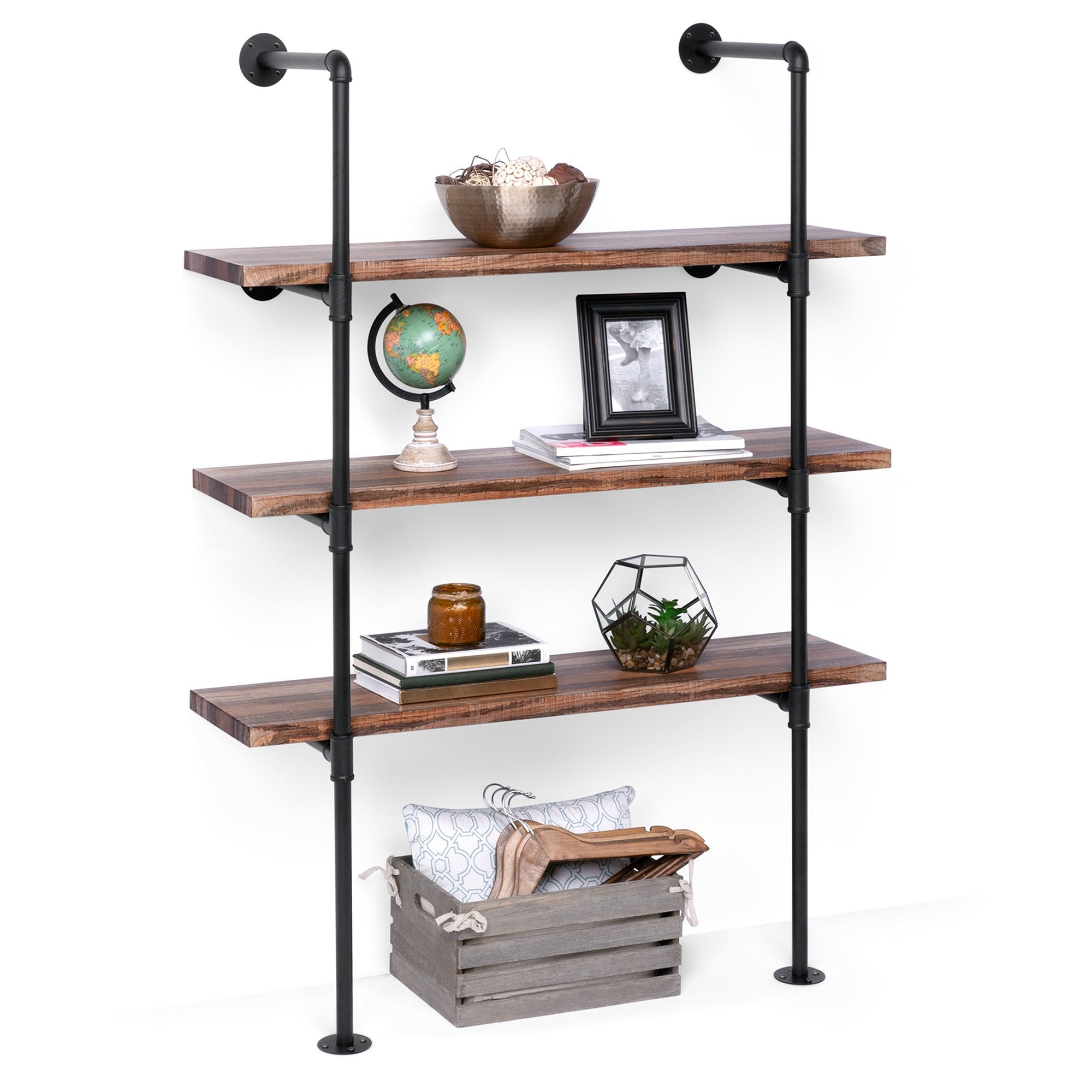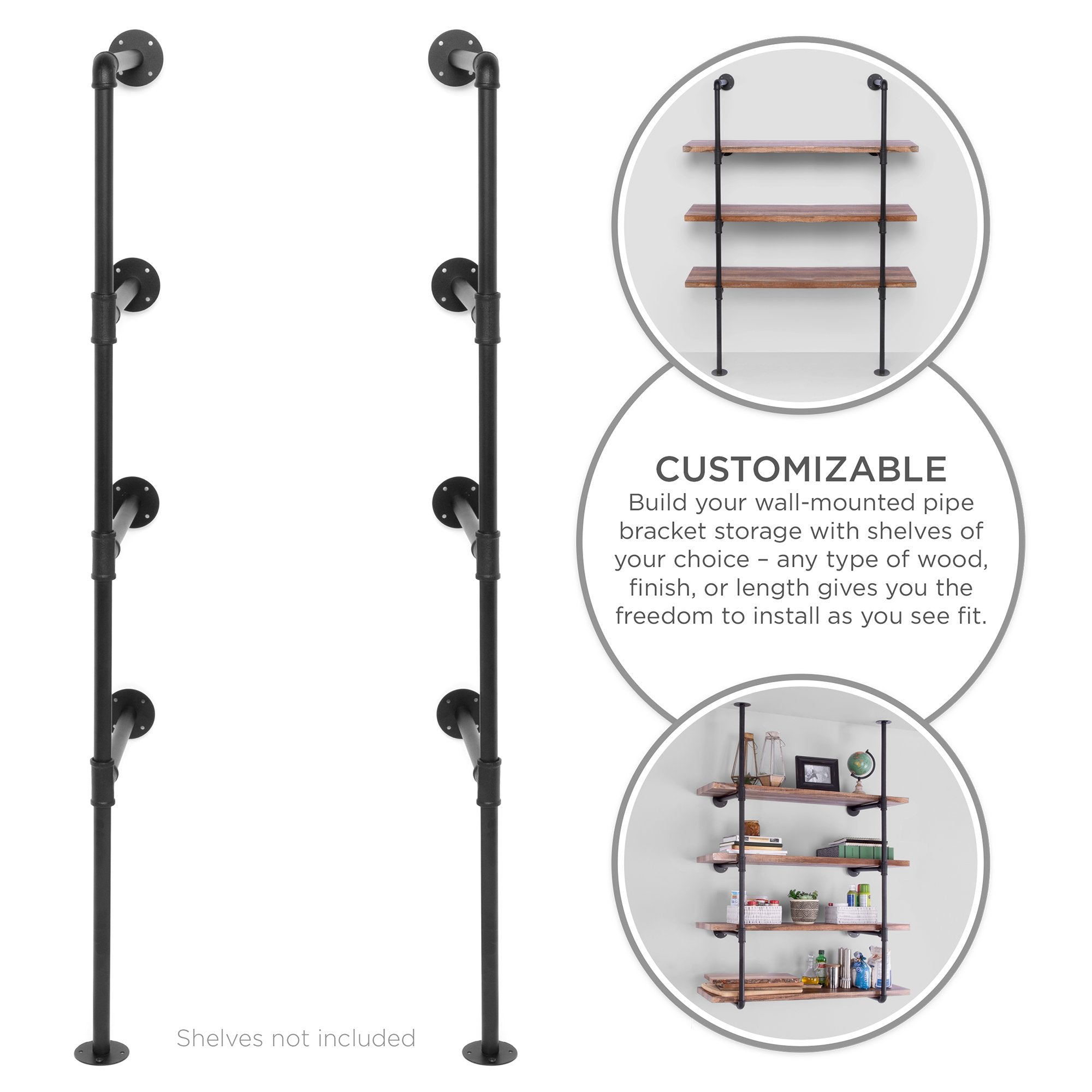 • VERSATILE WALL-MOUNTED SHELF: Mount it from the ceiling or the ground and bring a modern, industrial appeal to any setting such as a living room, bedroom, kitchen, bar, or cafe