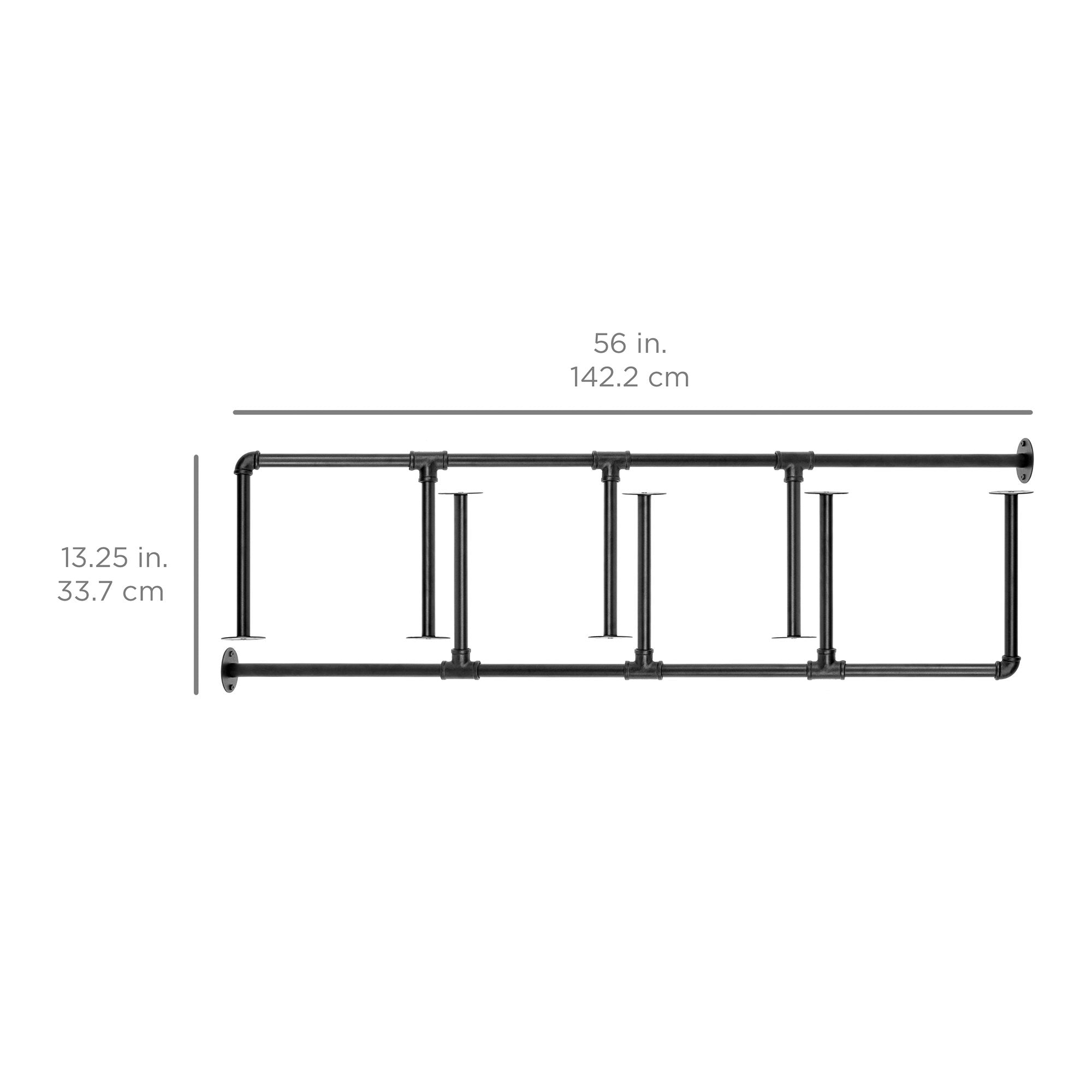 • HARDWARE INCLUDED: Comes with hardware, wall anchors, and anchor plates for installation; OVERALL DIMENSIONS: 13.25"(L) x 3.25"(W) x 56"(H); Weight Capacity: 33 lbs. per shelf