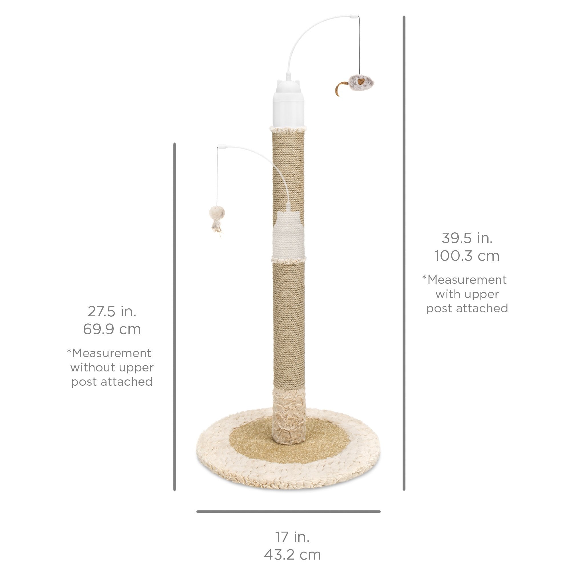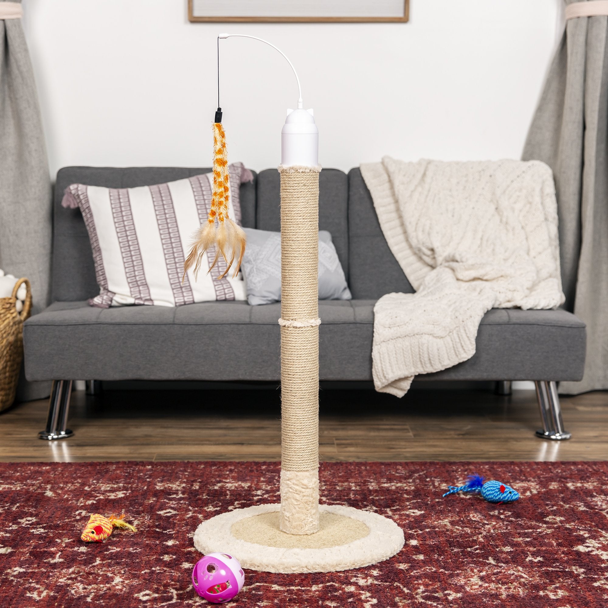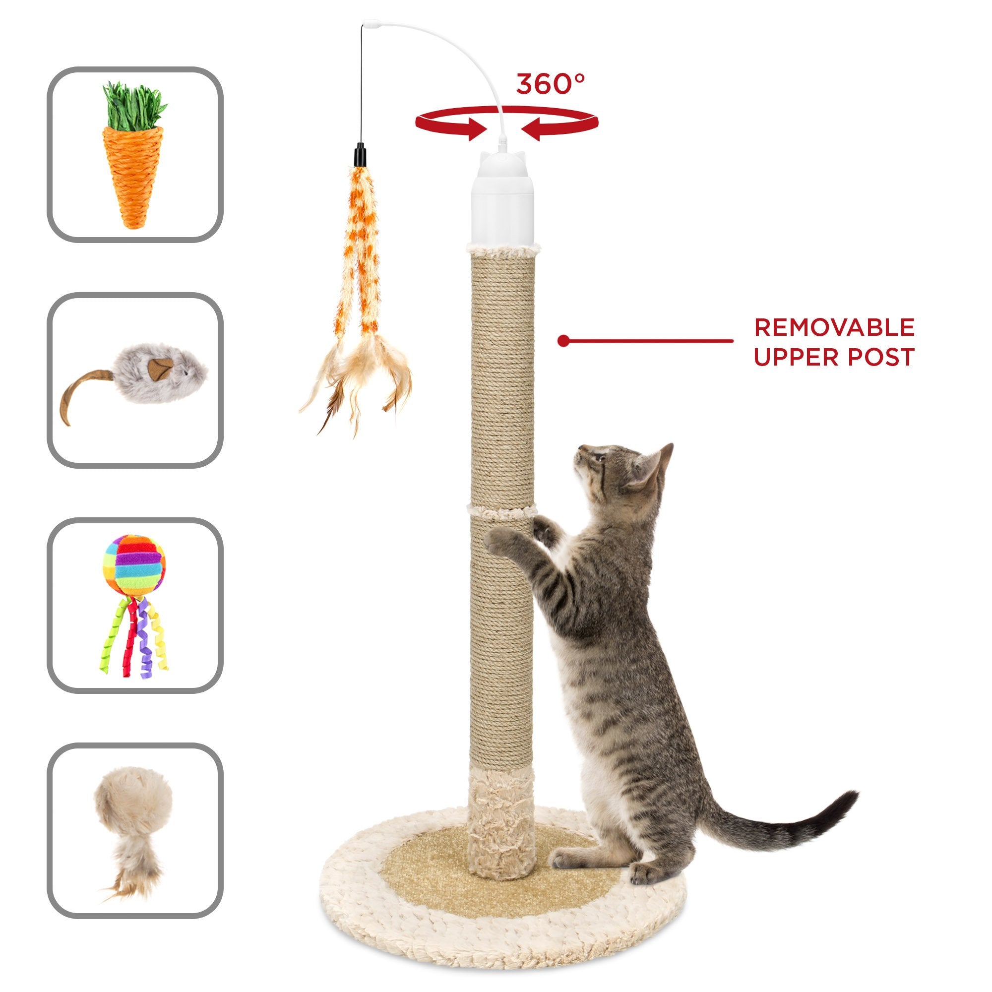 2-IN-1 INTERACTIVE POST: Designed for your little bundle of fur to enjoy scratching the post or playing with interactive, 360-degree rotating toys; auto shutoff function turns the rotator off after approximately 10 minutes