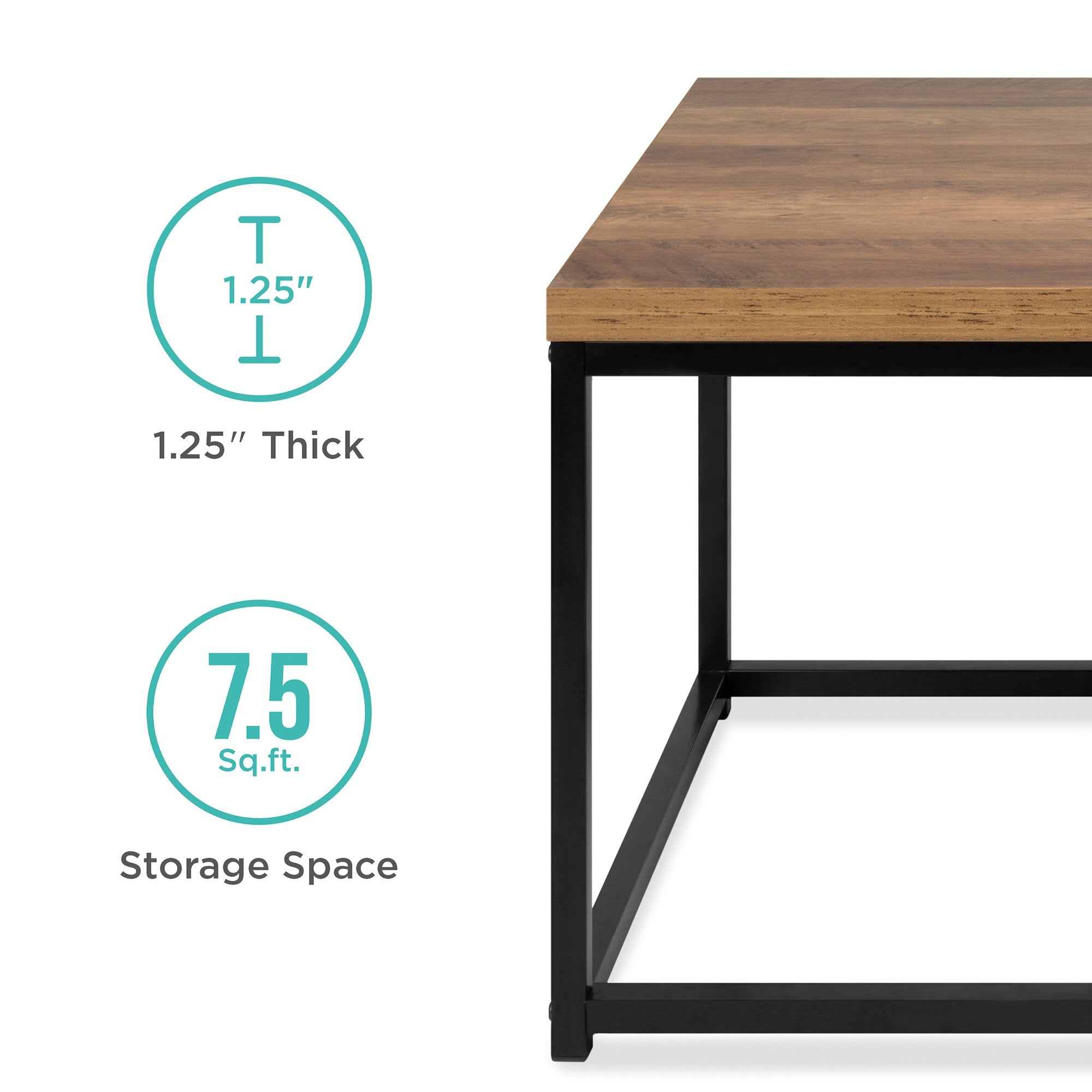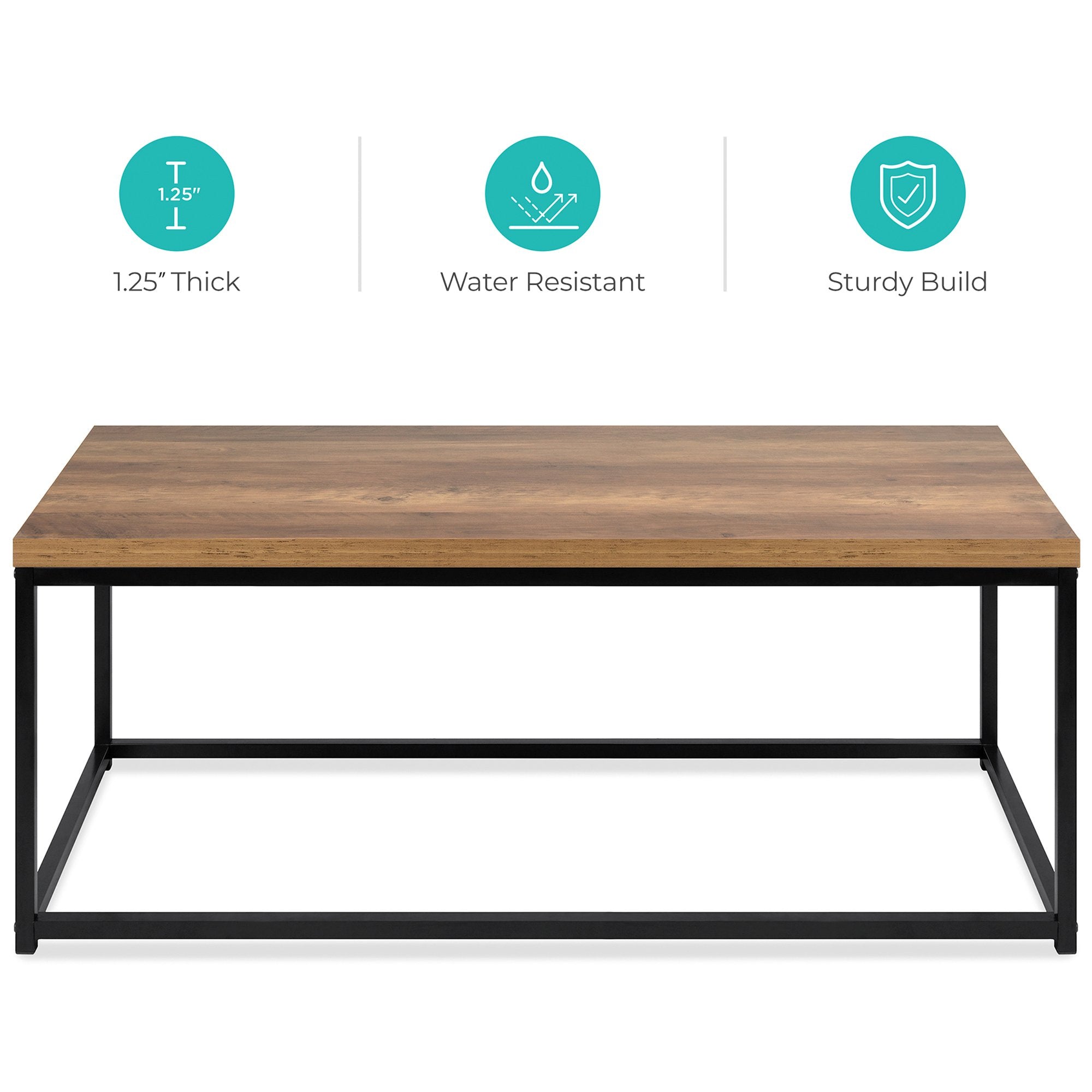 44in Modern Industrial Rectangular Wood Grain Coffee Table w/ Metal Frame