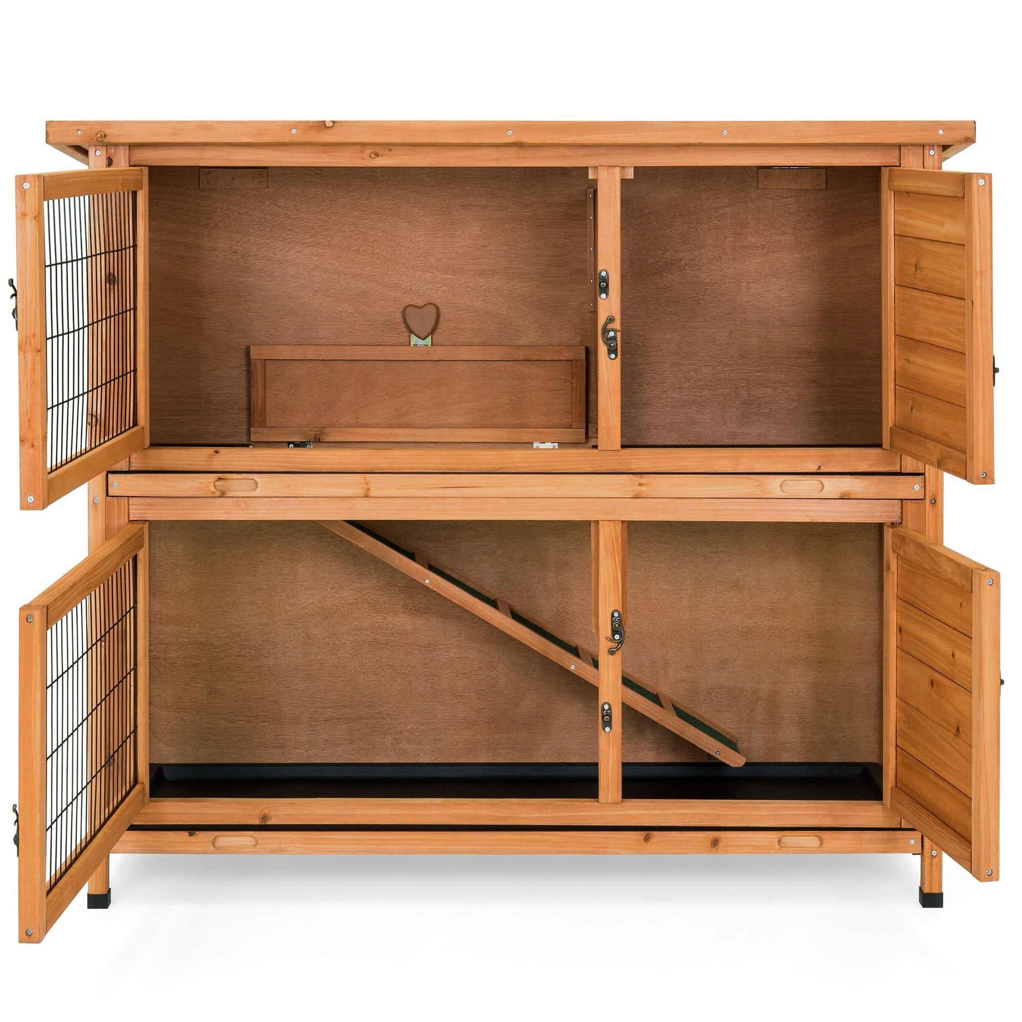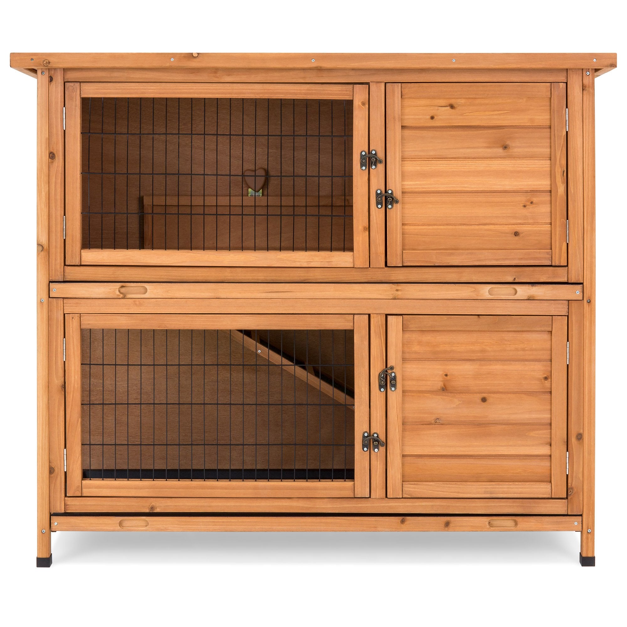 ANIMAL- AND USER-FRIENDLY: Bunny hutch is made with a simple design, including 2 cages stacked together with an easy-access door and access through the caged door on each level