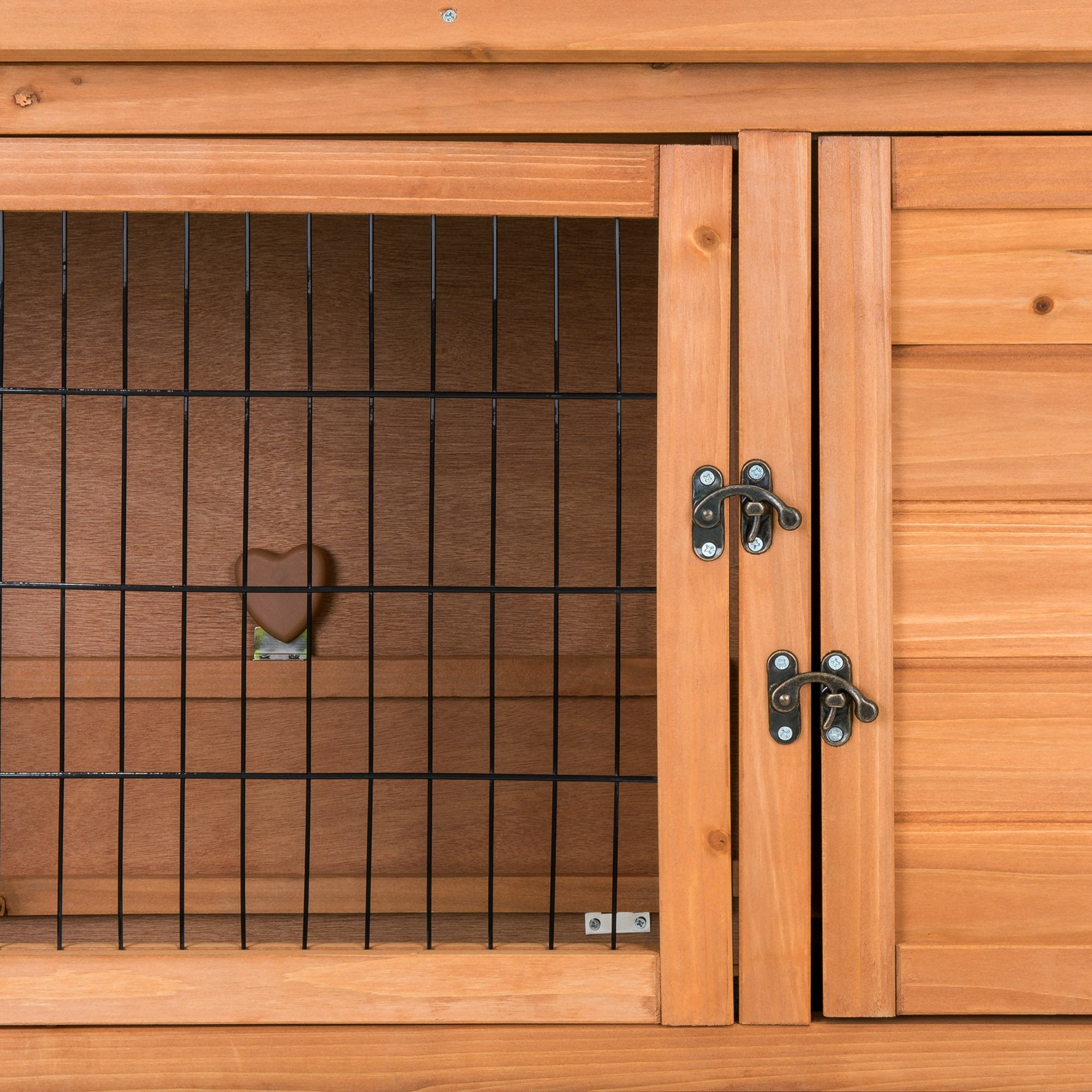VERSATILE ANIMAL SHELTER: Fir wood rabbit hutch also serves as a quality home for other small animals, built with a spacious living area that has heavy-duty wire to keep predators out