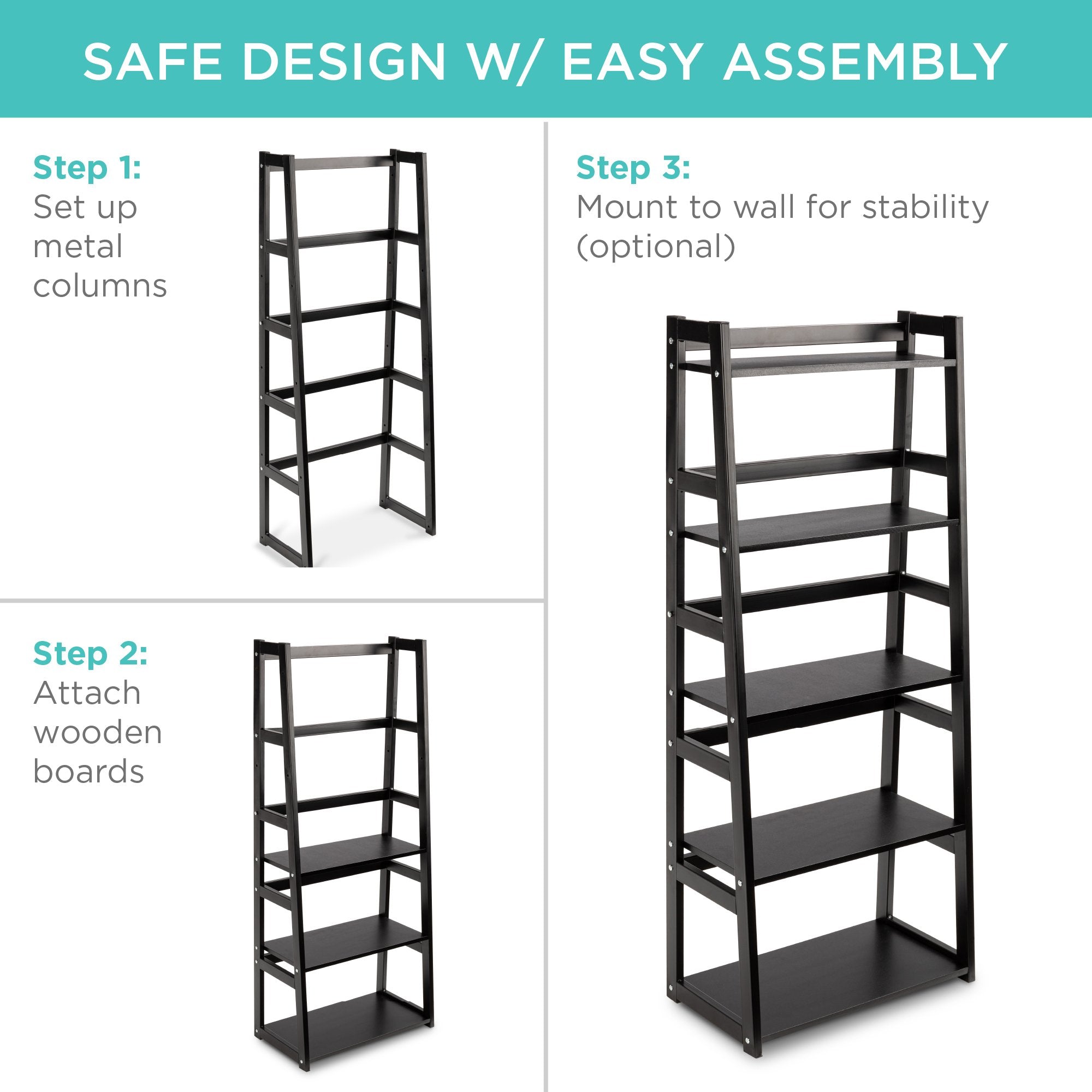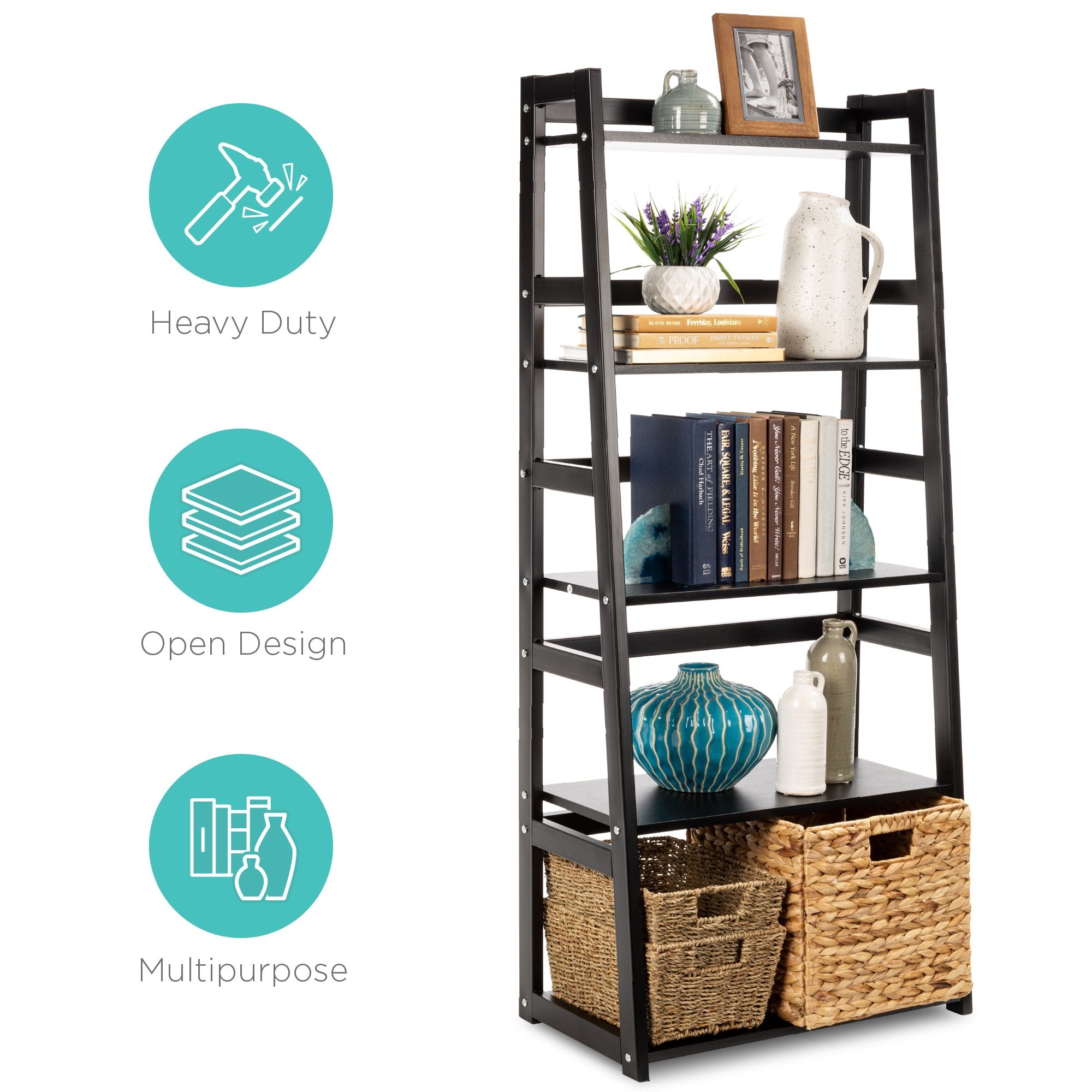 5-Tier Multipurpose Modern Ladder Slant Bookcase Storage Shelf