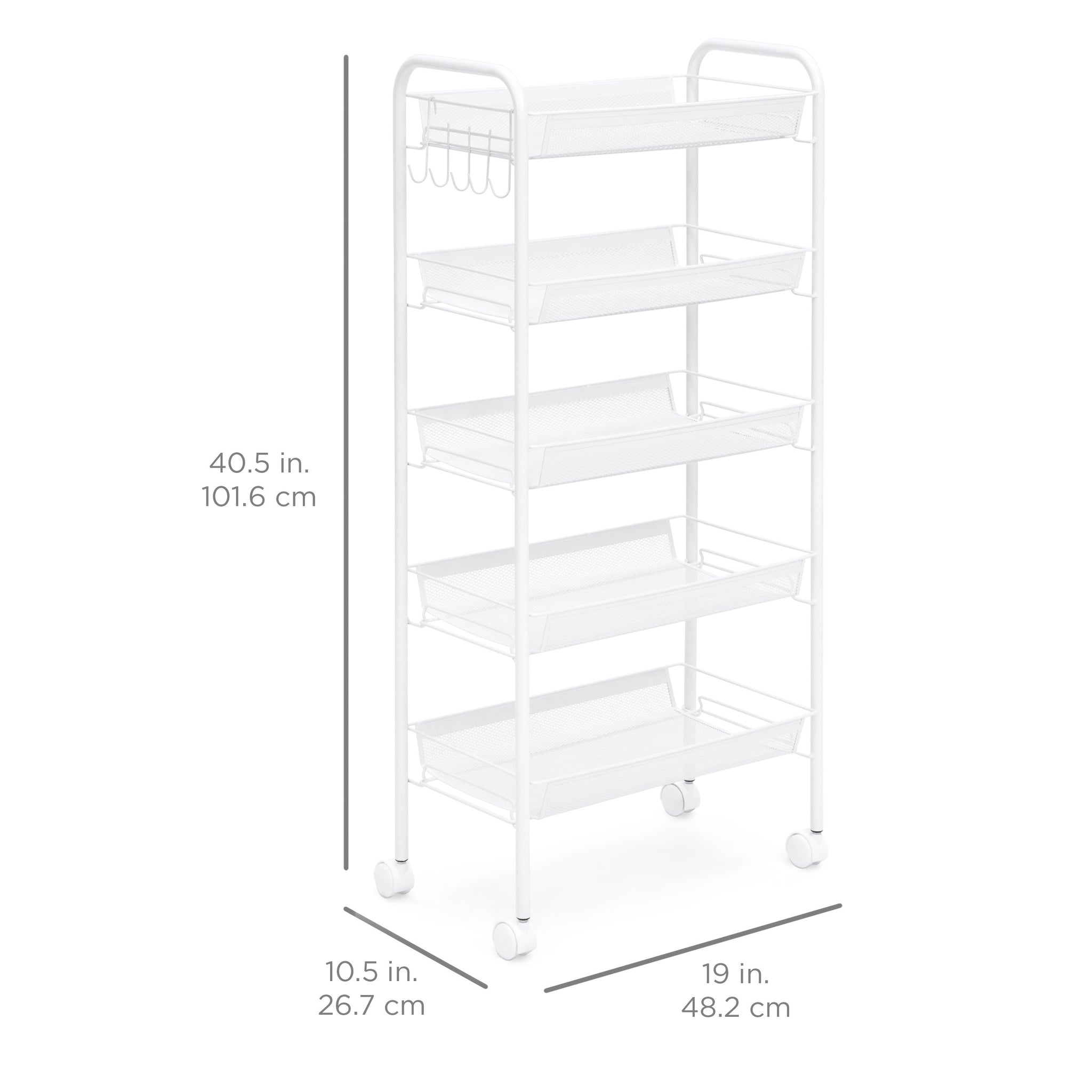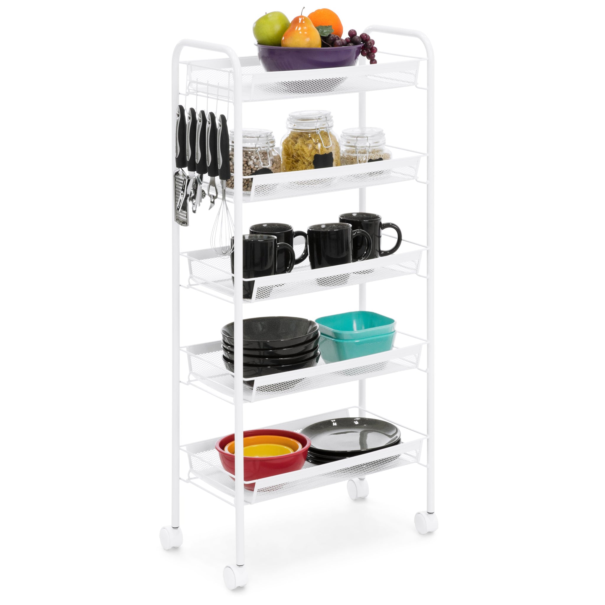 5-Tier Metal Rolling Kitchen Utility Storage Cart w/ Locking Casters