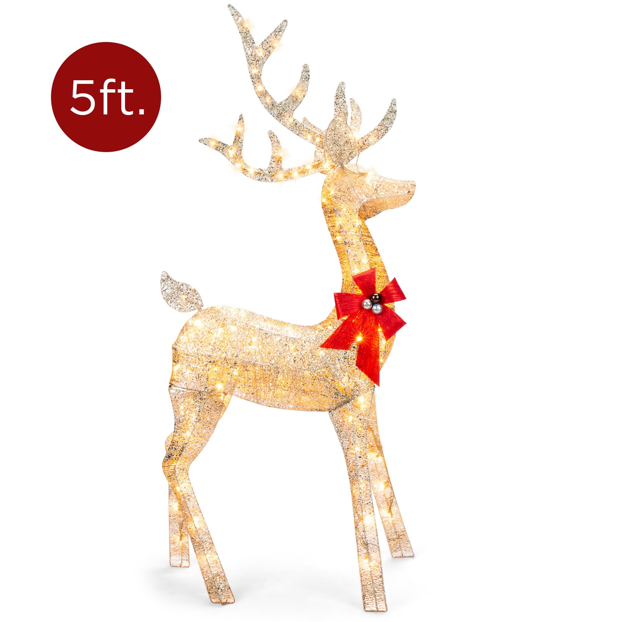 5ft 3D Pre-Lit Gold Glitter Christmas Reindeer Yard Decoration w/ 150 Lights