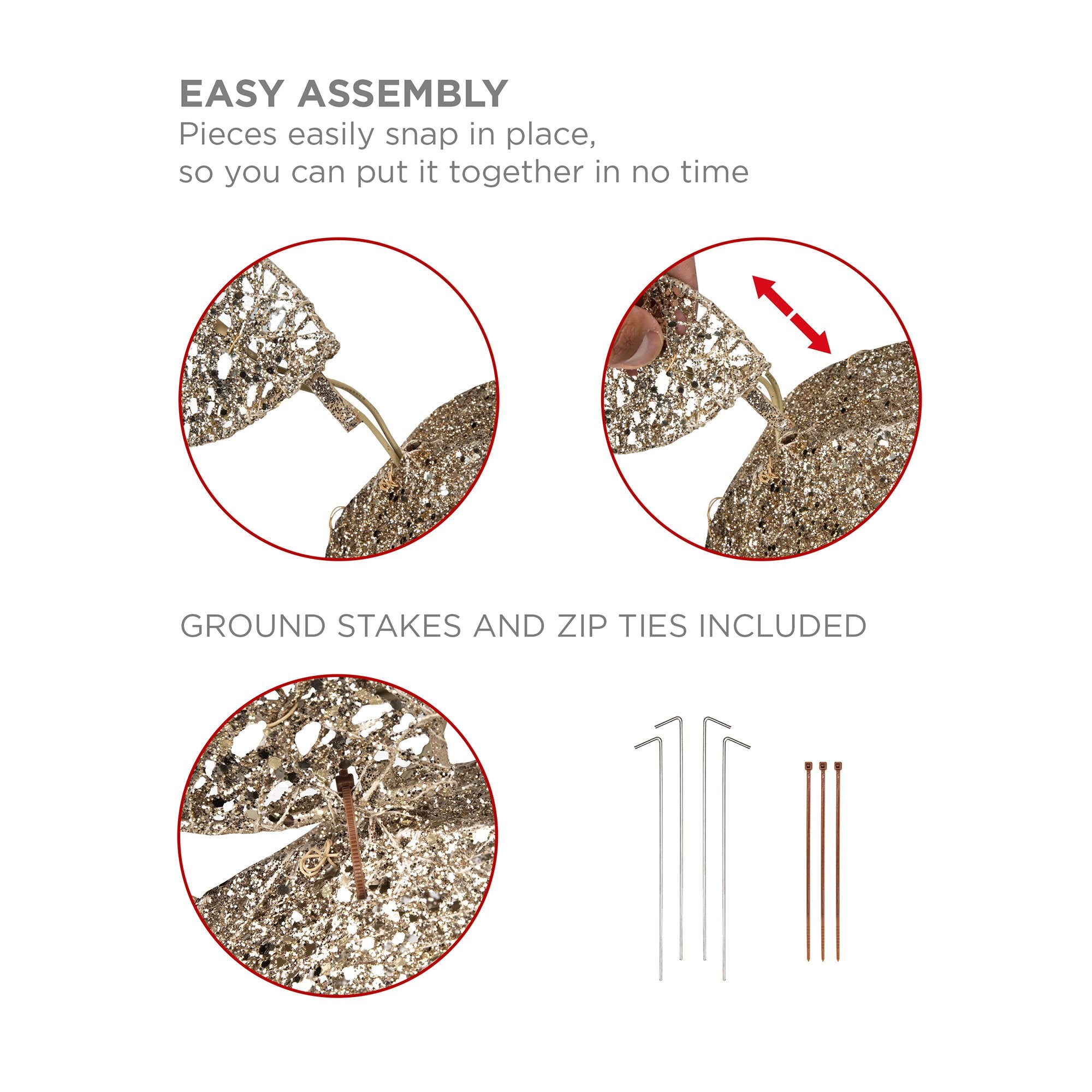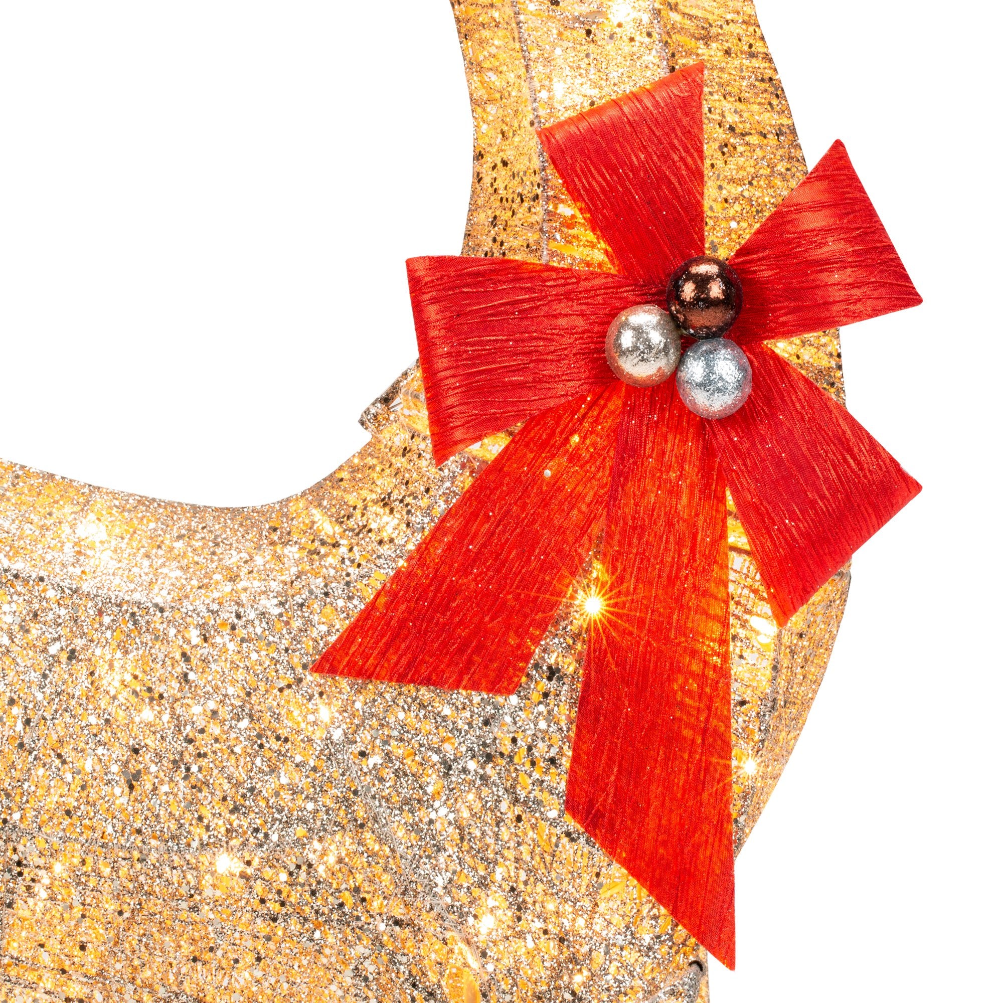 • ELEGANT AND REALISTIC: Made with glittery champagne gold coloring and a festive red bow, plus realistic details such as tall antlers and a sophisticated stance for eye-catching appeal