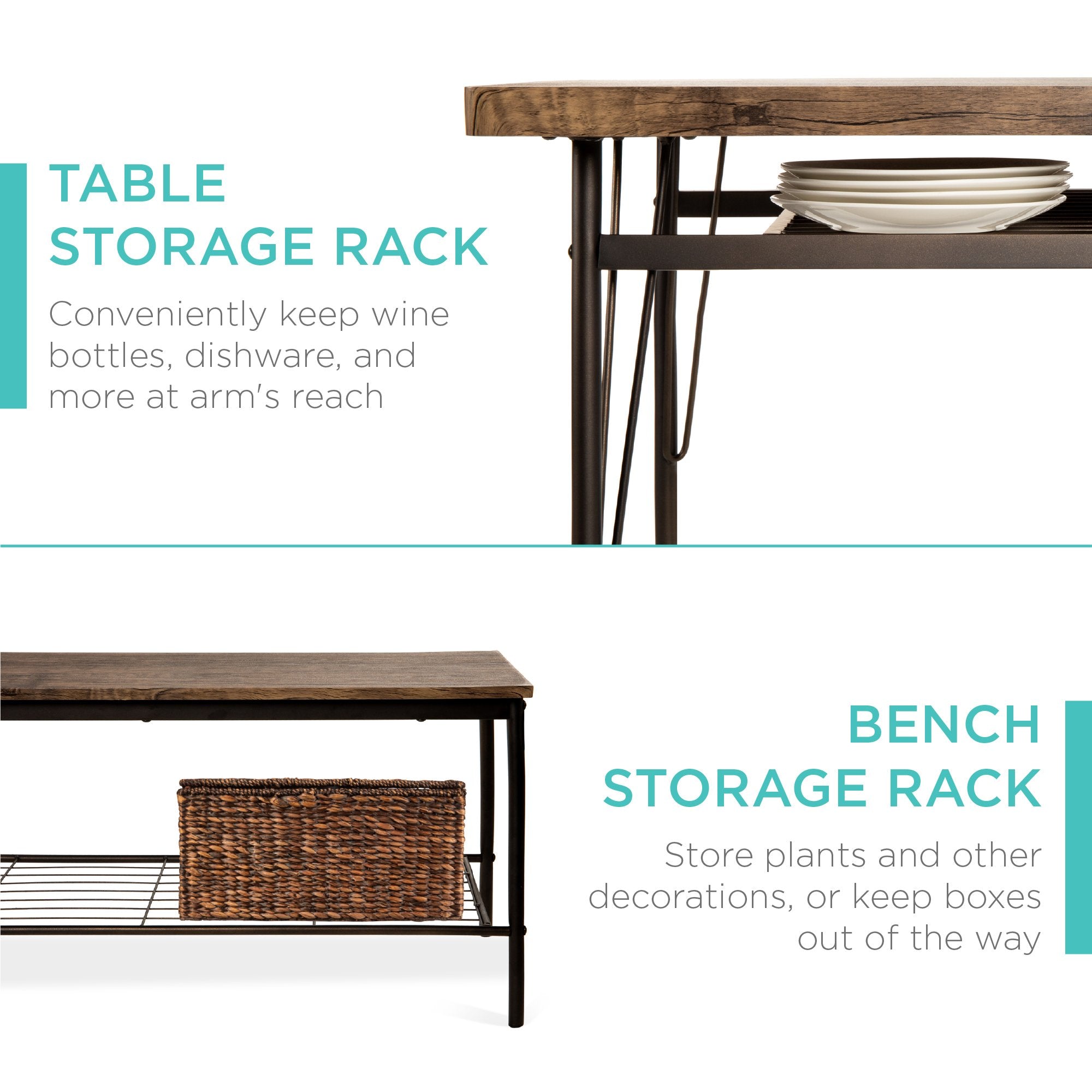 2 BUILT-IN STORAGE RACKS: Metal racks under the tabletop and the bench can conveniently hold books, board games, seat cushions, blankets, table mats, coasters, and much more