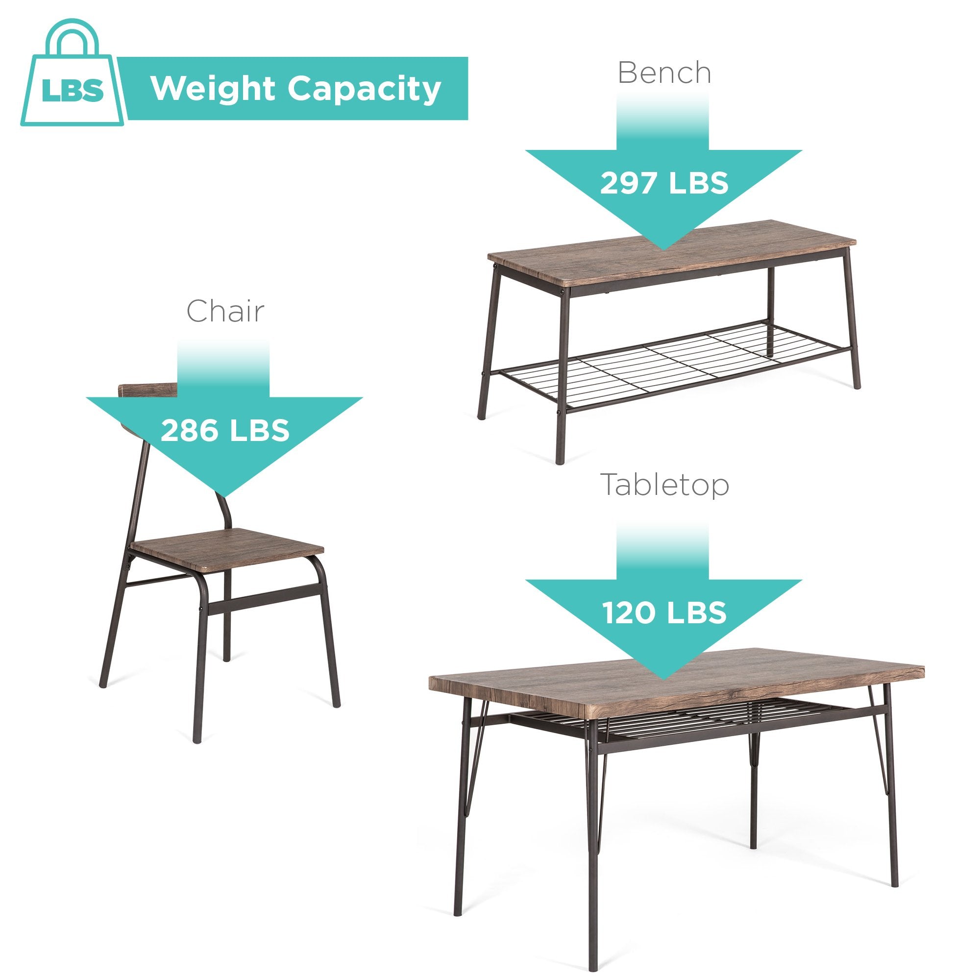 EASY-TO-CLEAN SURFACE: The finished tabletop and seats can wipe clean to take care of messes; TABLE DIMENSIONS: 55"(L) x 31.5"(W) x 29.75"(H); Chair Capacity: 220 lbs. (each)