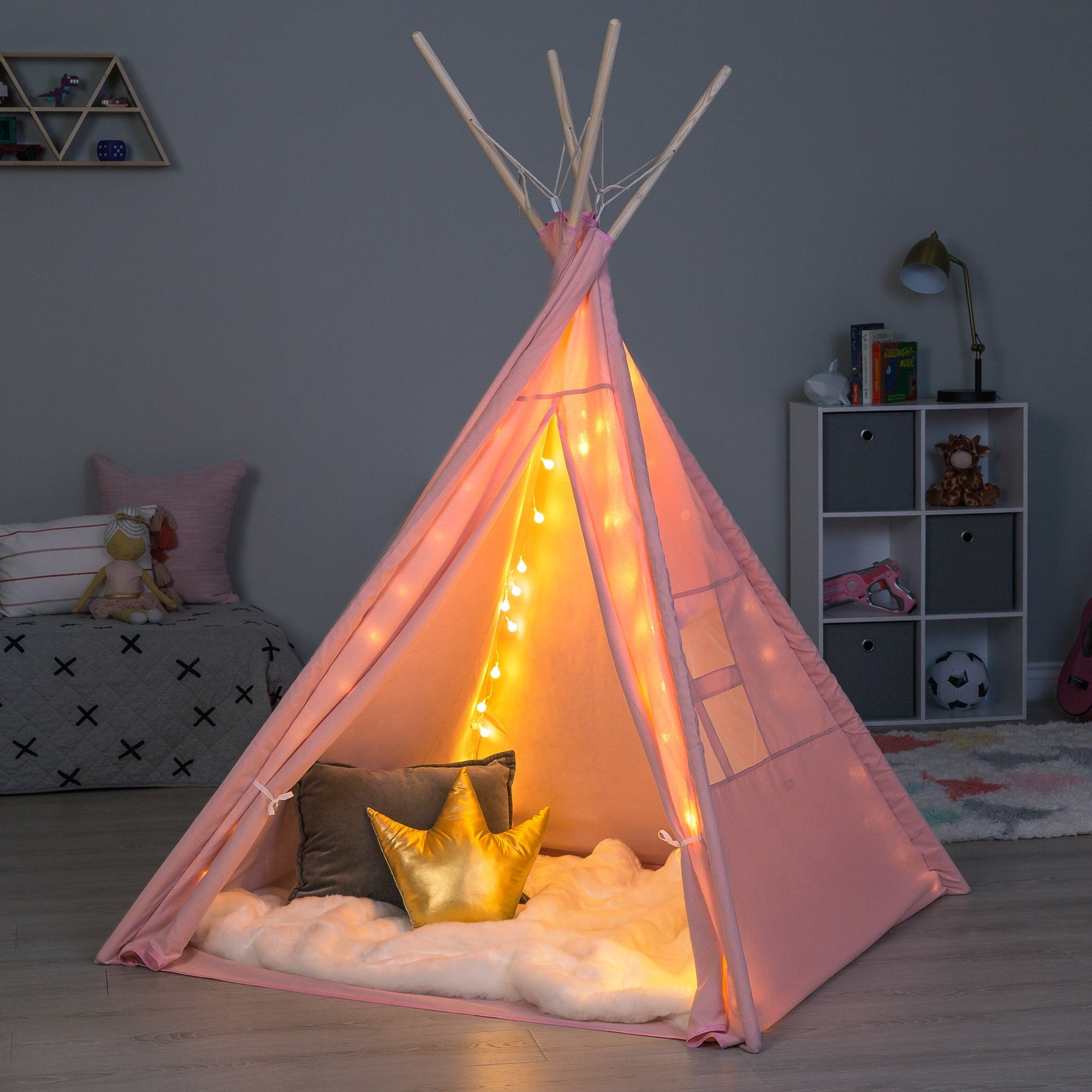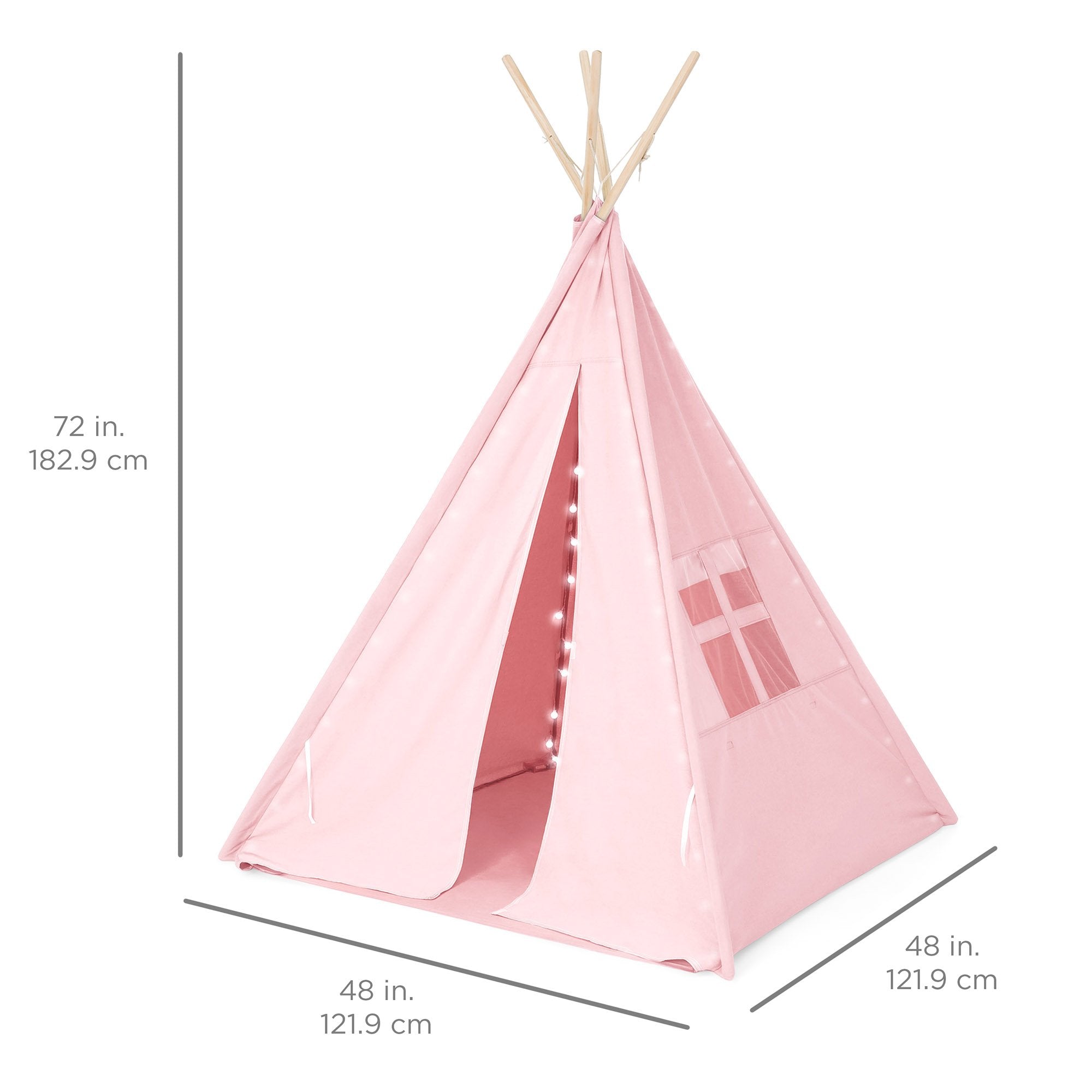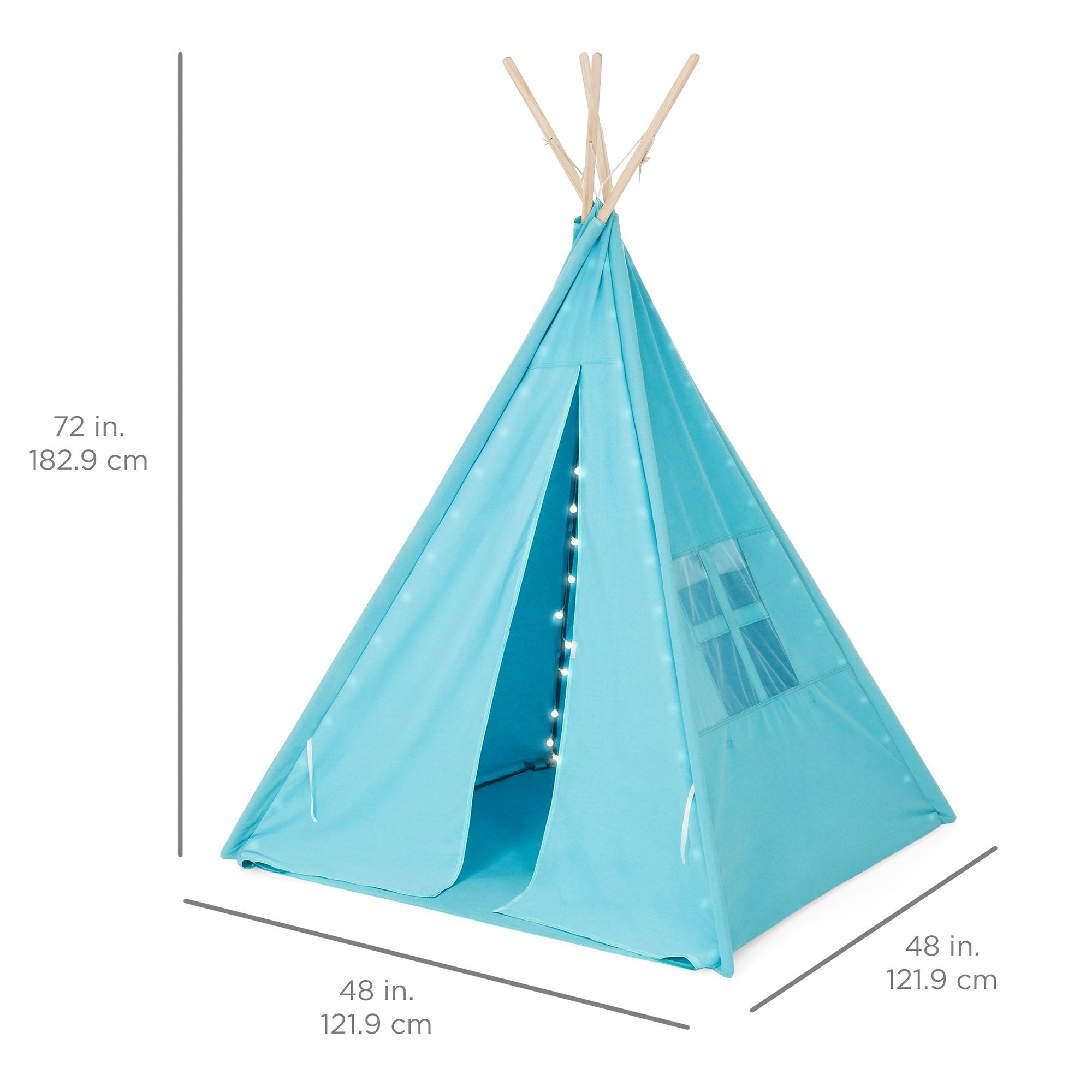 6ft Kids Cotton Pretend Teepee Play Tent w/ LED Lights, Carrying Bag