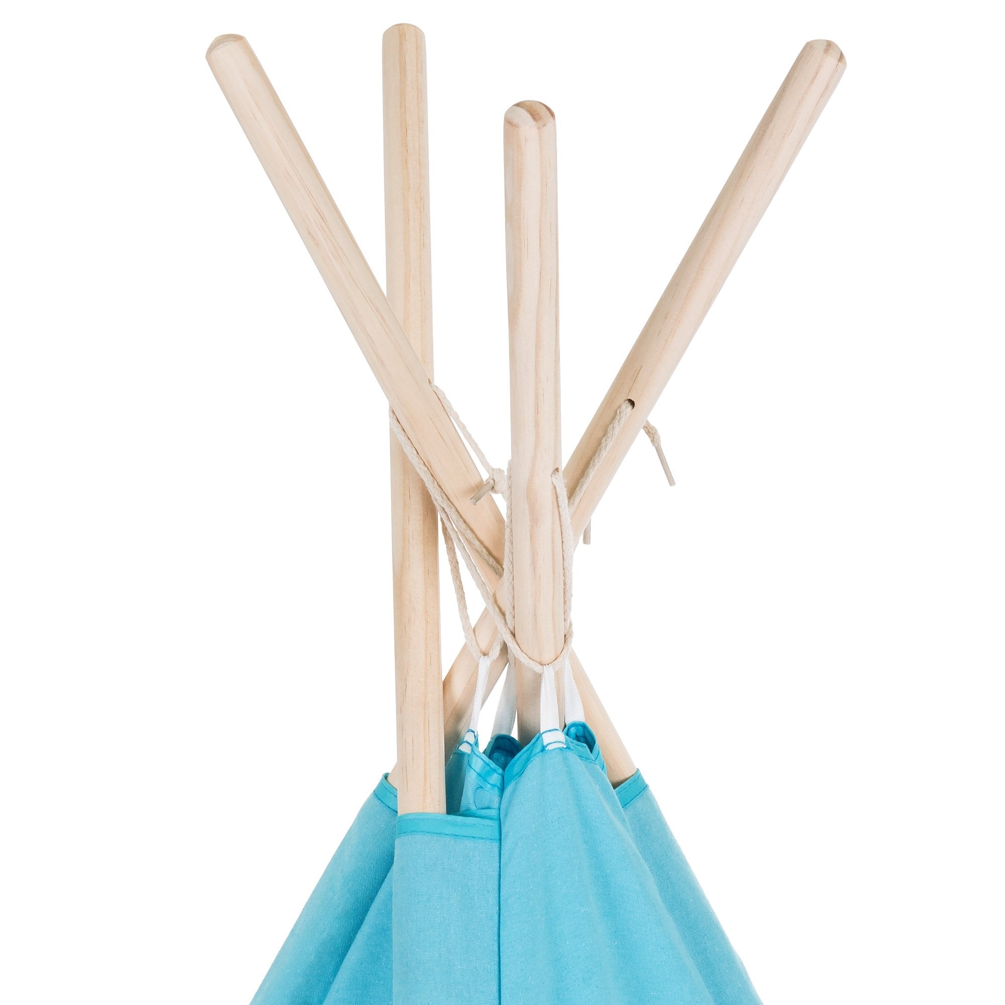 Easy to set up and crafted with soft, durable cotton canvas and 4 wooden pole frames, along with a canvas floor play mat