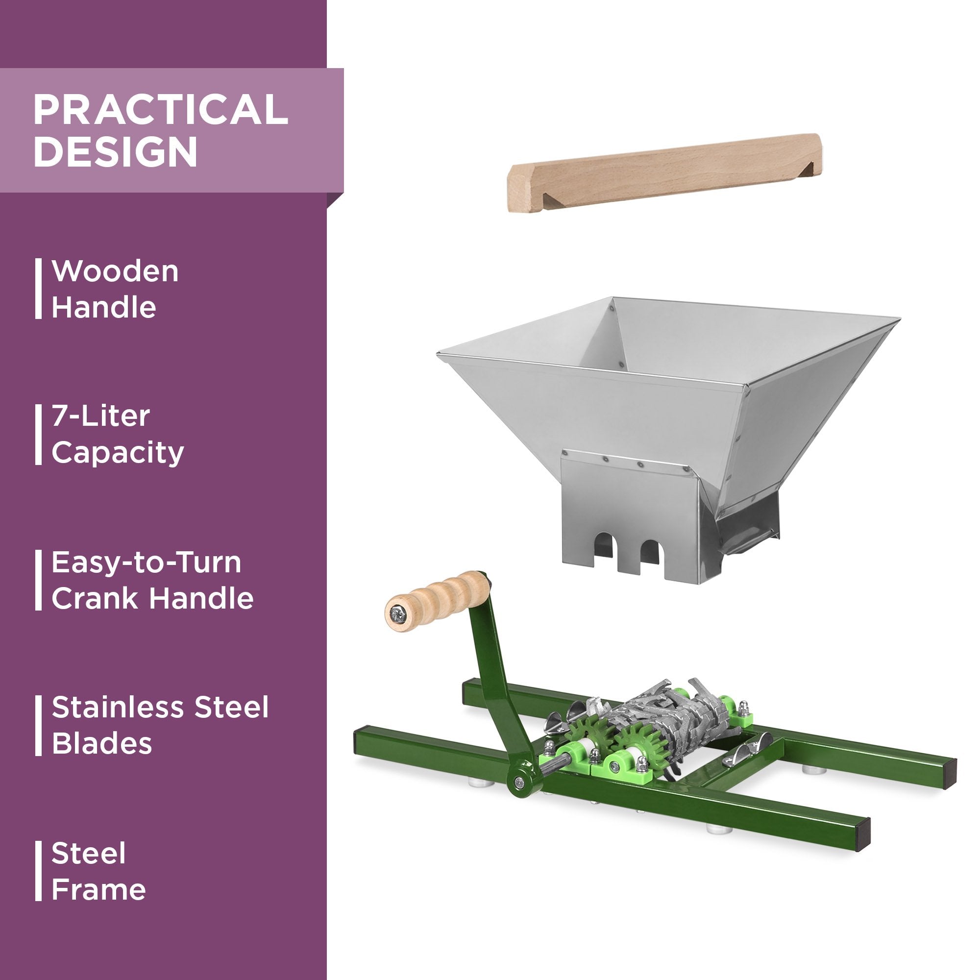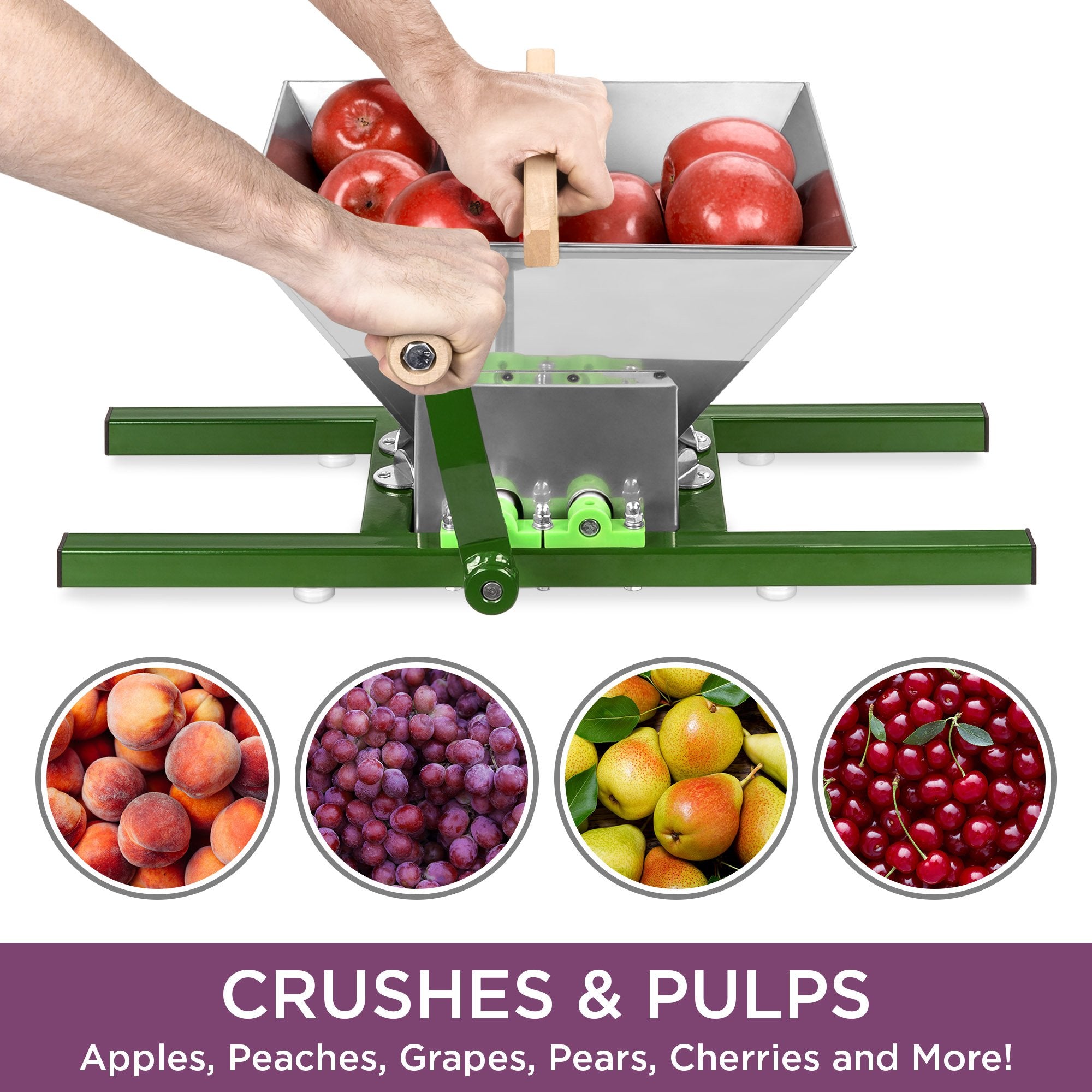 7-LITER CAPACITY: Holds and crushes up to 7 liters of fruit, the perfect first step in making large amounts of homemade fruit juices