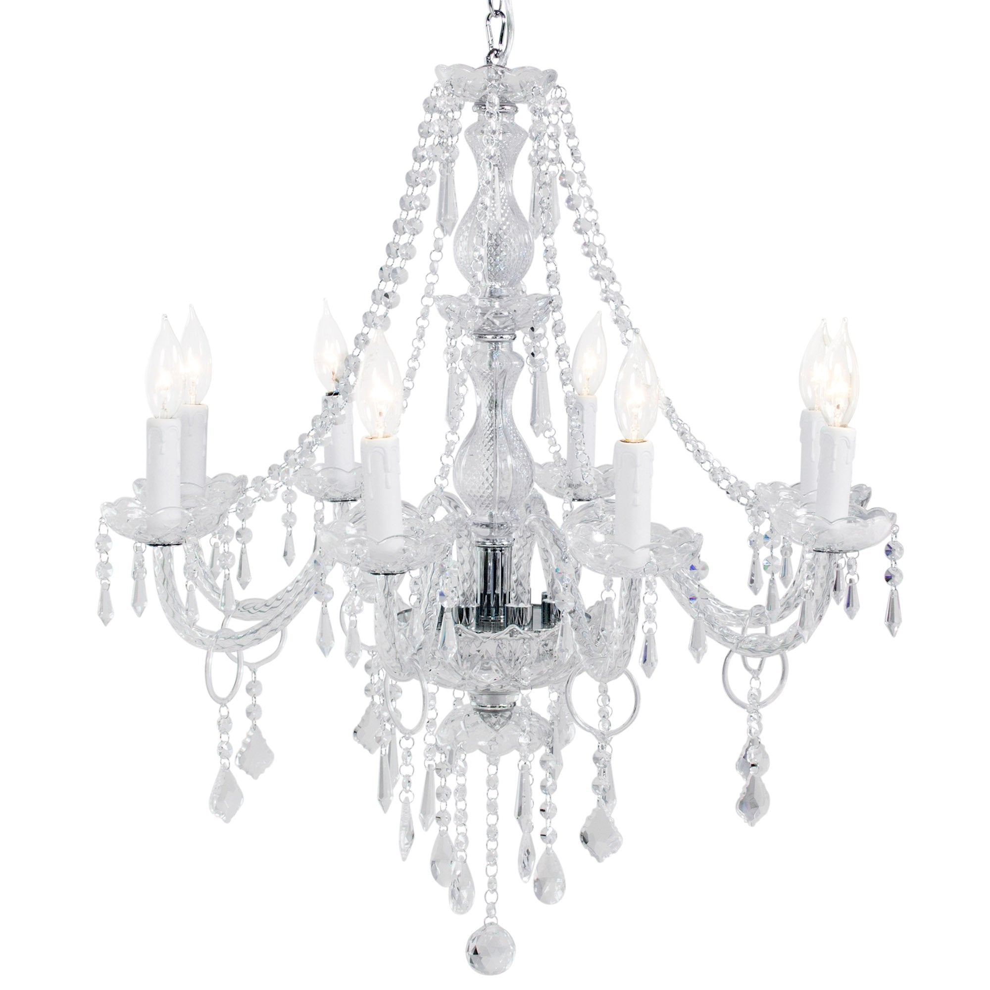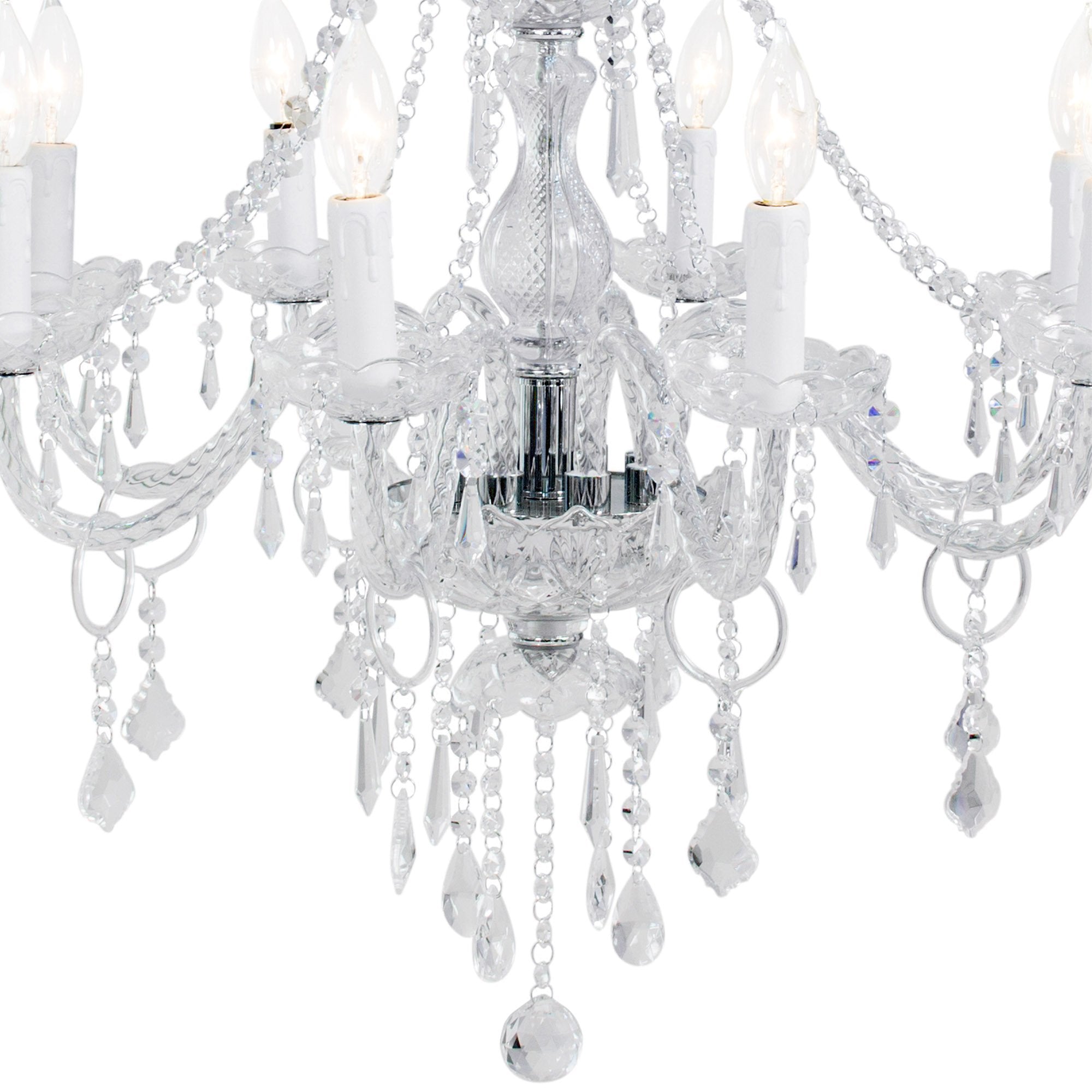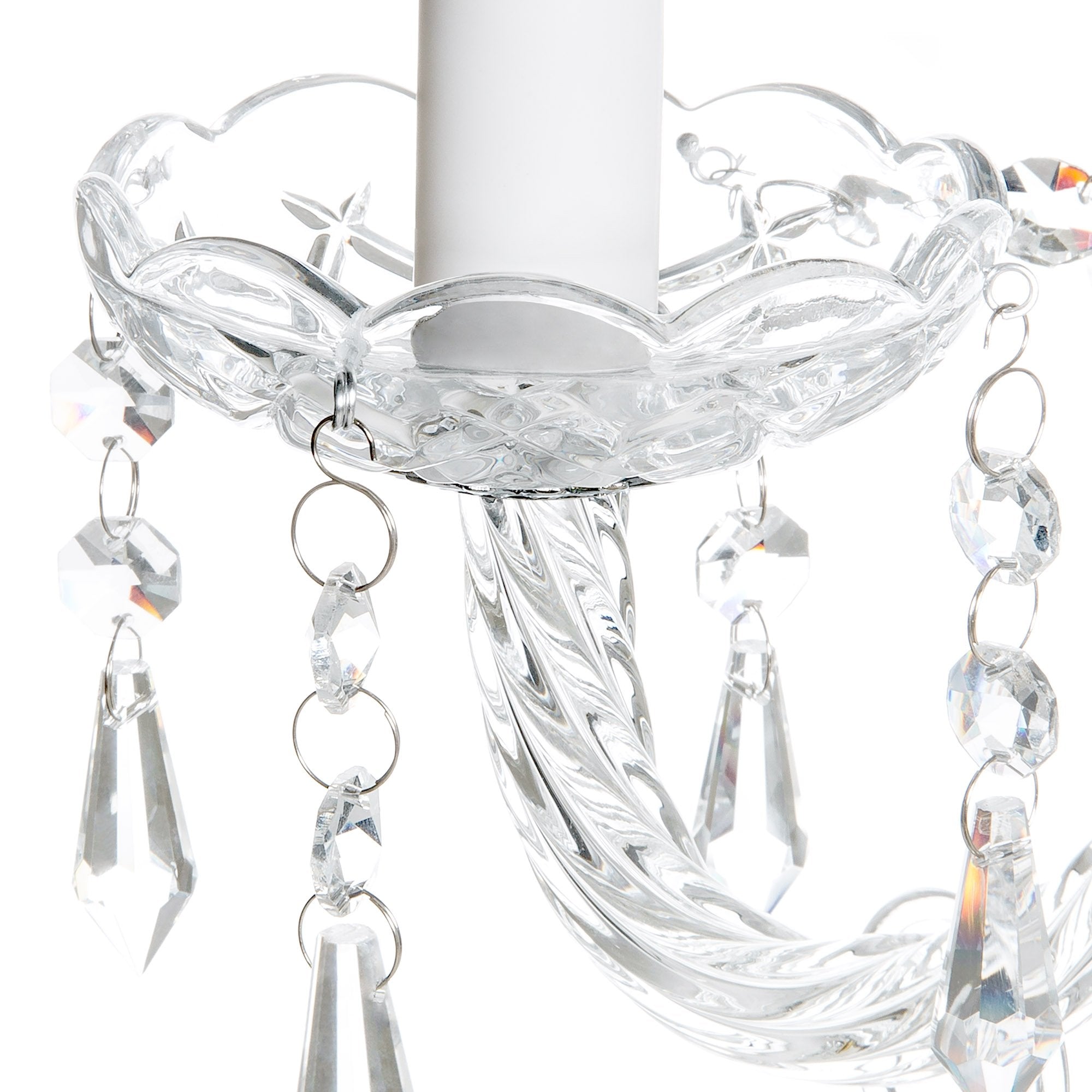 Candelabra (25 Watt) light bulbs (not included) provide an appearance of candles lighting up the chandelier