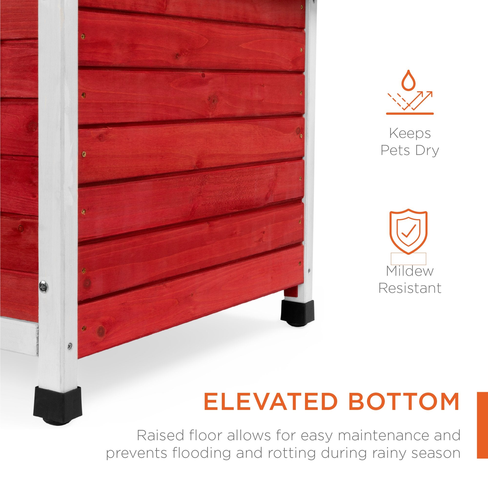 • QUALITY BUILD: Made of 100% fir wood with a slanted asphalt roof that allows rainwater to run down, and an elevated bottom to prevent rot and promote pet hygiene, keeping bugs and dirt from collecting inside