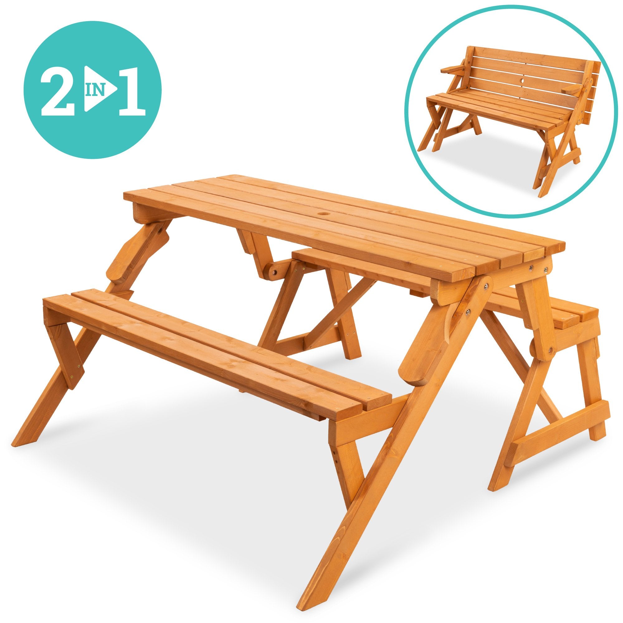 HIGH-QUALITY COMPOSITION: Sturdy natural wood holds up to 4 people when used as a picnic table and 2 people when used as a bench; made lightweight to allow for easy mobility