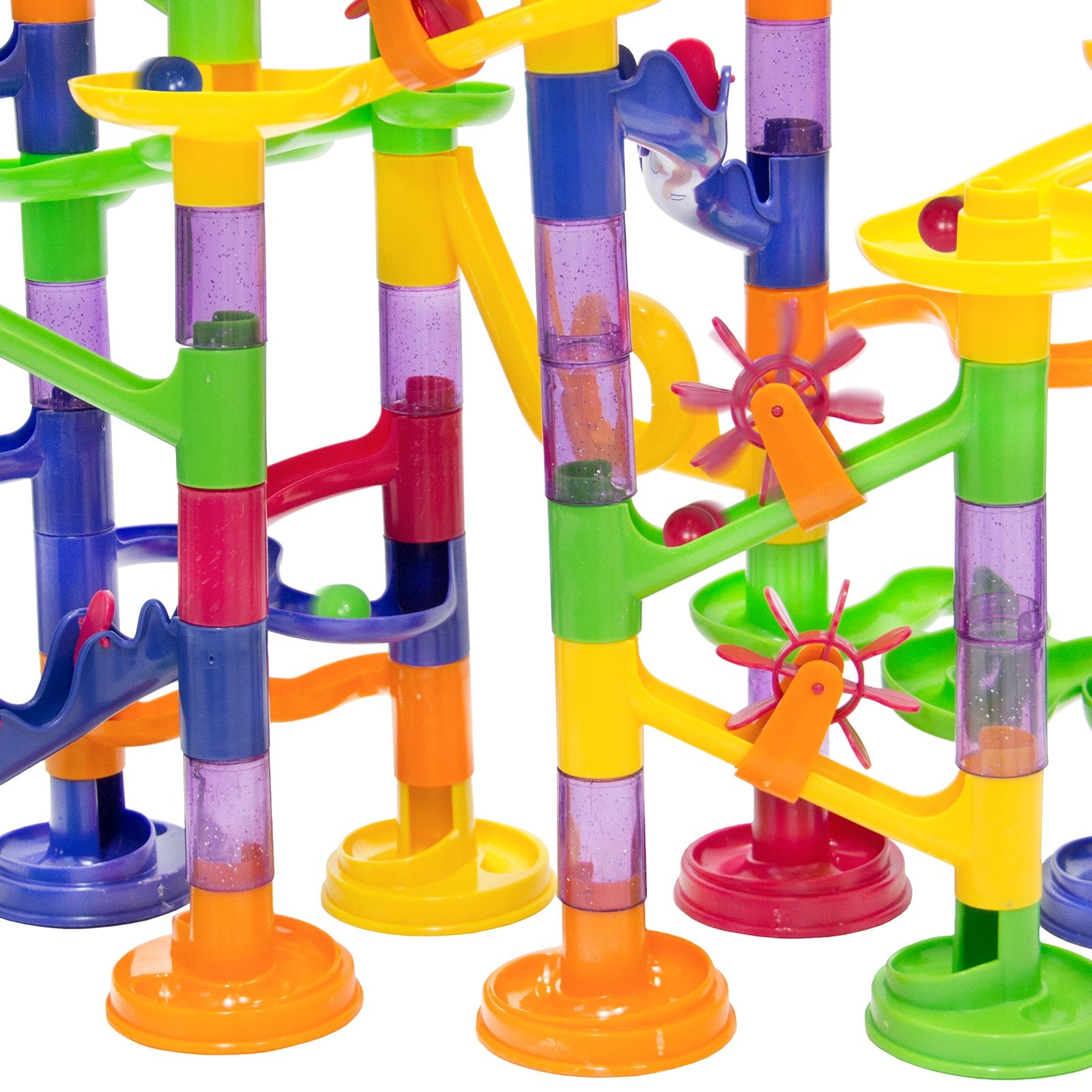 105-PIECE SET: Fun and creative marble run set is complete with 75 structure pieces and 30 marble balls, allowing children and adults to have as much fun building as they do playing