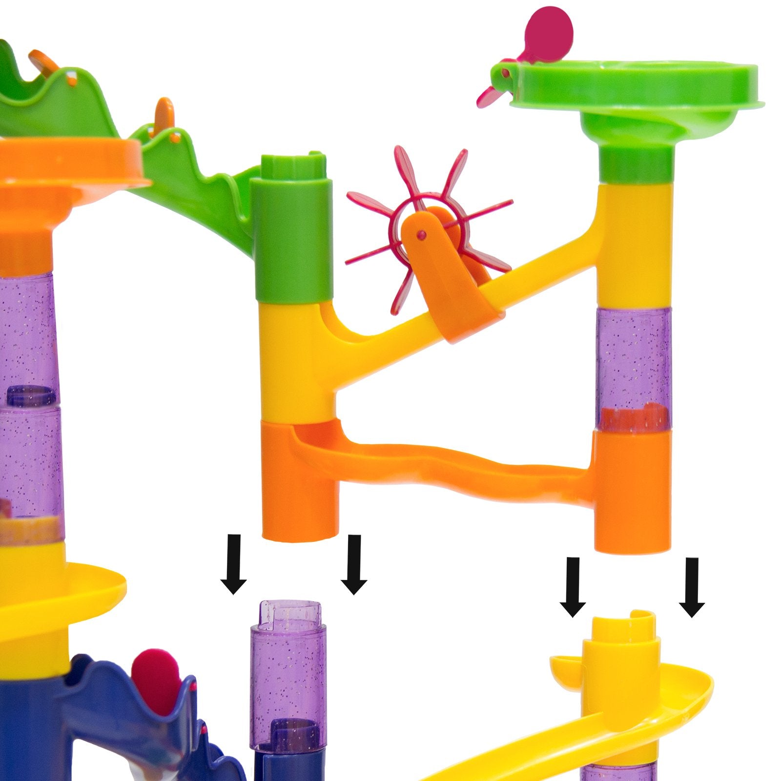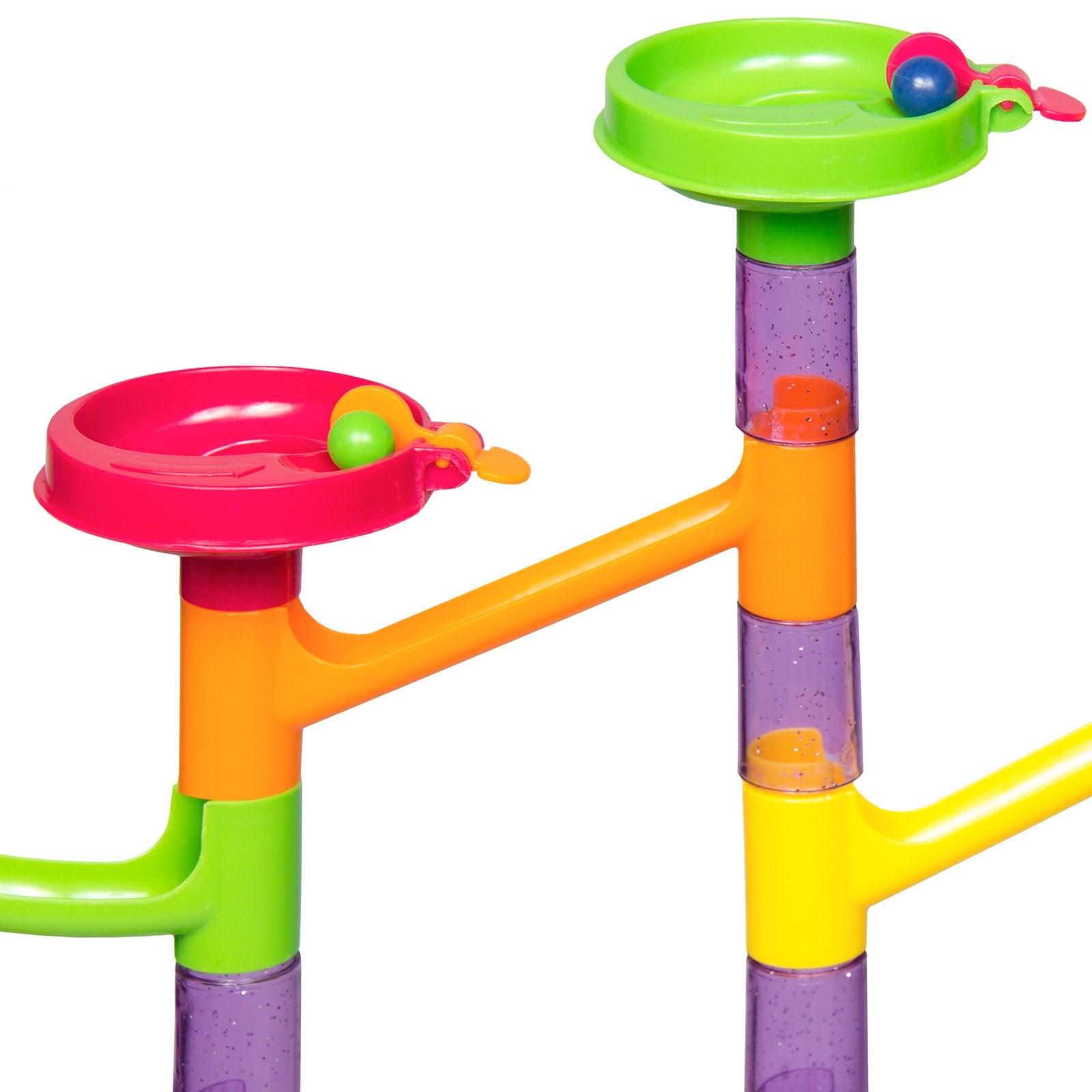 CUSTOMIZABLE PATHWAYS: Learning is made fun, as children can create simple or complex railway paths and watch the marbles go through the tubes, made transparent for easy viewing