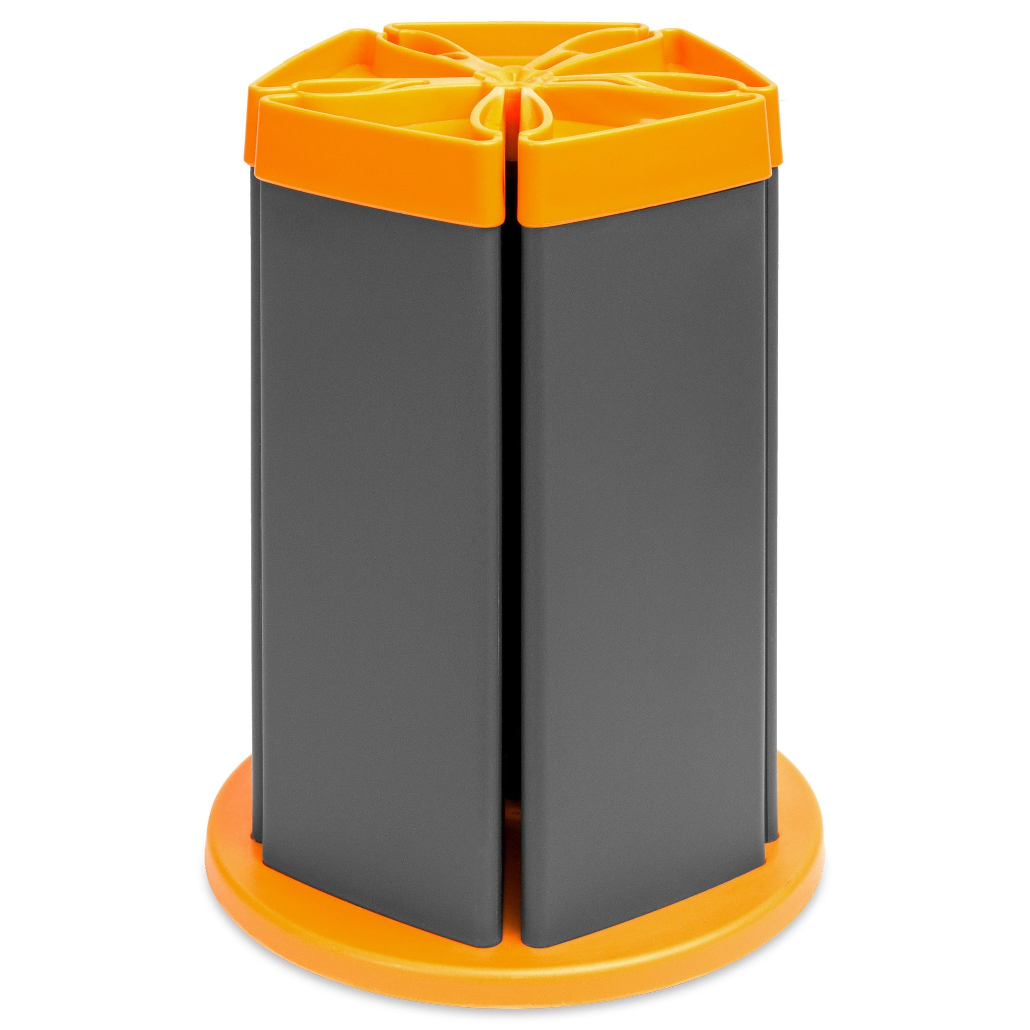 Everything is easily accessible, as the included utensil stand is built onto a rotating base for a complete 360-degree turn radius