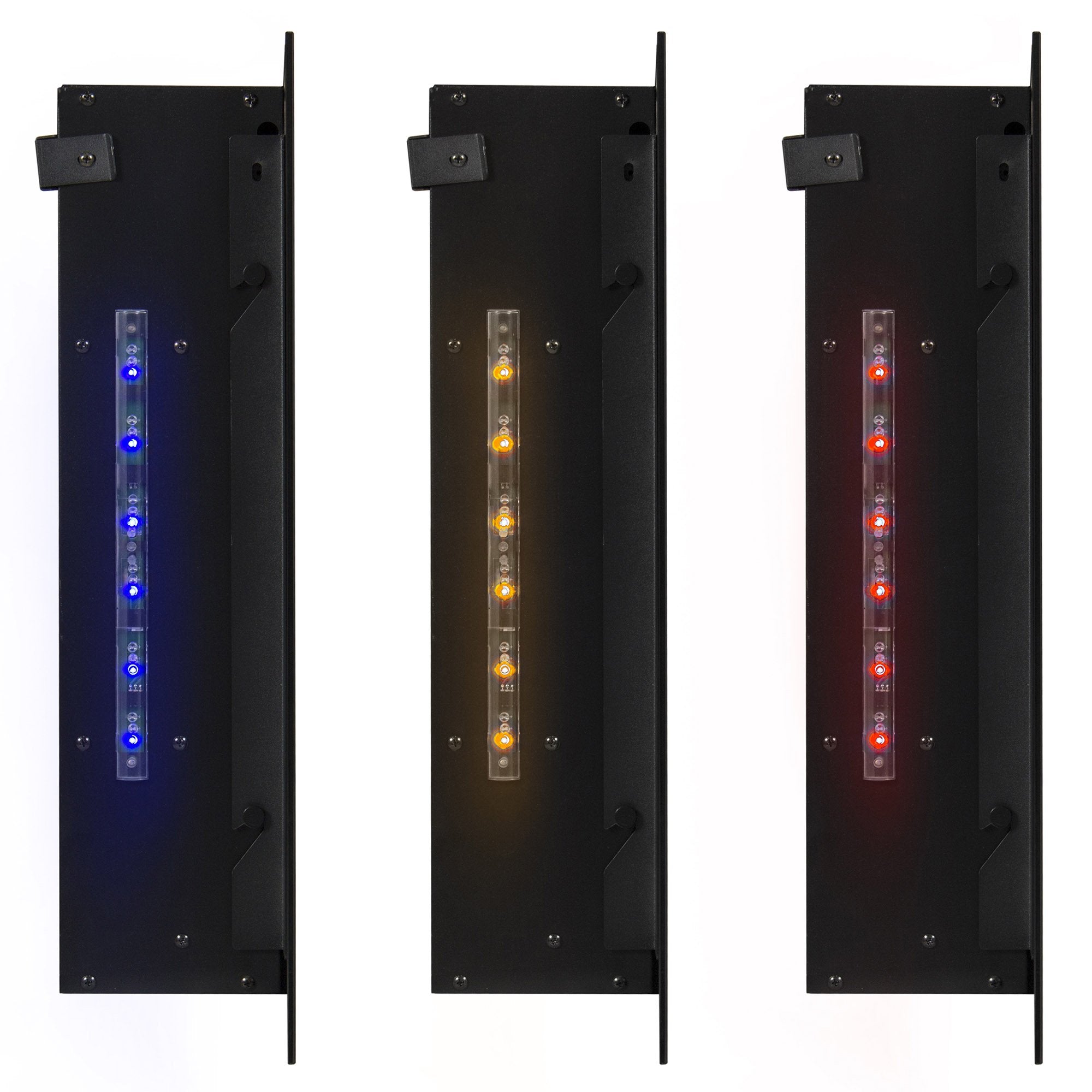 Features multicolored LED lights, located on 2 sides, that can be set to: red, orange, purple, and combination