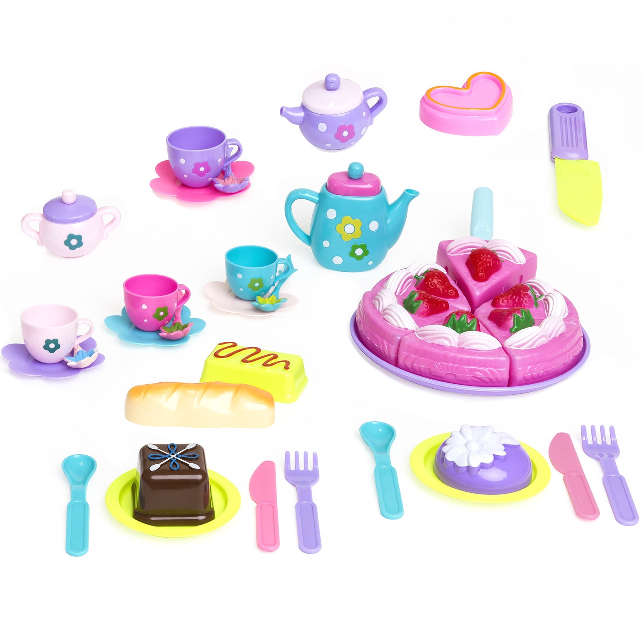 INTERACTIVE PLAYSET: Give your child all they need to create their ideal tea party; includes play bread and butter and an interlocking strawberry cake with a serving spatula
