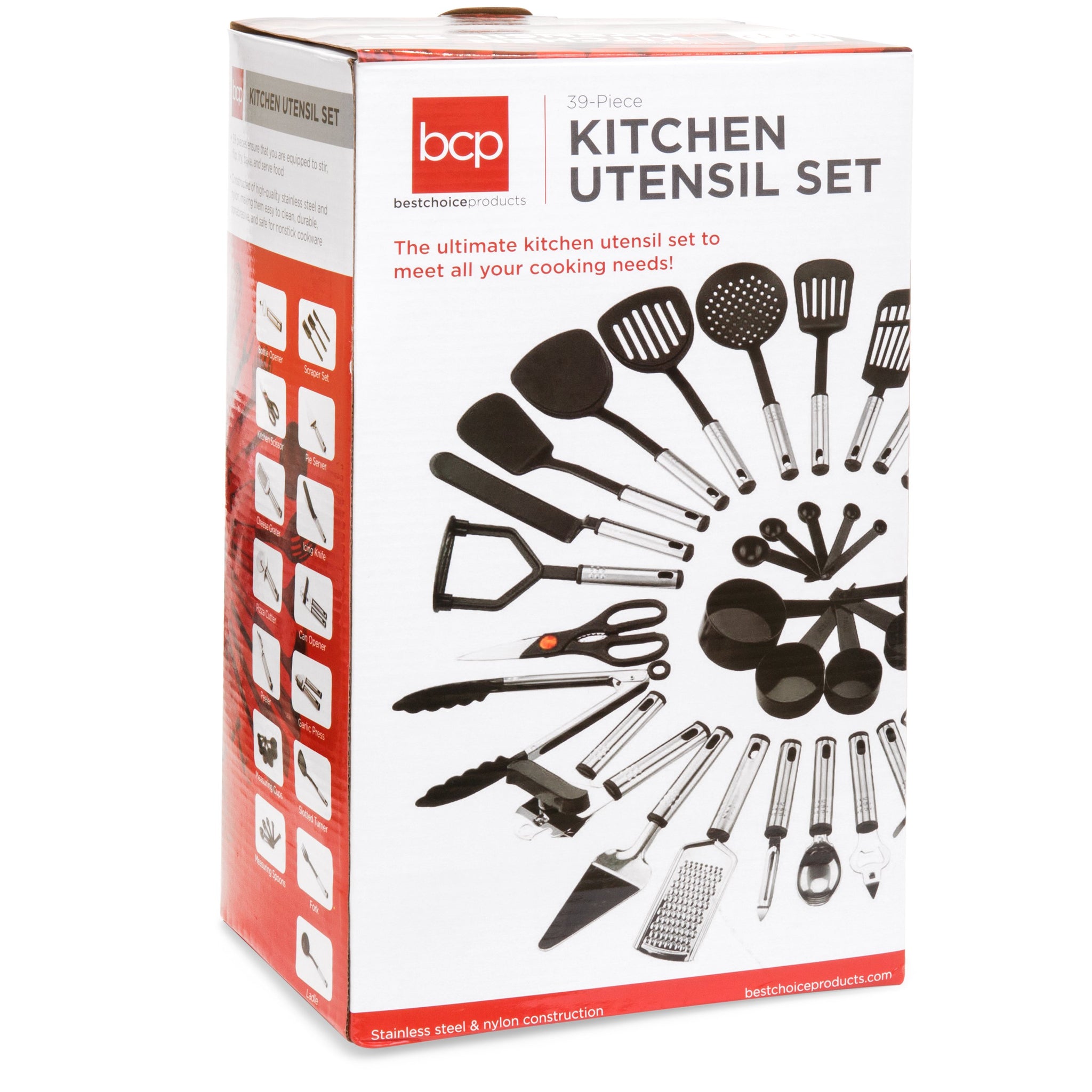 39-Piece Stainless Steel and Nylon Cooking Utensil Set - Black/Silver