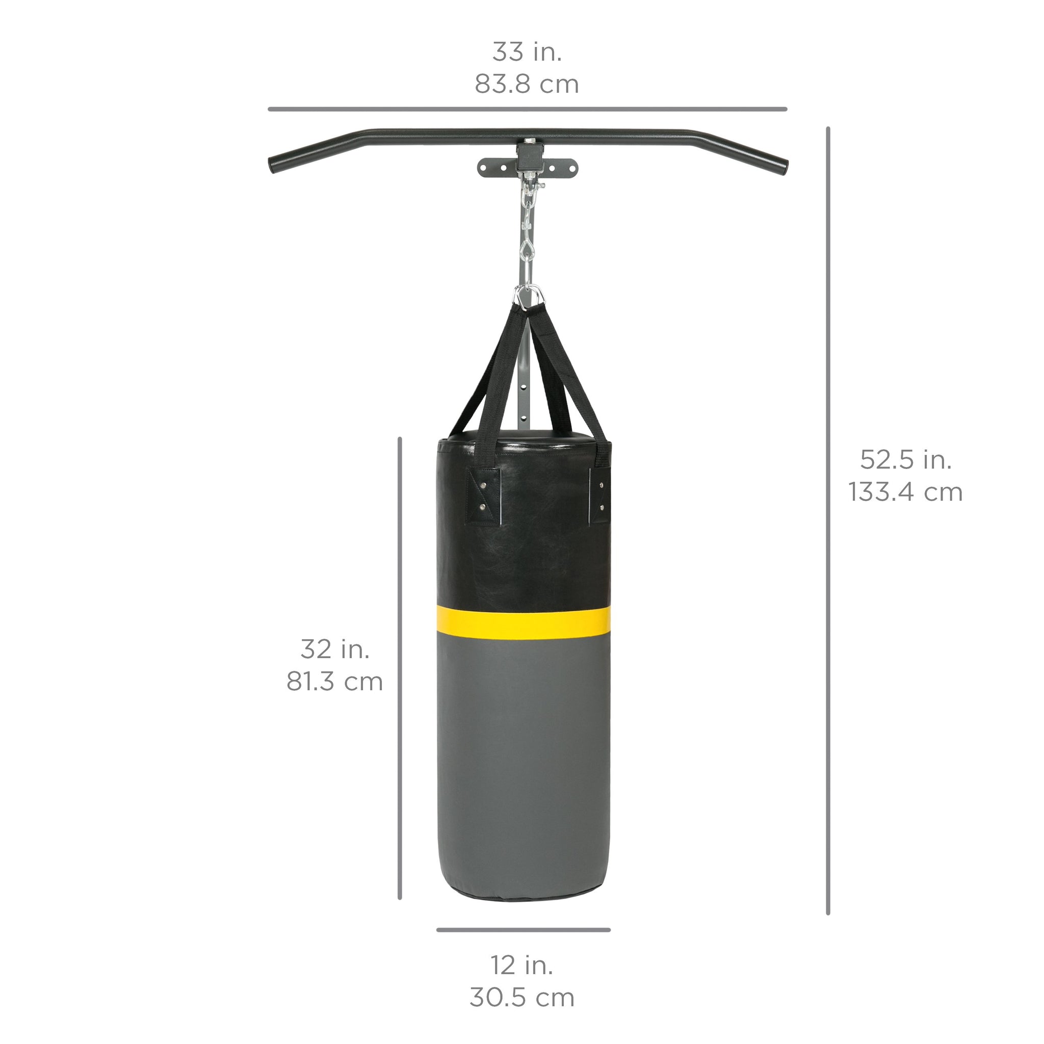 52lb Hanging Heavy Punching Bag w/ Wall-Mount Rack, Pull Up Bar