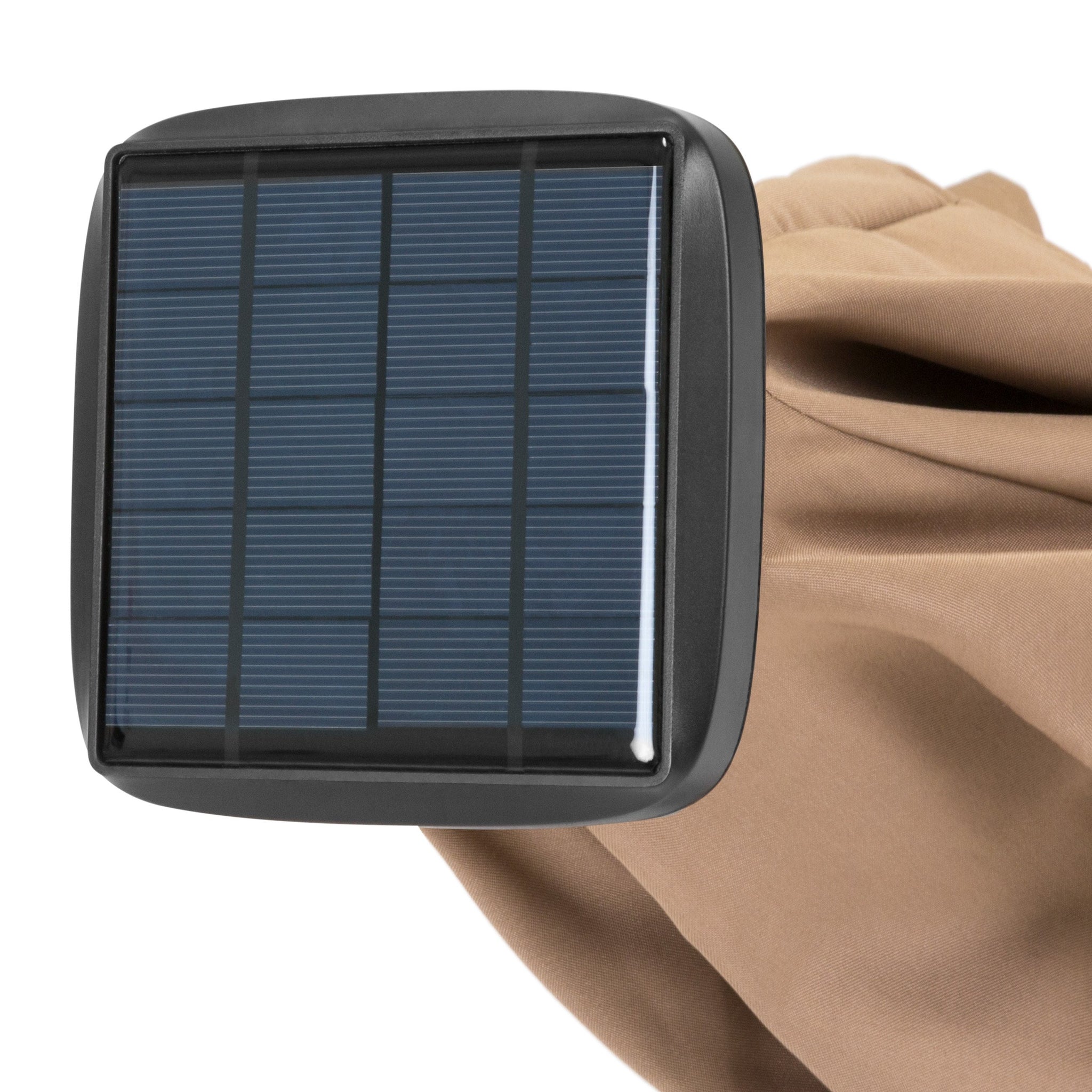Made of fade-, water-, and UV-resistant polyester, plus 5 steel ribs with continuous LED lights