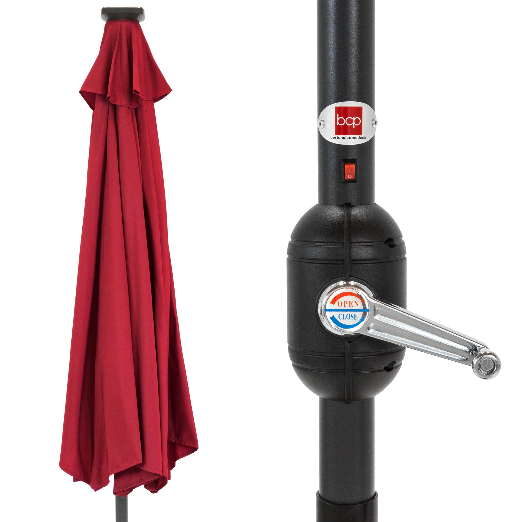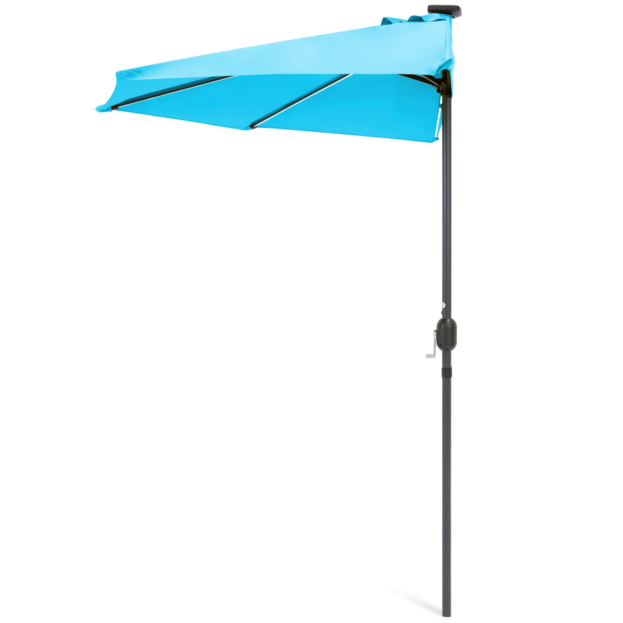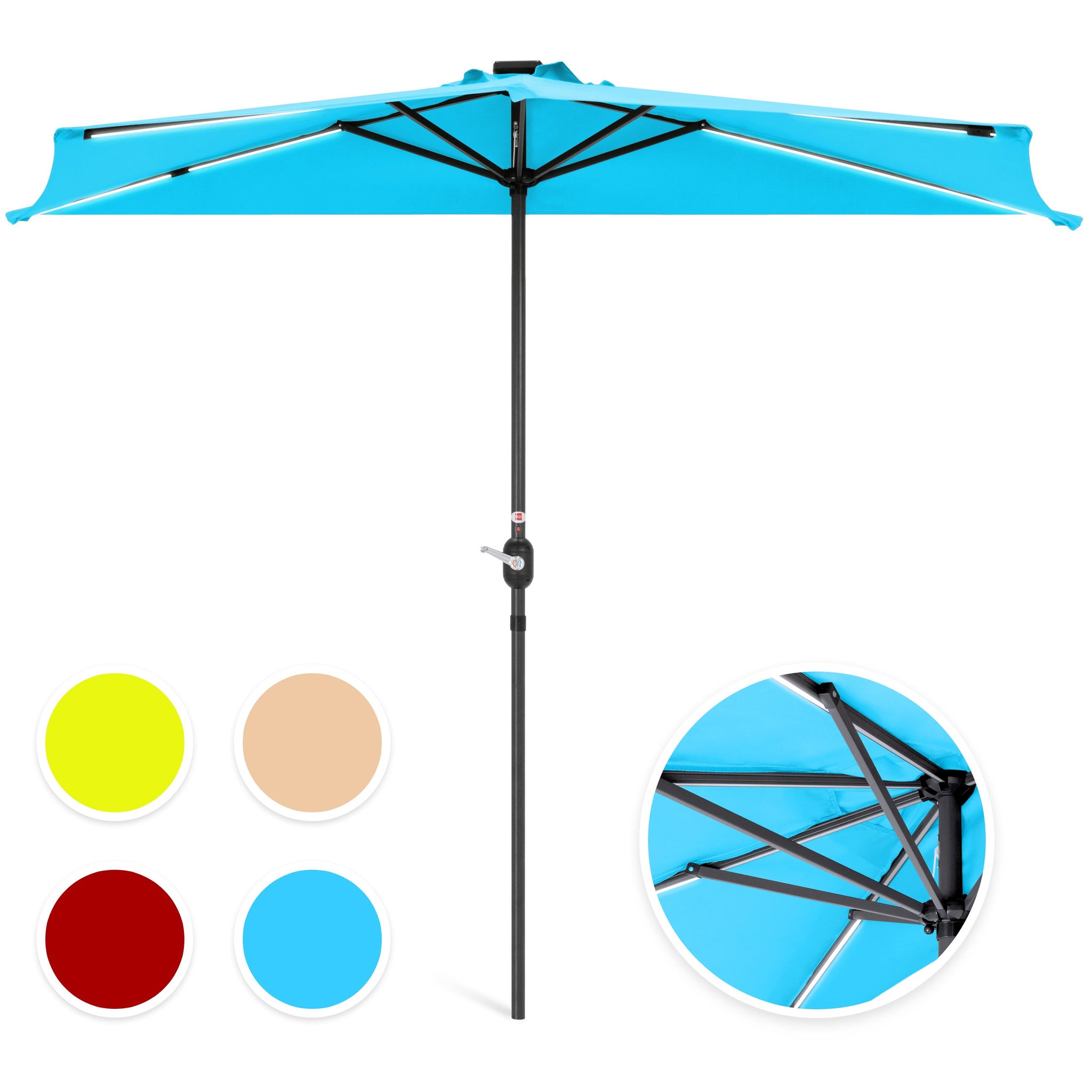 8.5ft Outdoor Solar LED Strip Lighted Half Patio Umbrella w/ Hand Crank