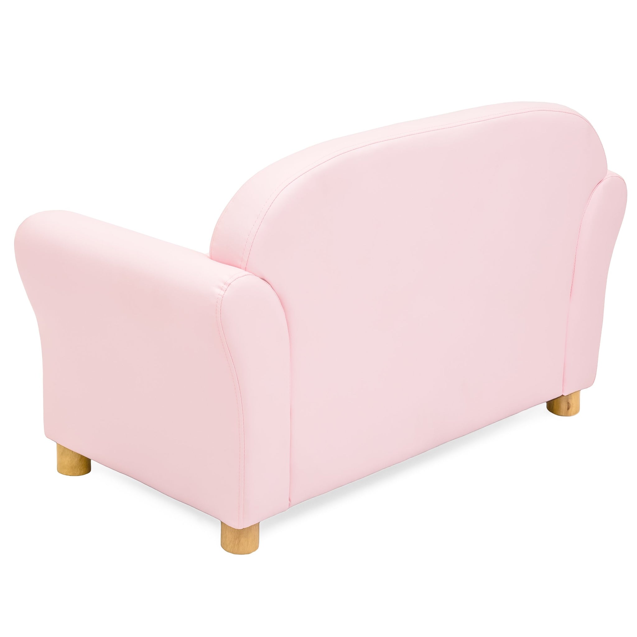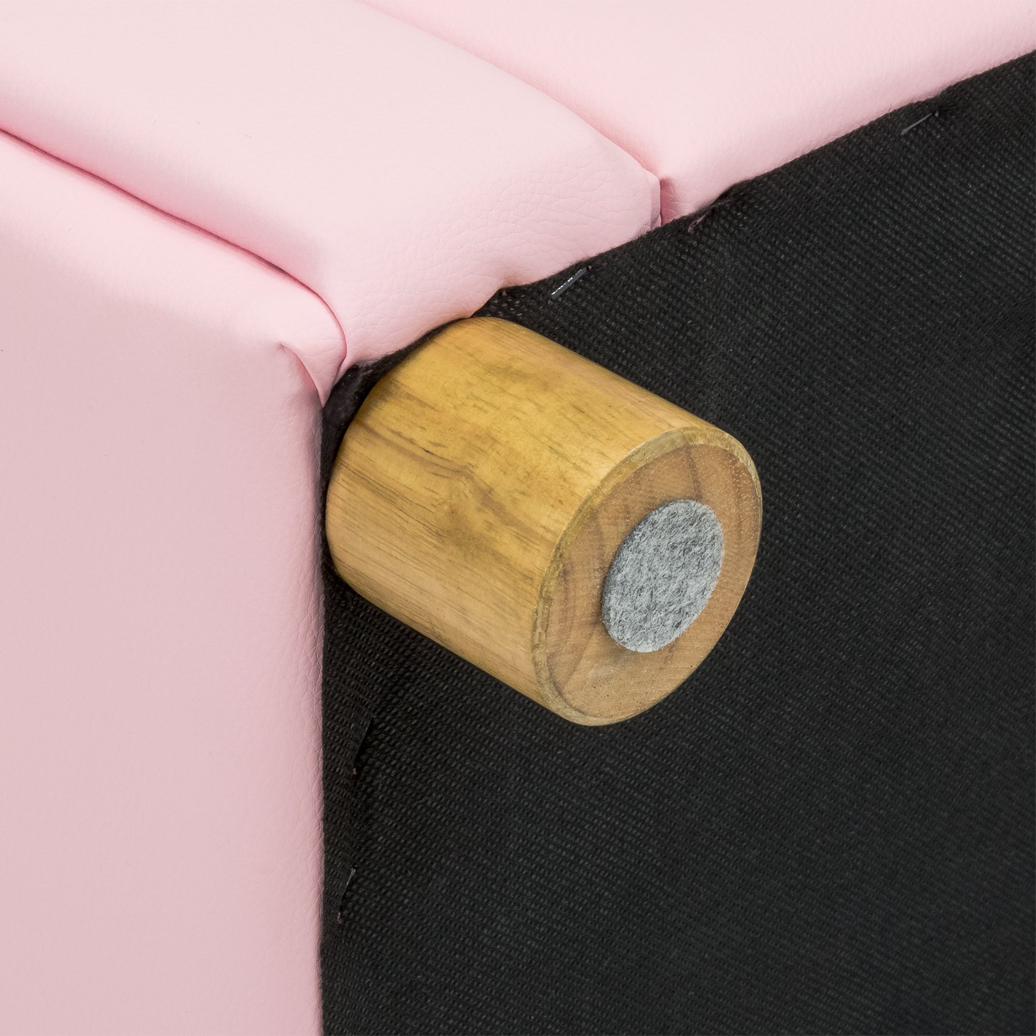FAUX LEATHER UPHOLSTERY: Tough and easy-to-clean, the pink faux leather can withstand spills and light wear-and-tear