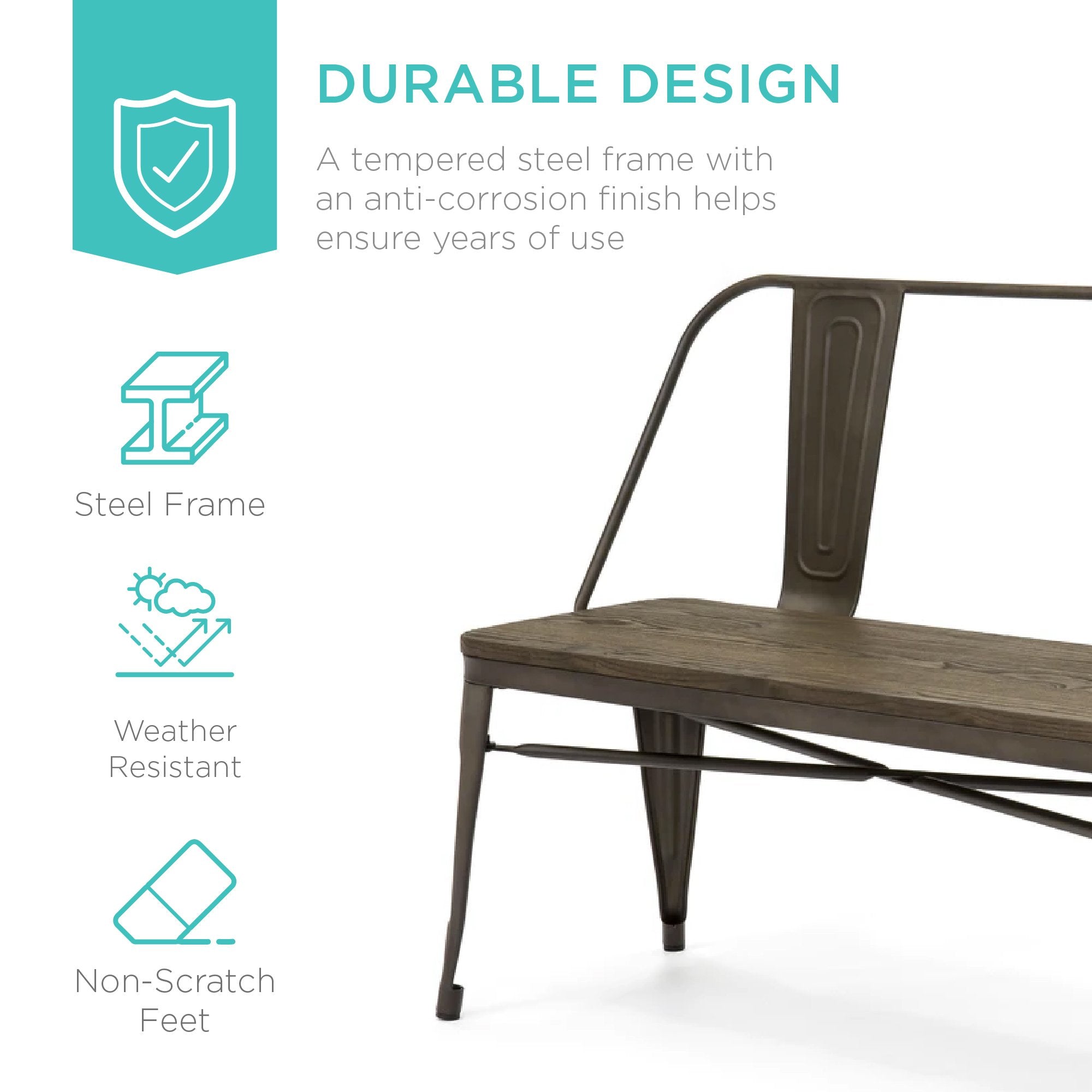 VERSATILE: As appropriate in your dining room as it is on your patio, this bench's weather-resistant coating assures a quality sitting space anywhere in your home
