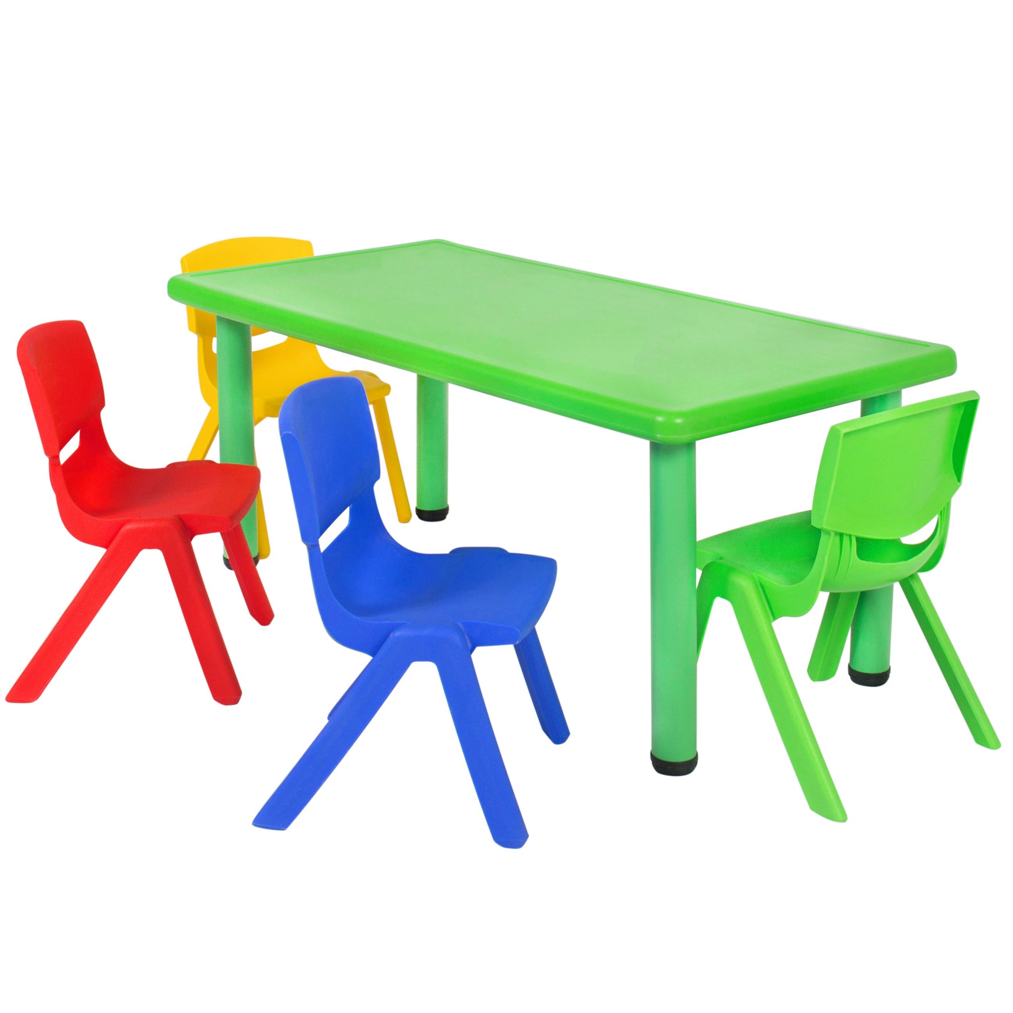 • SAFE AND PRACTICAL: Kids table and chair set includes 4 chairs and a rectangular table with rounded corners for children's safety