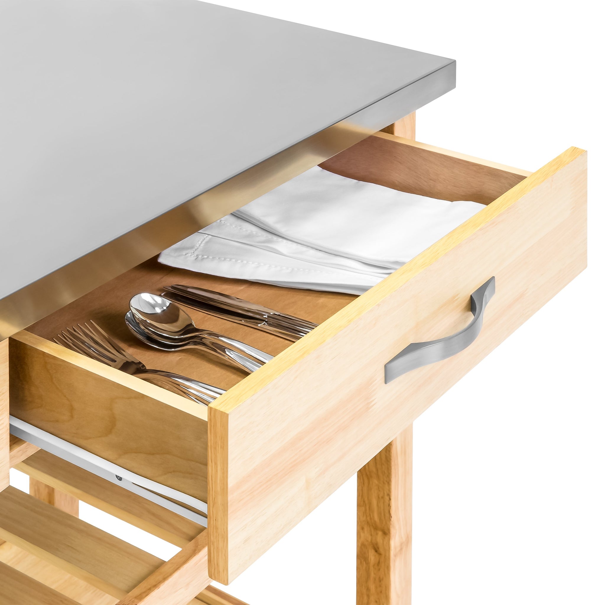 STAINLESS STEEL COUNTERTOP: This cart's smooth countertop is ideal for efficient, hygienic food prep and allows for easy cleaning afterward