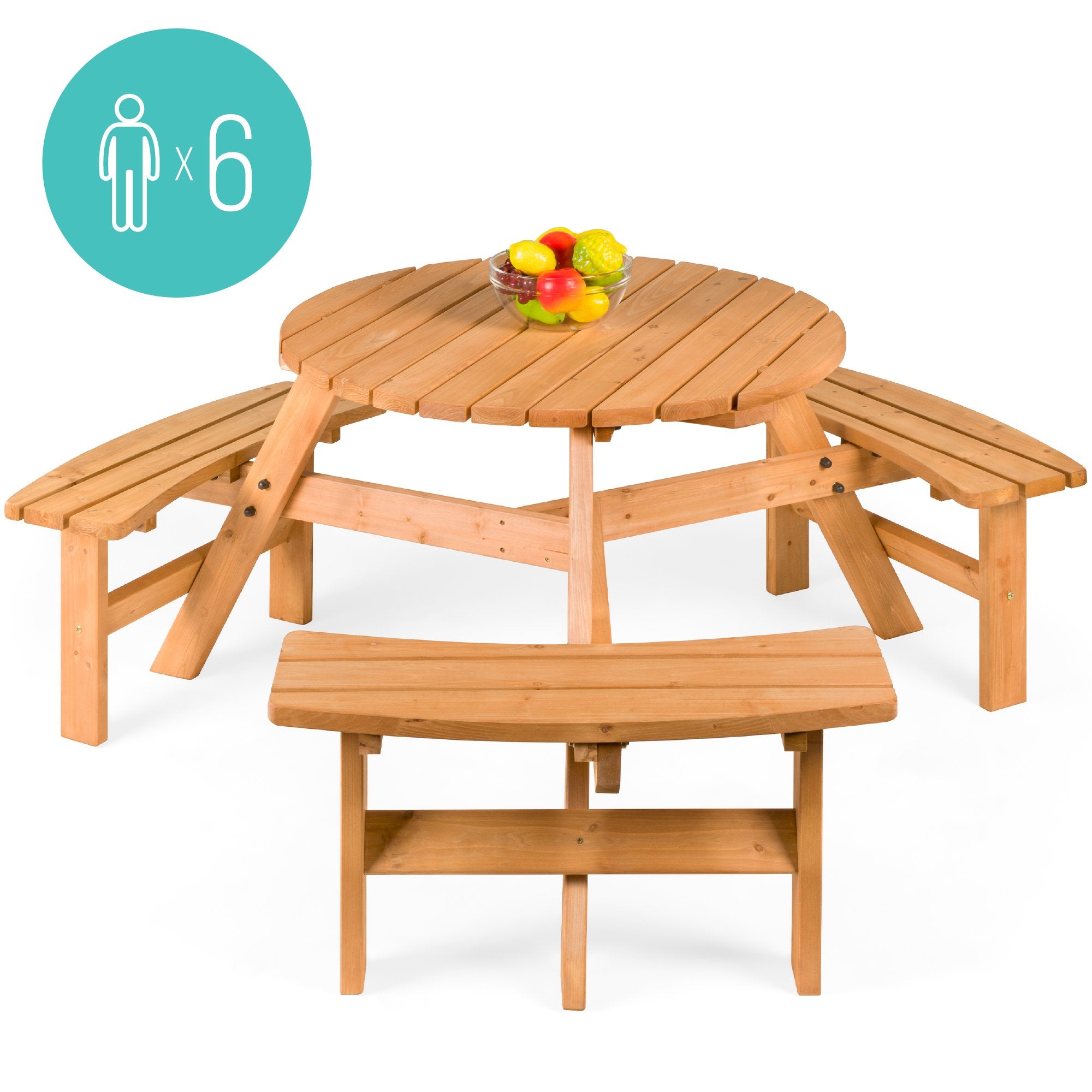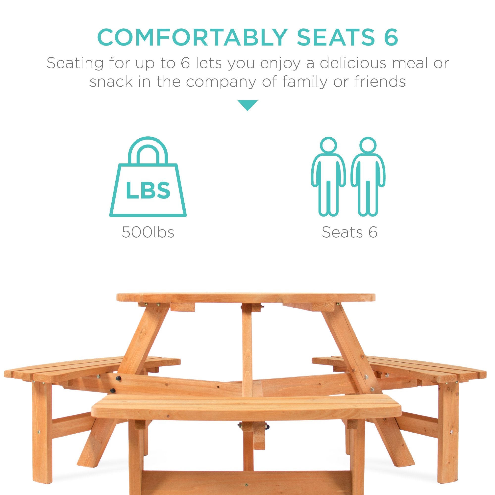 SEATS 6 PEOPLE: Holds a maximum of 500 pounds, allowing up to 6 adults to gather 'round on connected benches for good food and company; accommodates 2 people per bench