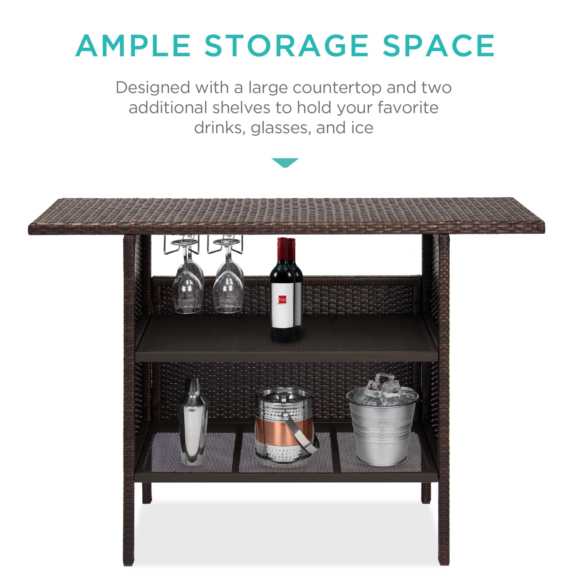 Outdoor Wicker Bar Counter Table w/ 2 Steel Shelves, 2 Rails