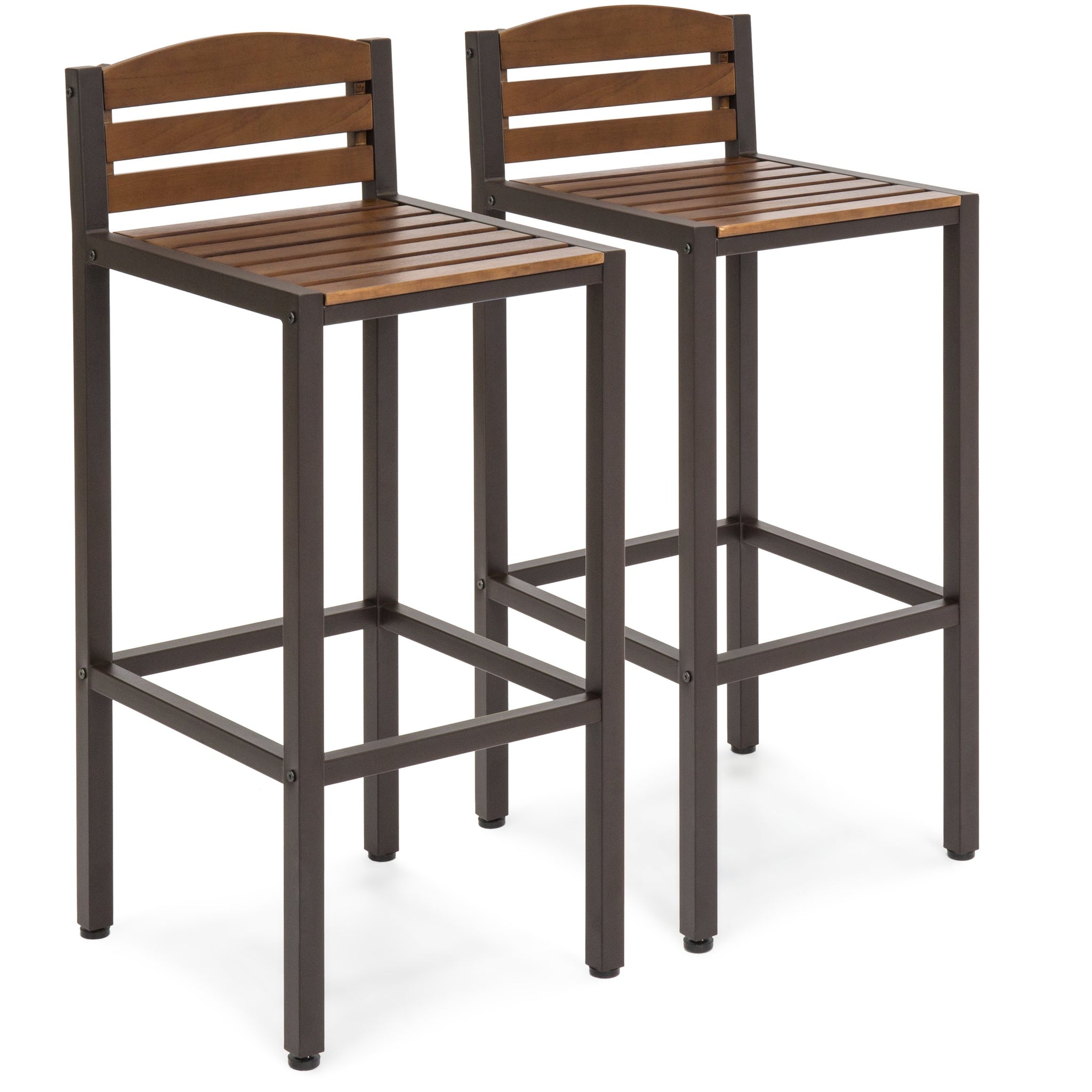 STYLISH HOME ADDITION: This set of 2 outdoor barstools has a classic slatted design for an easy complement to any outdoor bar