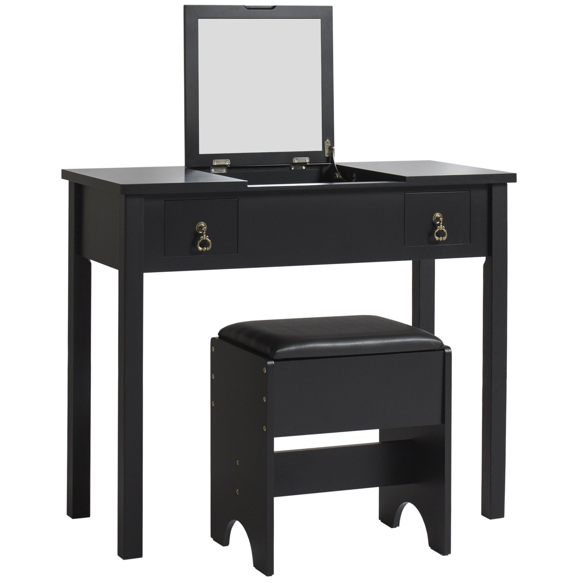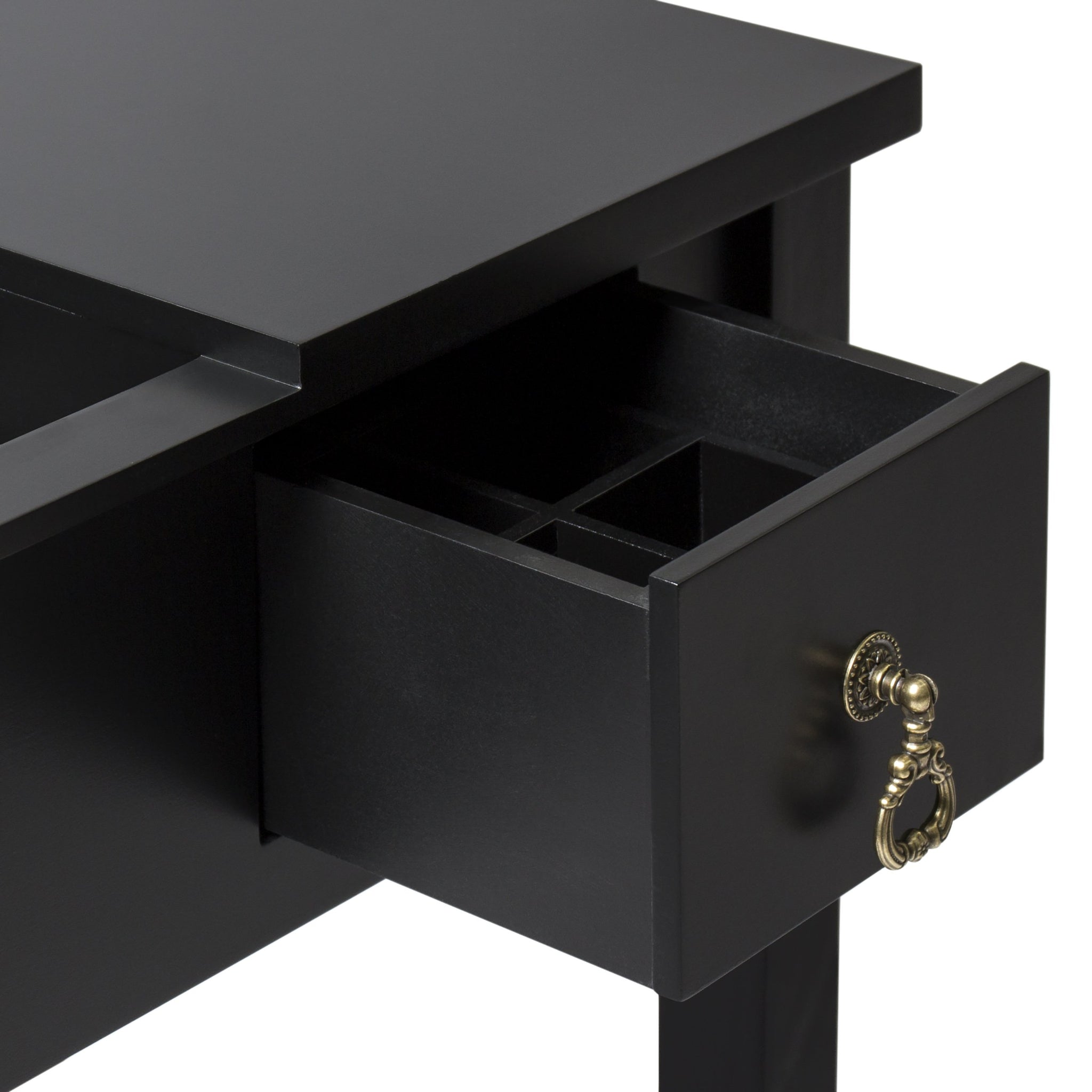 Vanity Dressing Table Set w/ Mirror, Stool, Storage Boxes - Black