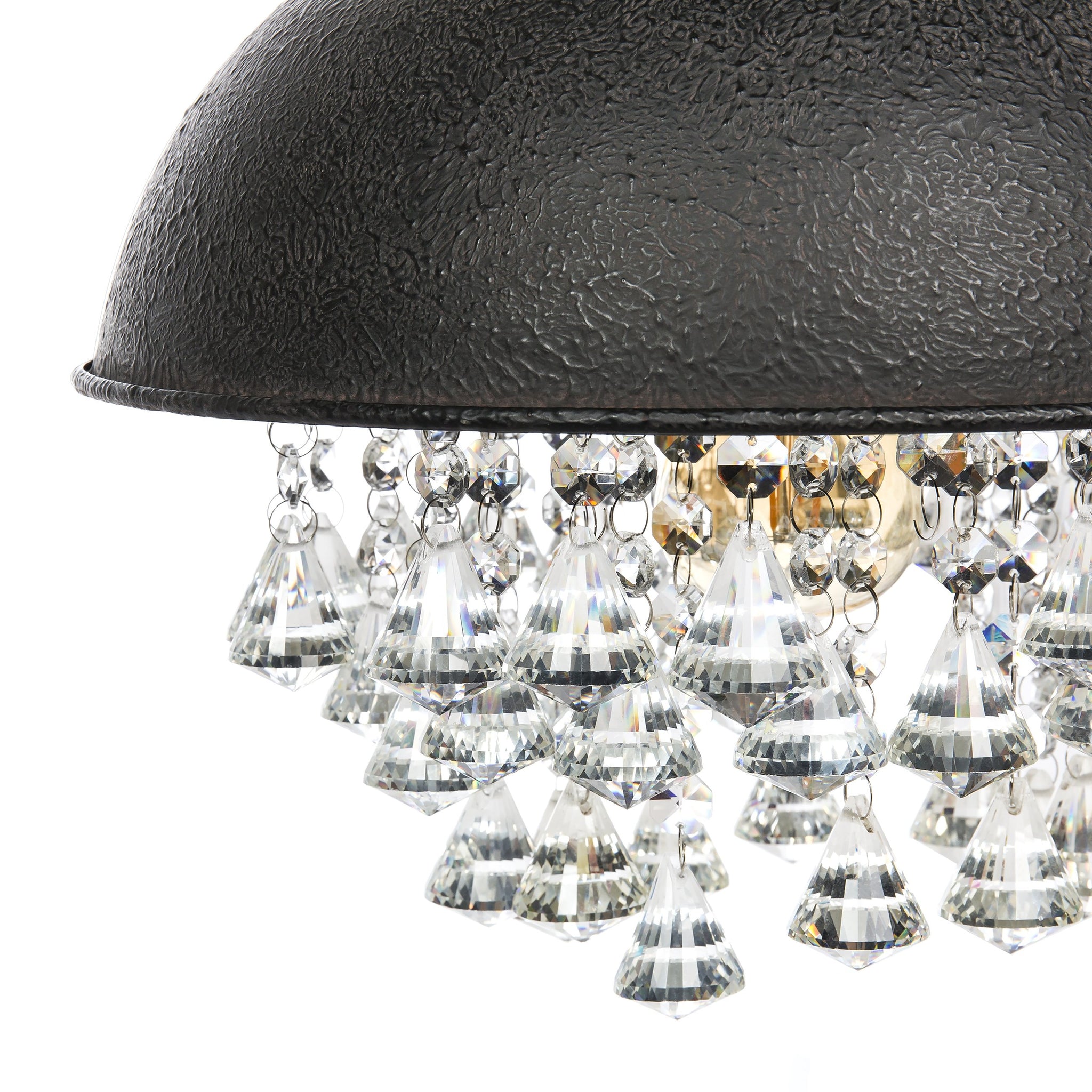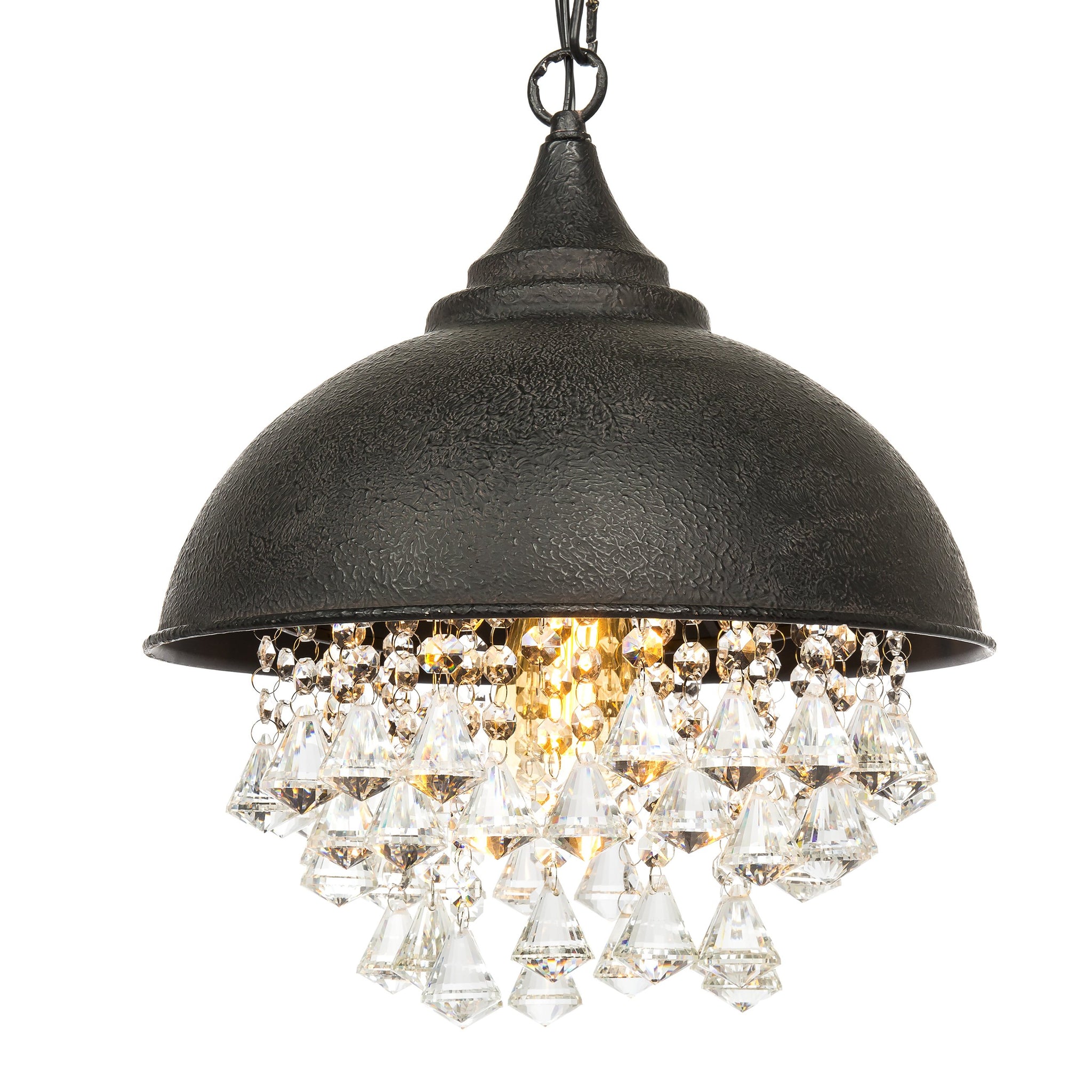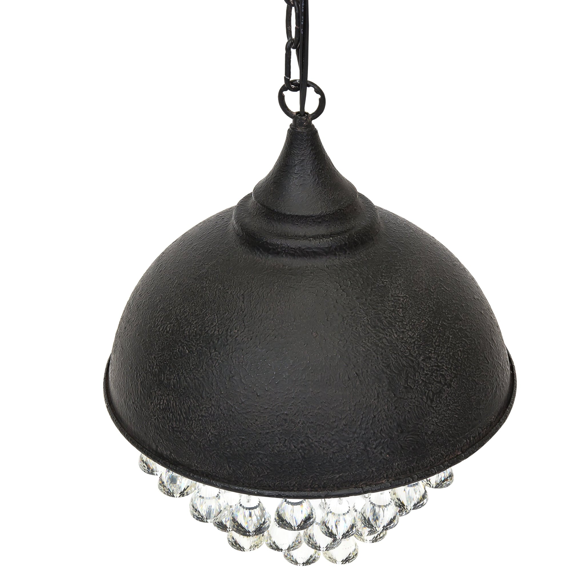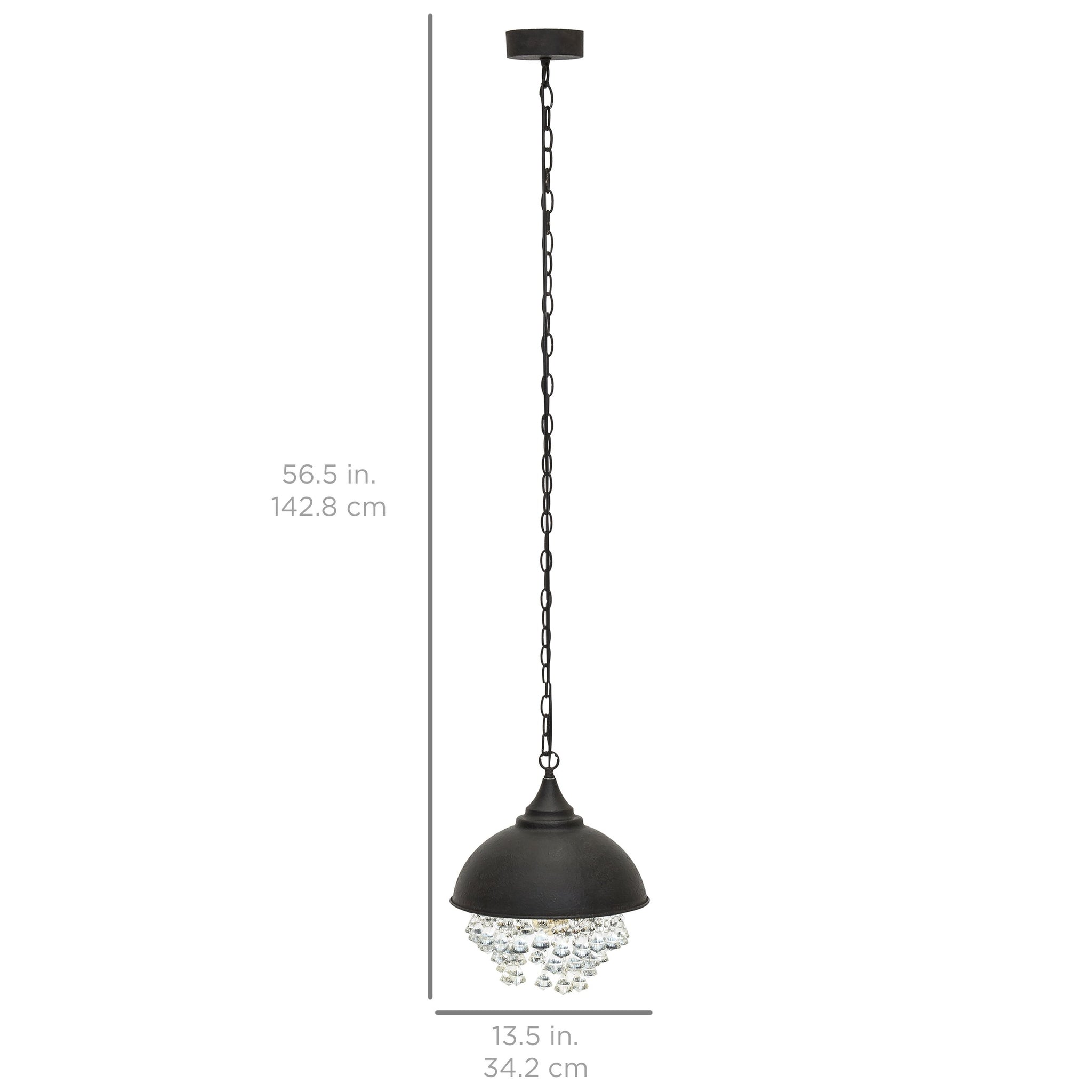 Hanging crystal-like beads descend in the light's interior, providing an added touch of elegance