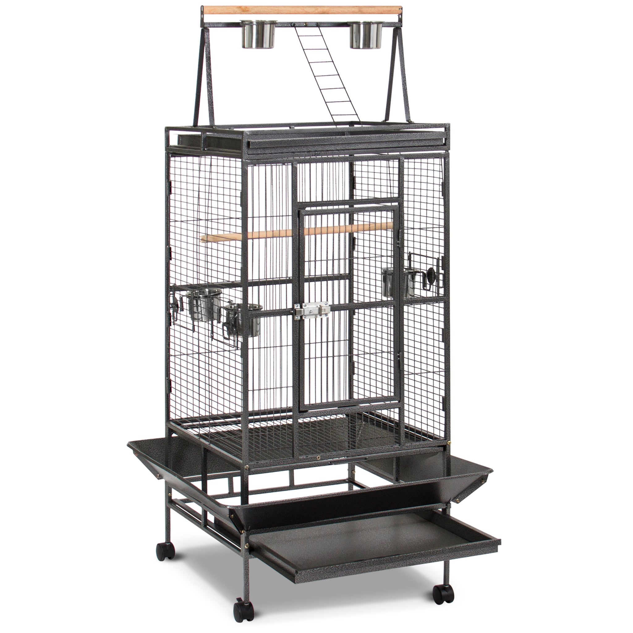 Play and connect with your birds using the top play area which includes a ladder, 2 feeding bowls, and a perch
