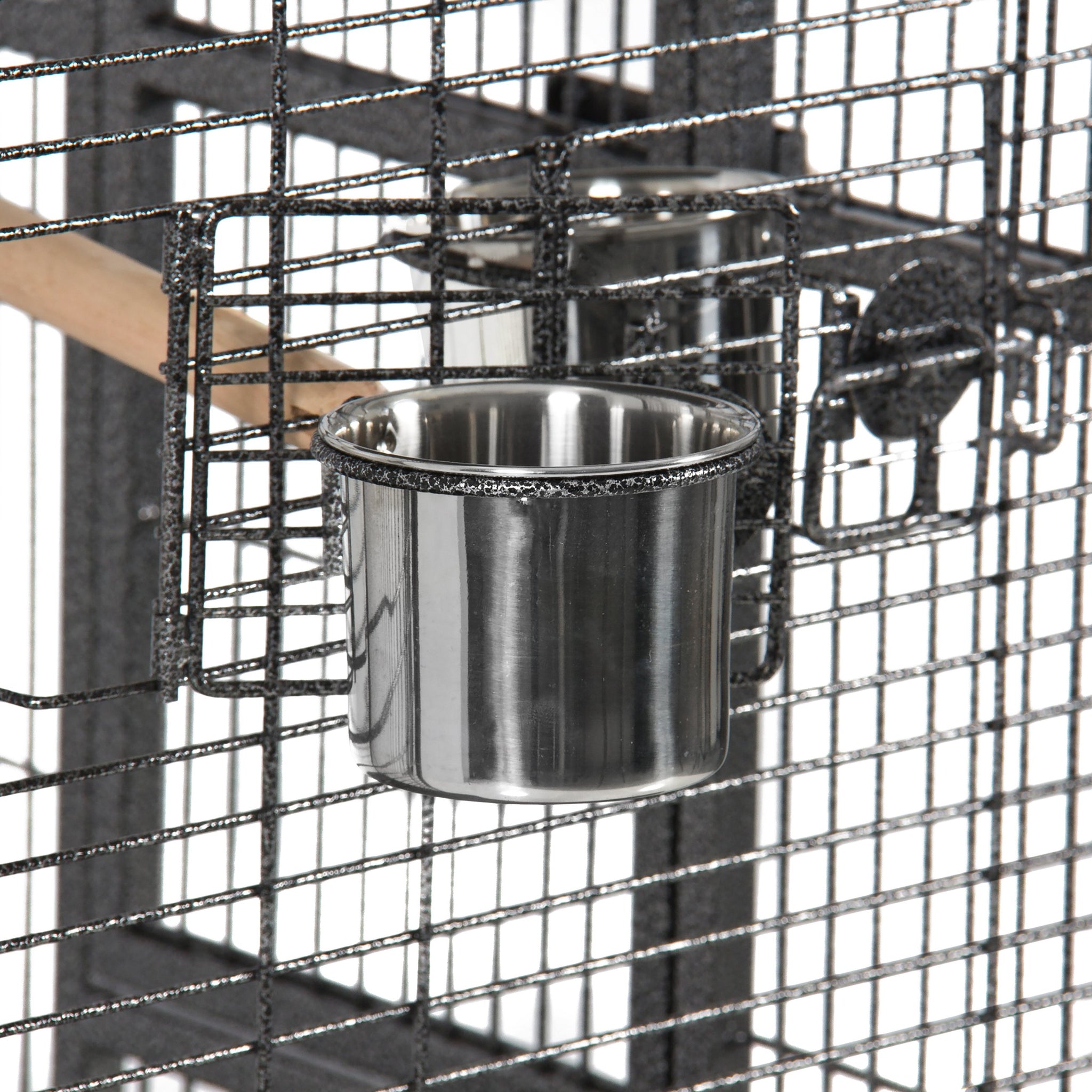 Rolling wheels provide a portable design and cleaning is made easy with a metal slide-out tray so your birds have a hygienic home