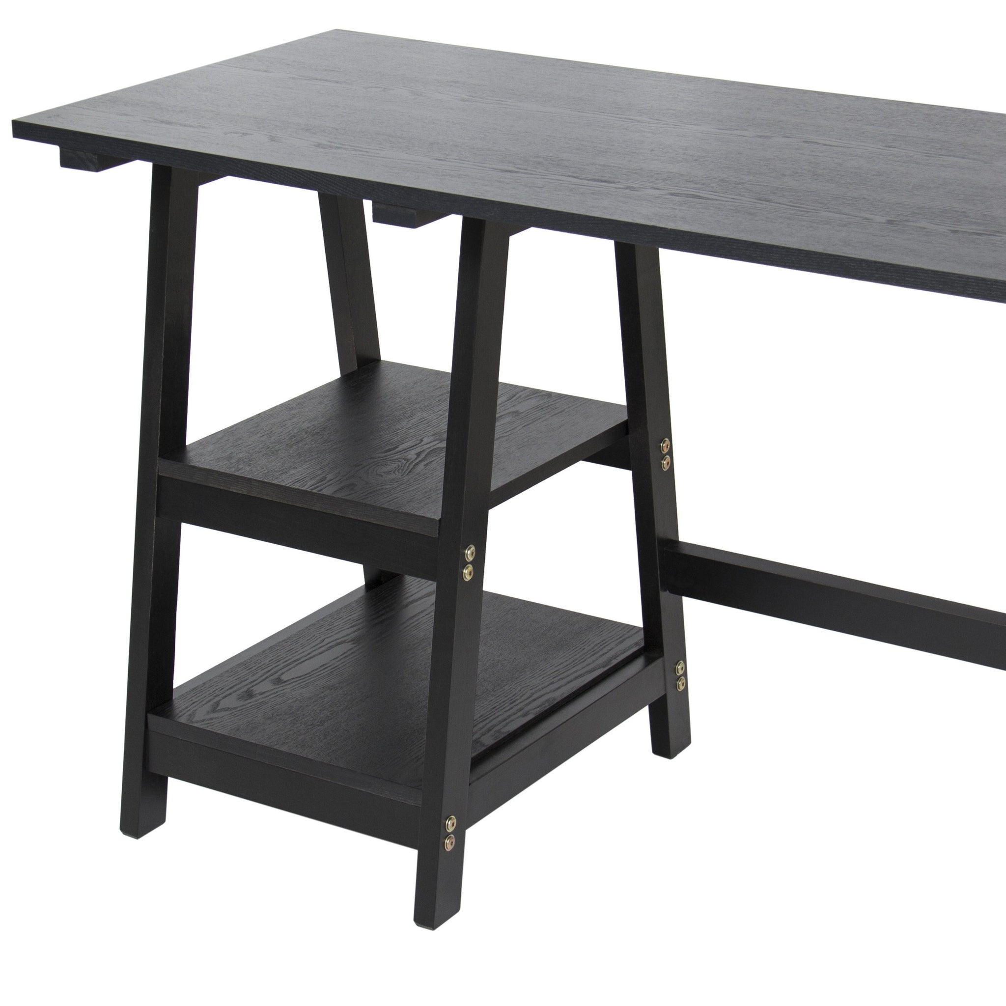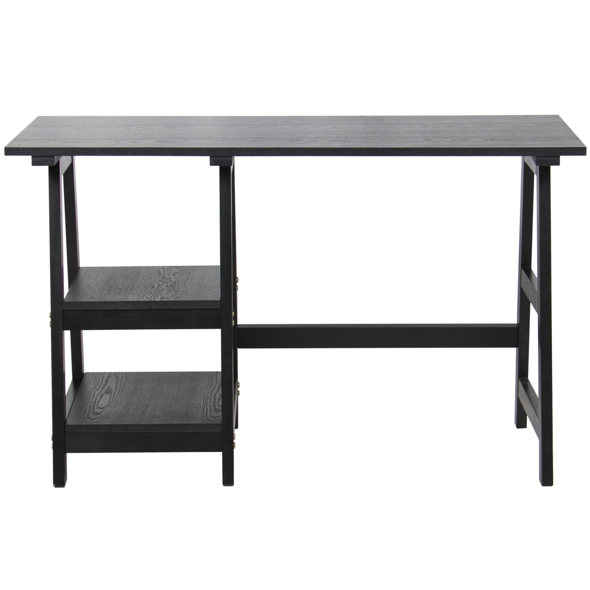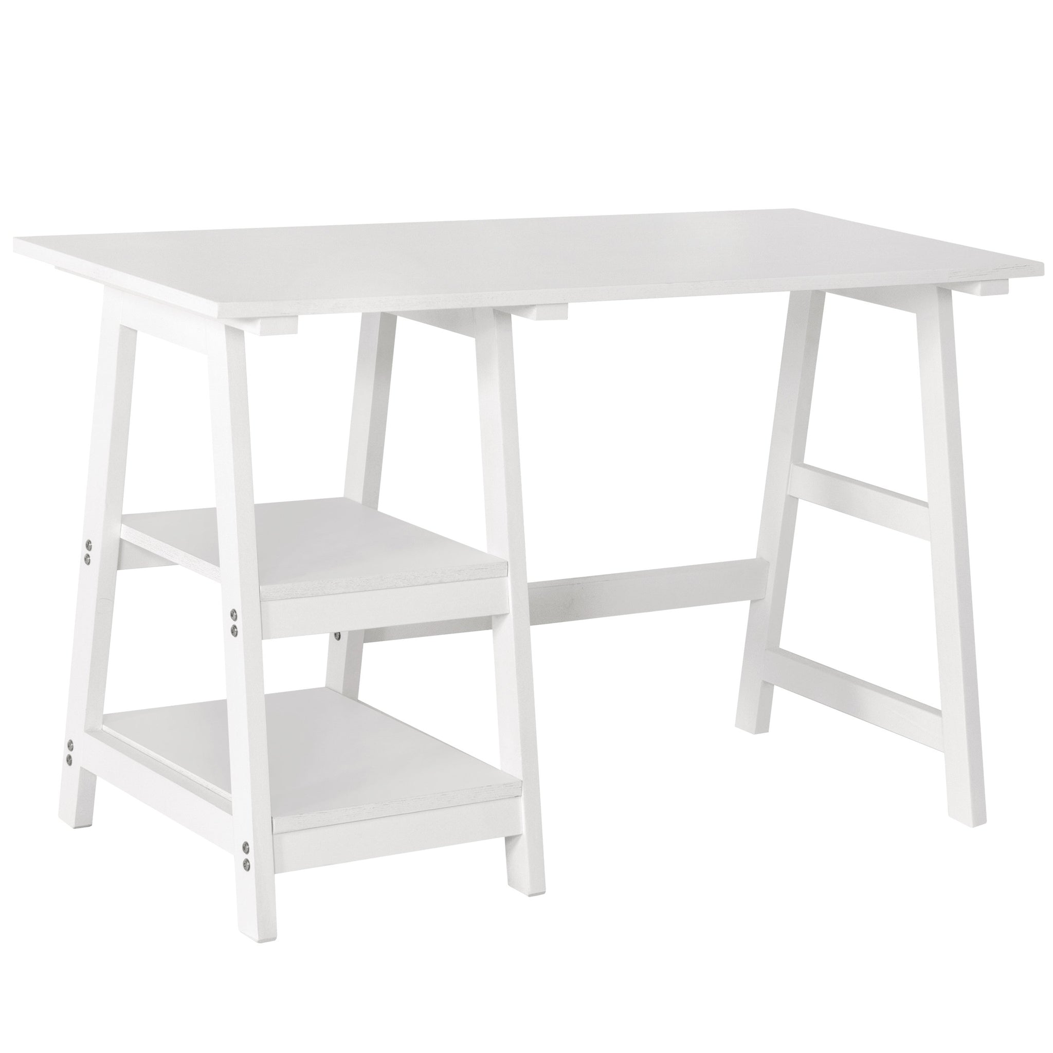 A stylish and modern Trestle design features a flat table top and 2 shelves for a look that matches with any decor